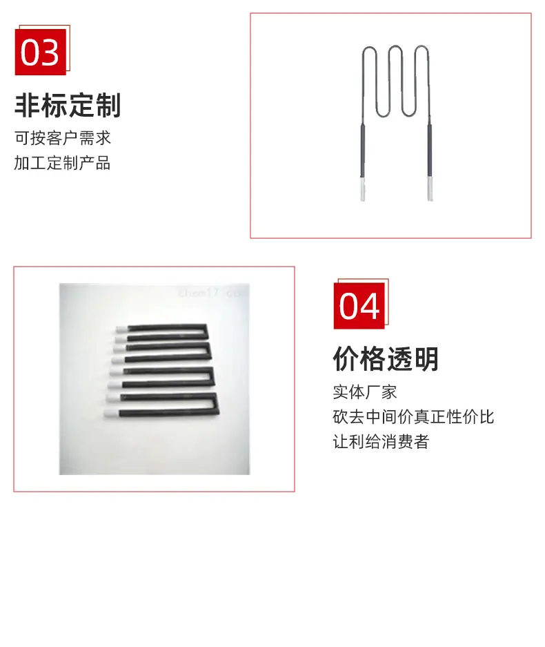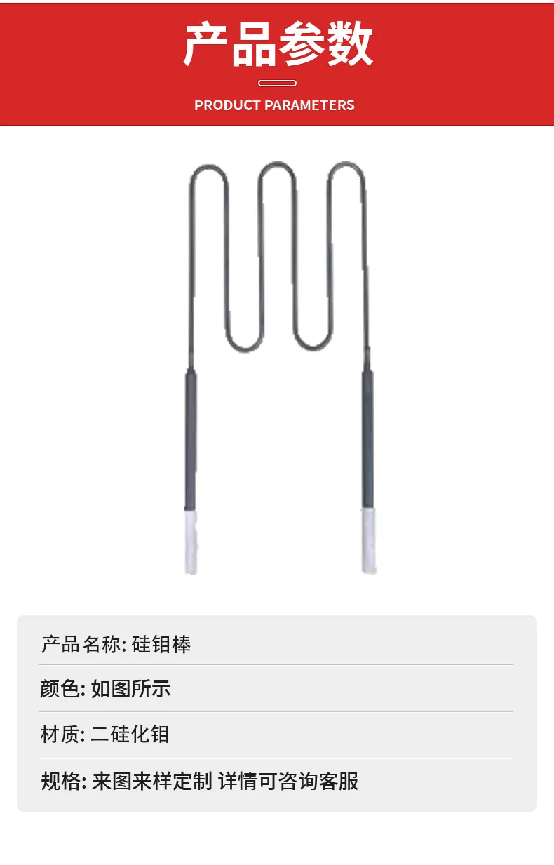 Suministro de varillas de molibdeno siliciado resistentes al desgaste y a altas temperaturas para hornos industriales, disponibles en varios modelos