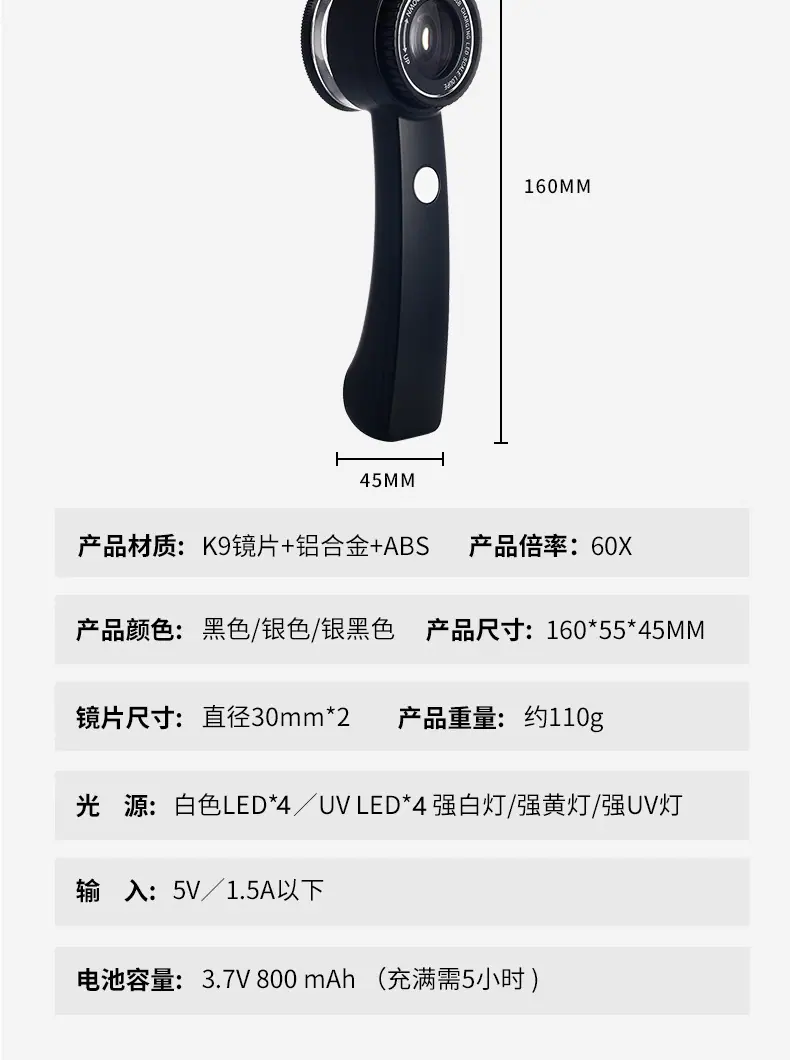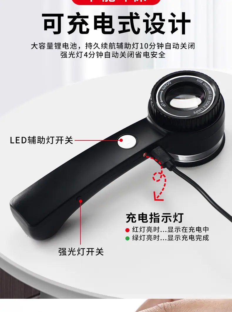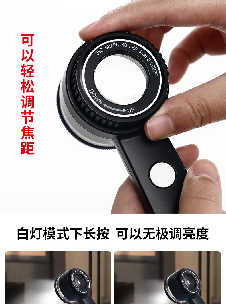 Nuevo Portátil con Escala Opcional Carga USB con Luz LED Identificación Reparación 60X Lupa de Alta Definición y Alta Potencia