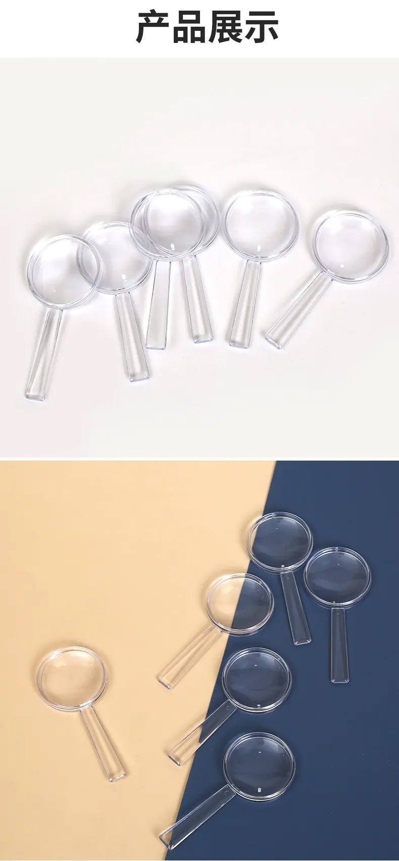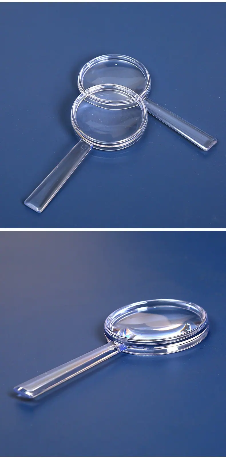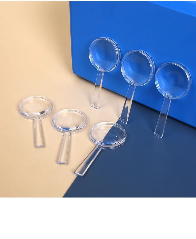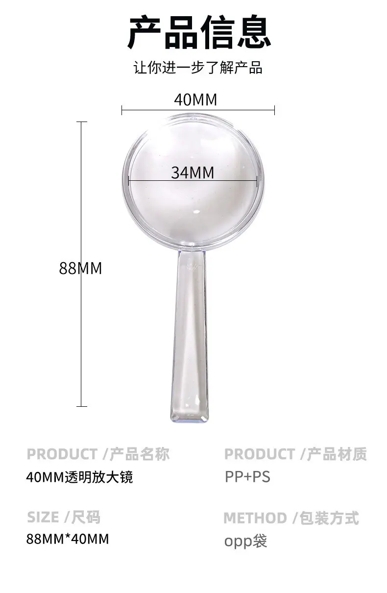 Lupa de Plástico de 40mm con Mango Recto Jardín de Niños Portátil de Una Pieza Totalmente Transparente Lupa de Mano Espejo para Experimentos Infantiles