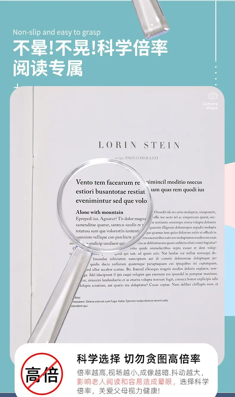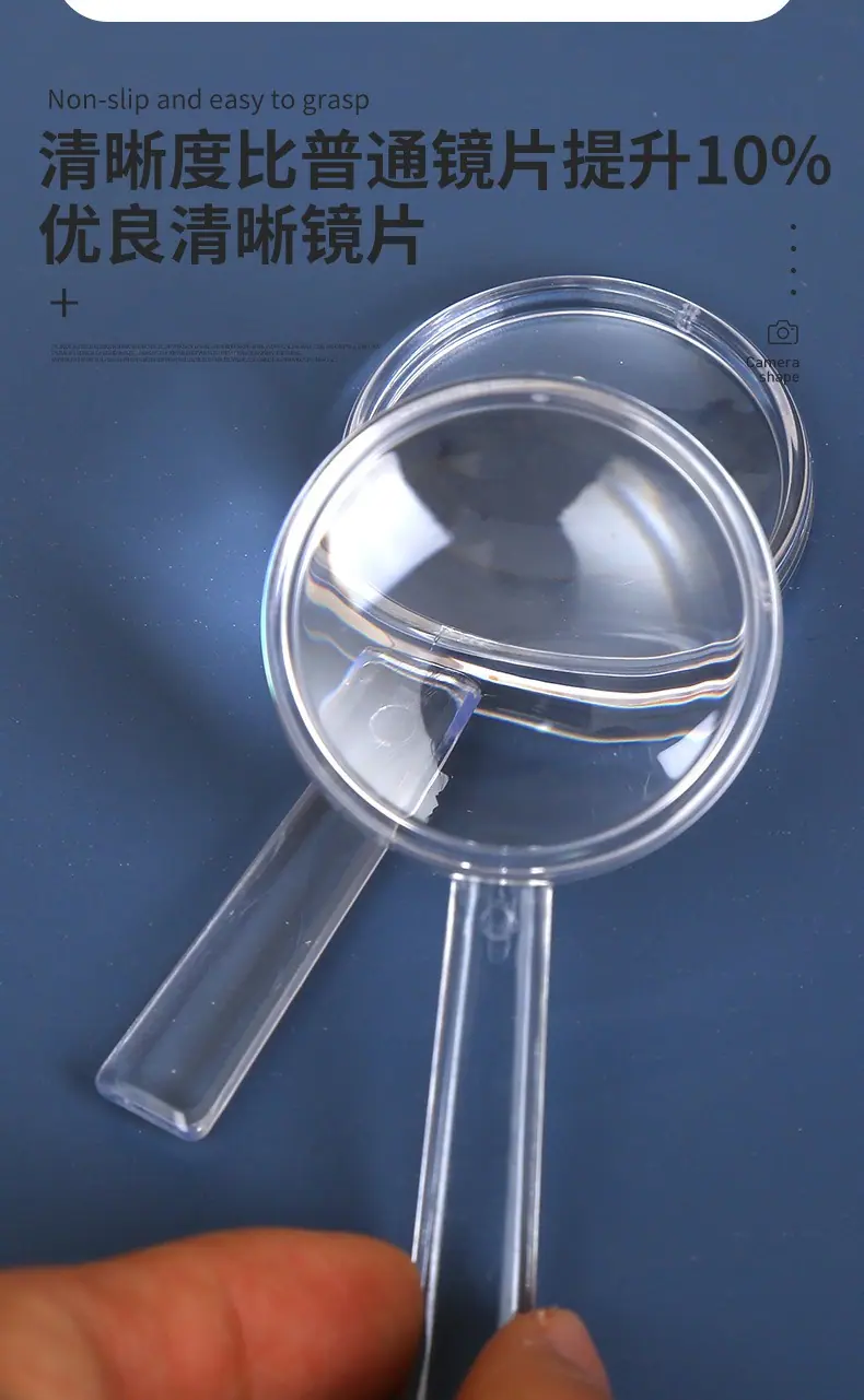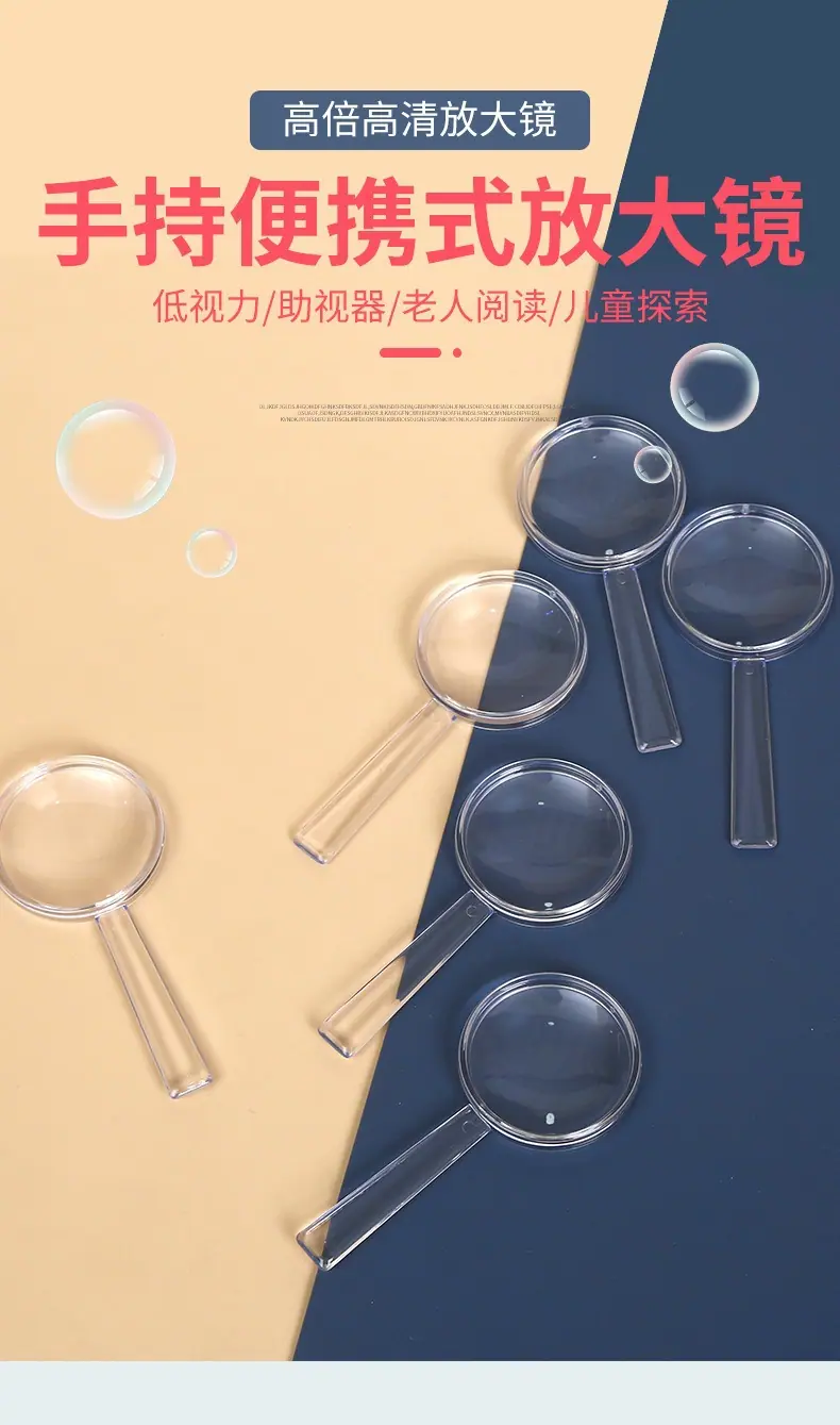 Lupa de Plástico de 40mm con Mango Recto Jardín de Niños Portátil de Una Pieza Totalmente Transparente Lupa de Mano Espejo para Experimentos Infantiles