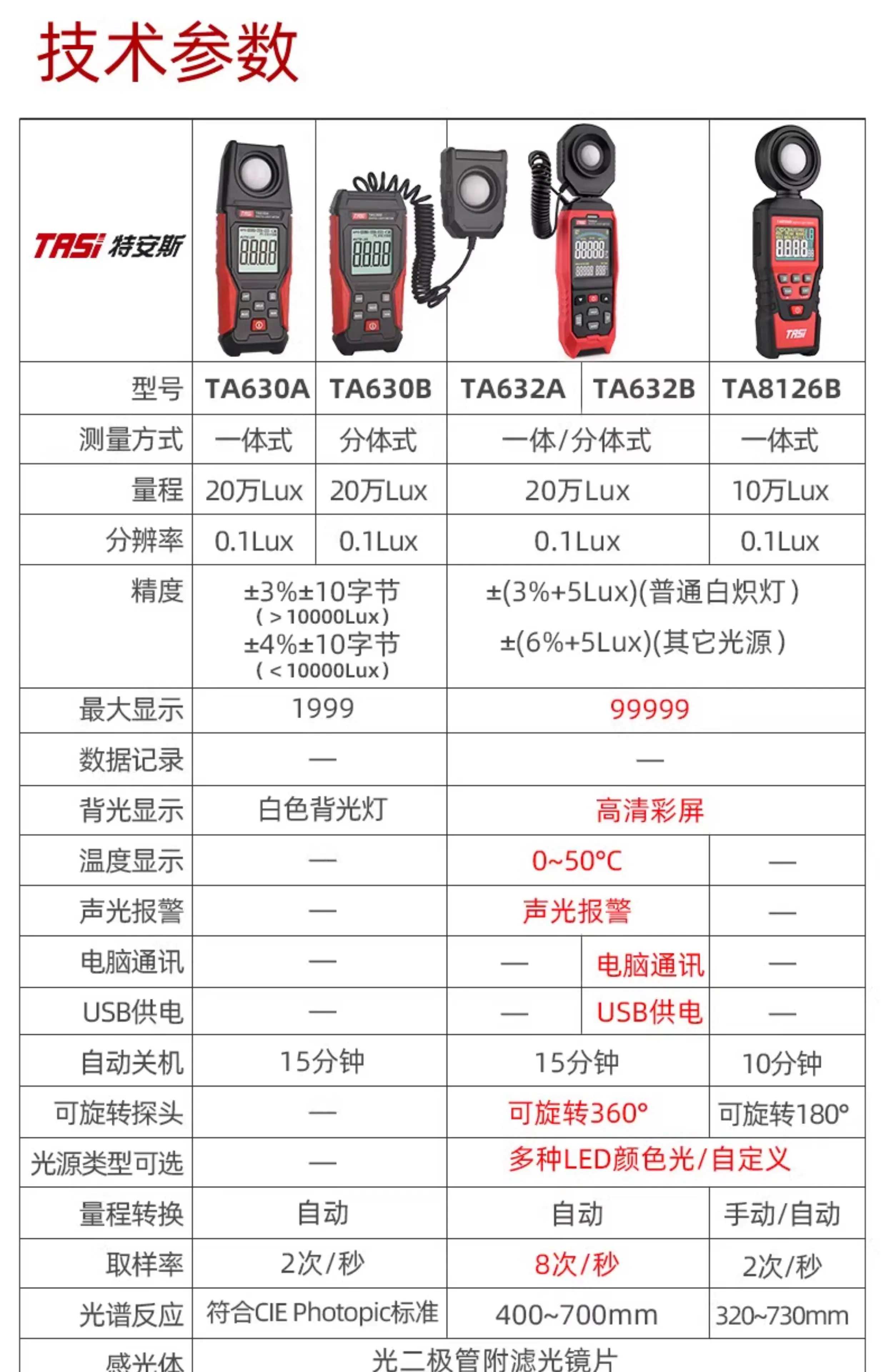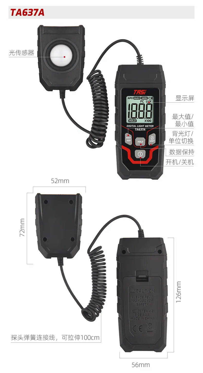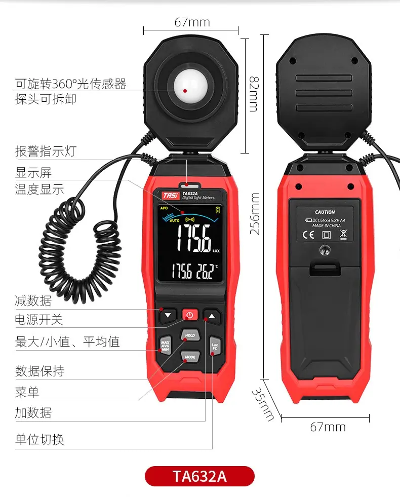 All-in-one TA630A【Upgraded Version】(200,000 LUX, with Backlit Digital Display)