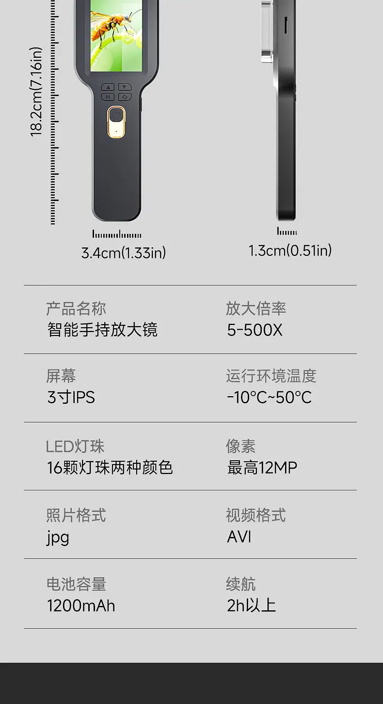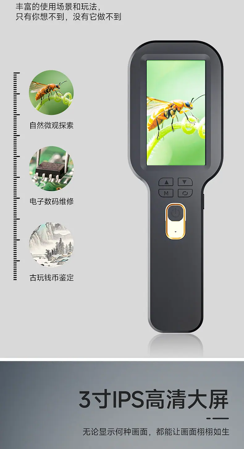 Lupa de Joyería Antigua Luz Púrpura LED HD Identificación Diamante Jade Porcelana Monedas Lupa Electrónica de Mano
