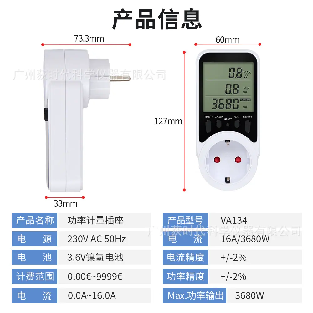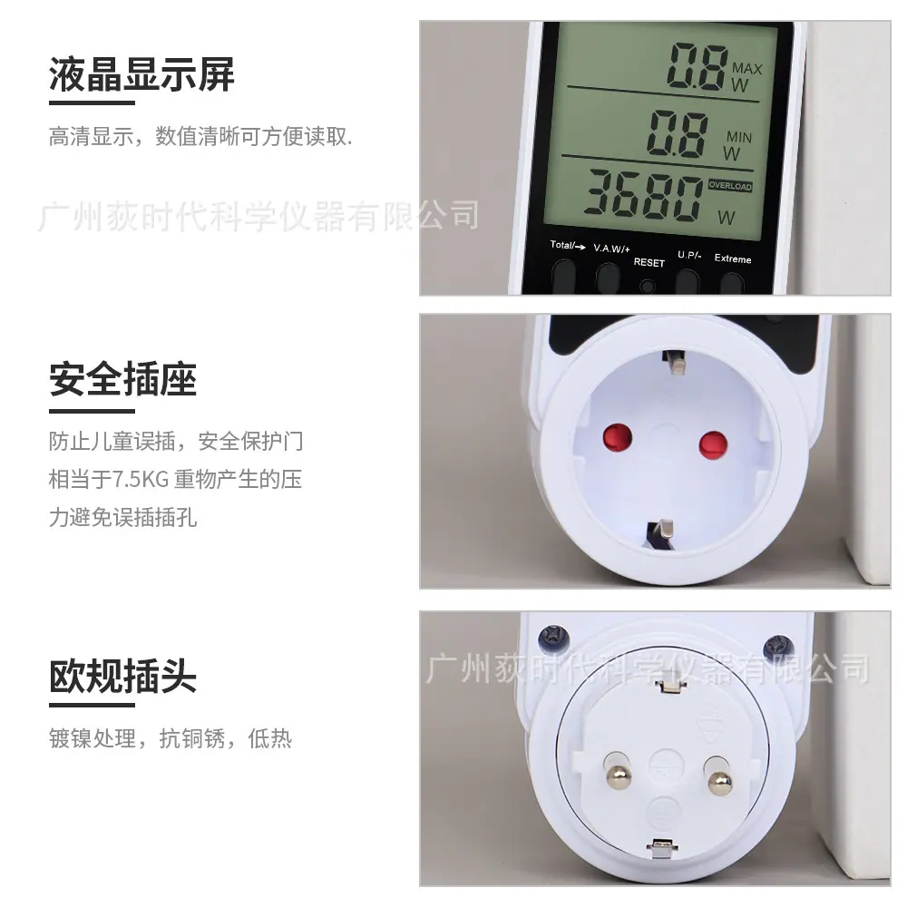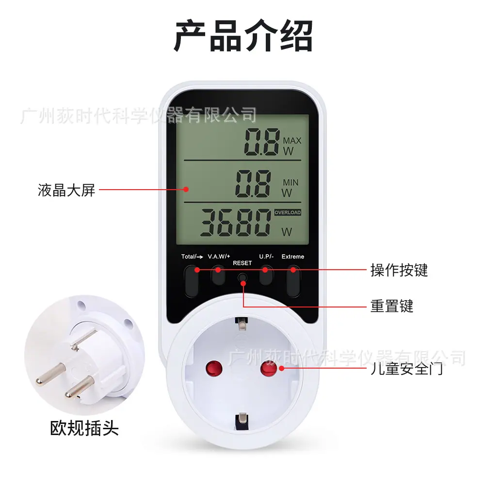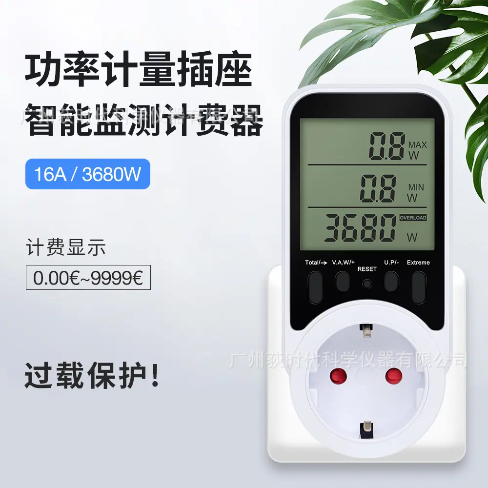 Enchufe de Medidor de Alta Potencia 16A/3680W Medidor de Facturación Inteligente Modelo Transfronterizo Controlador de Corriente Voltaje Temporizador