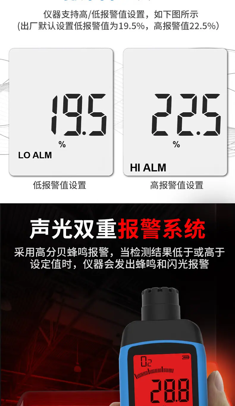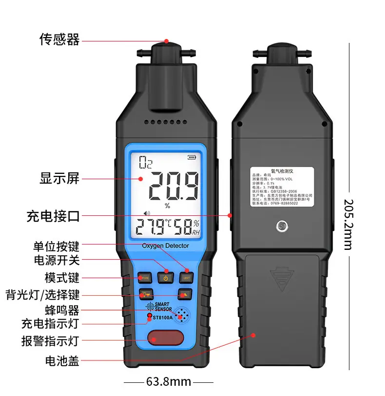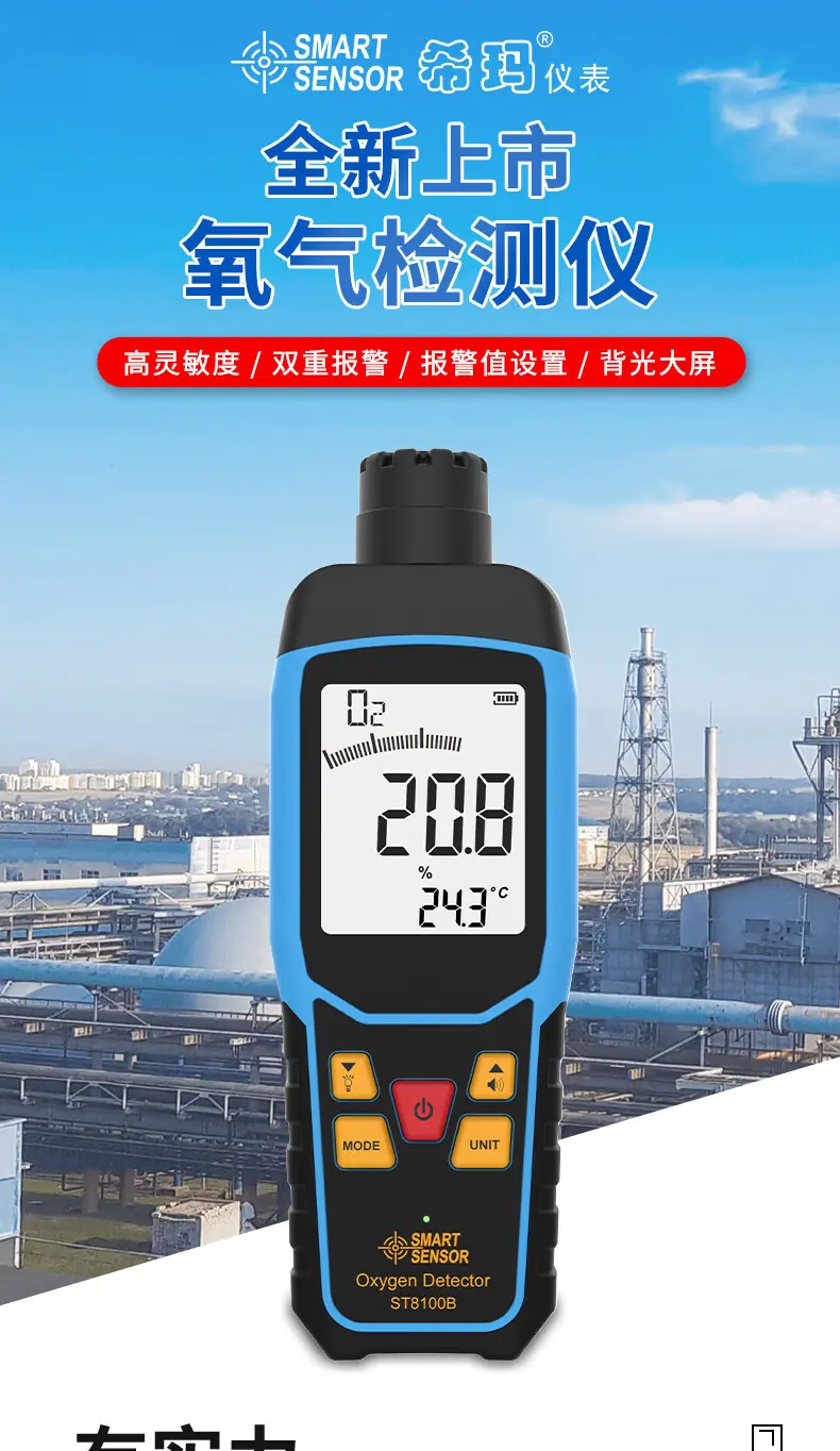 Detector de Oxígeno Hima ST8100B Portátil de Alta Precisión Medidor de Oxígeno Alarma de Concentración de Contenido de Oxígeno en el Aire