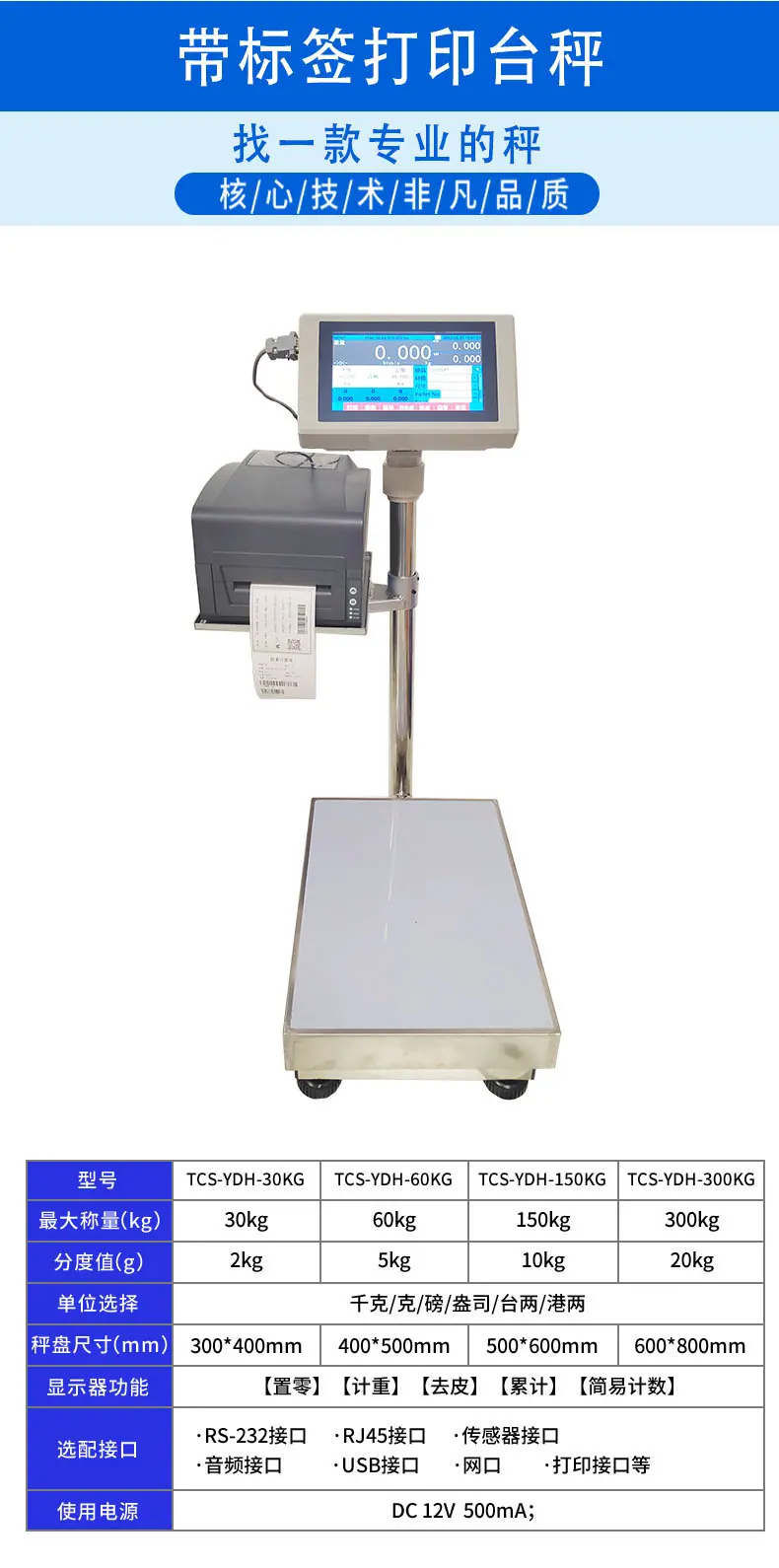 Báscula de Plataforma 30kg Tcs Contenido de Impresión Personalizada Sistema Almacenamiento de Datos Báscula Electrónica Táctil Inteligente Báscula Electrónica de Plataforma
