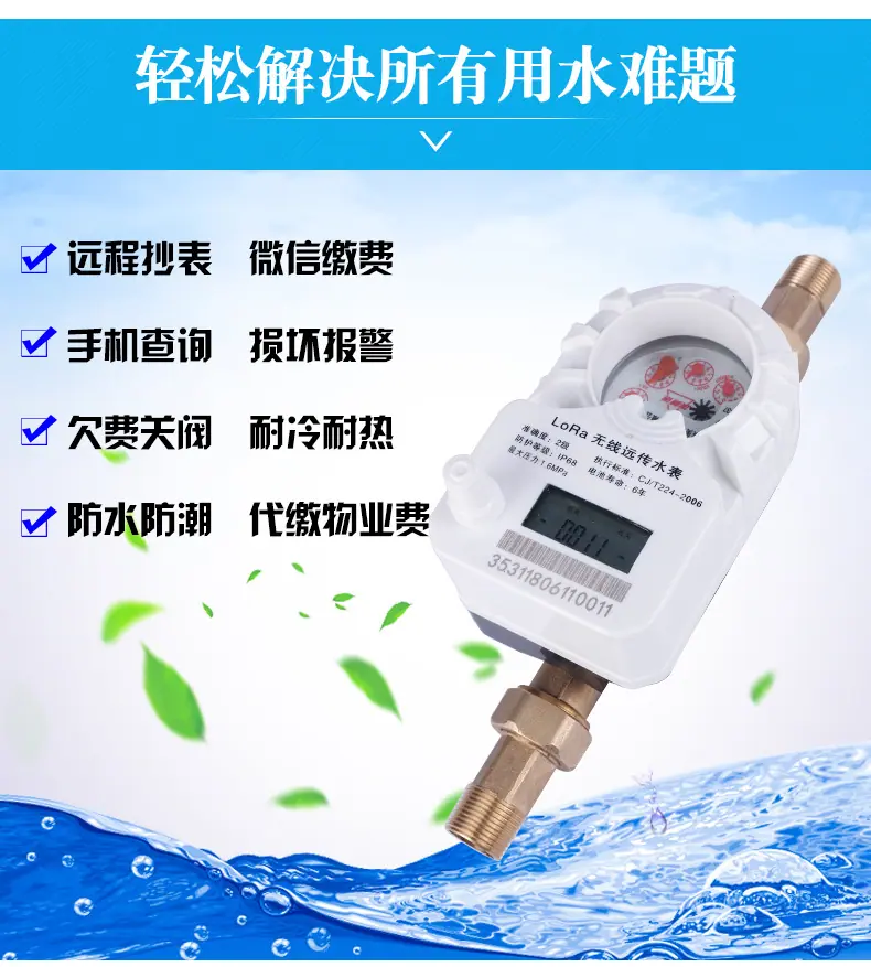 El medidor de agua con control de válvula de transmisión remota inalámbrica (IoT) tiene un sistema de gestión integral que integra funciones de recopilación de datos, gestión de equipos, gestión de tarifas, gestión del sistema y almacenamiento de datos. El medidor de agua de transmisión remota inalámbrica está equipado con un dispositivo de transmisión inalámbrica y se gestiona de forma remota.El dispositivo controla automáticamente la válvula de compuerta del medidor de agua y el consumo de agua, con recordatorio SMS al teléfono móvil, pago por teléfono móvil, consulta de saldo por teléfono móvil, monitoreo de flujo de agua, alarma automática por desmontaje y daño no autorizados, cierre automático de válvula por mora, puede pagar cuotas de propiedad, tarifas de estacionamiento, etc., este medidor no requiere tendido de líneas ni mantenimiento de líneas, y es fácil de instalar.