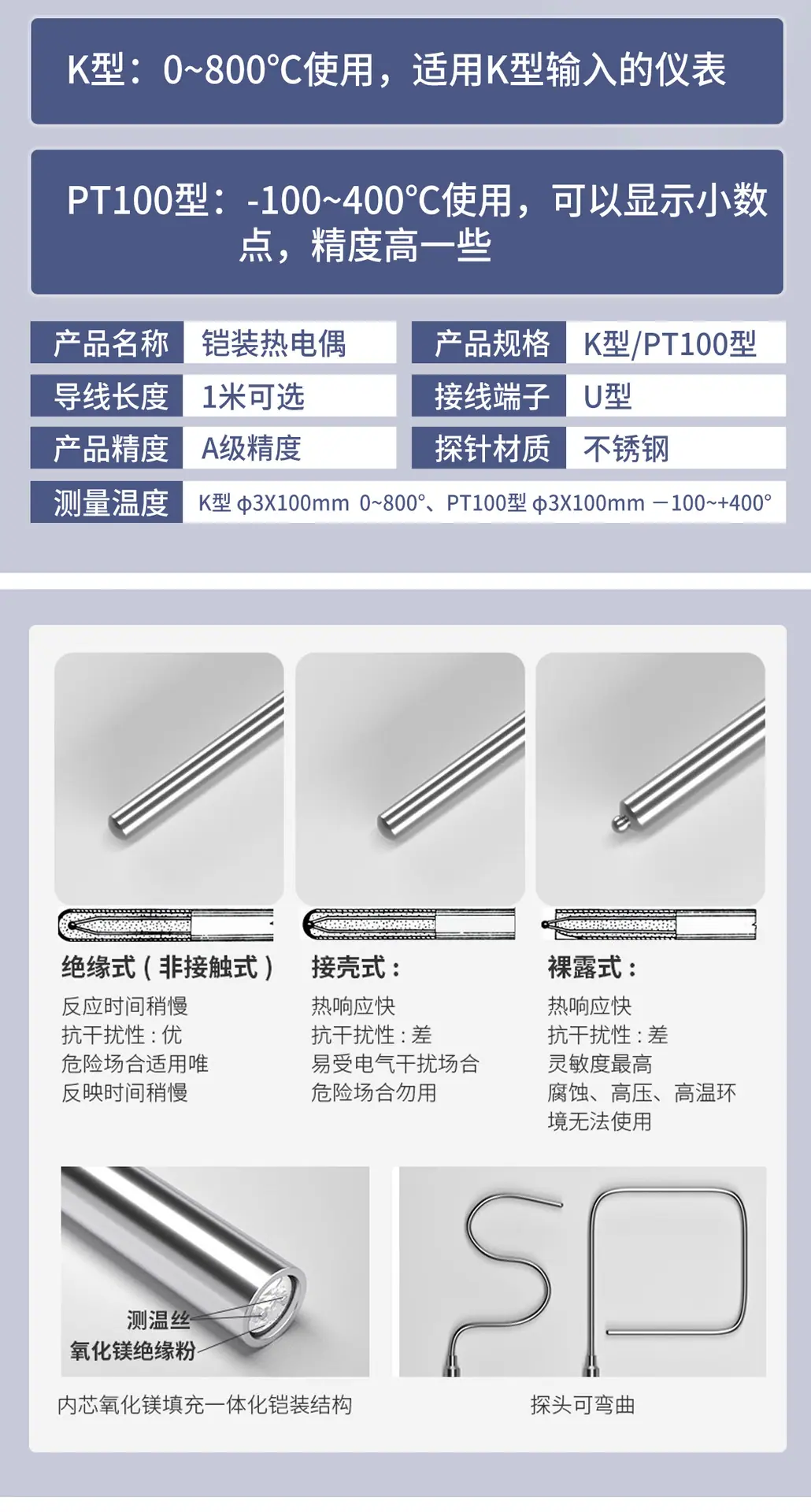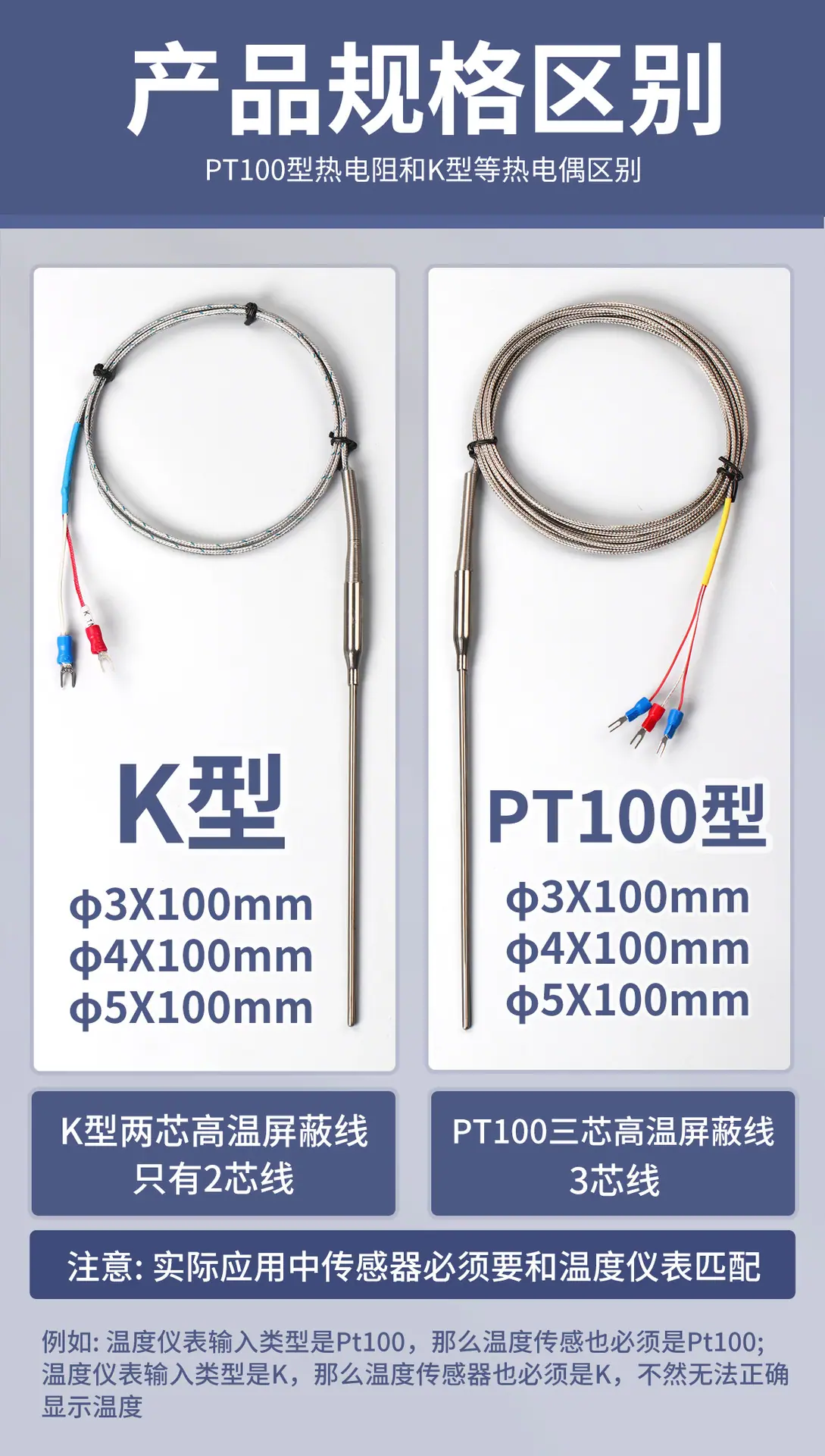 K type φ3X100mm 1 meter, K type φ4X100mm 1 meter, K type φ5X100mm 1 meter, PT100 type φ3X100mm 1 meter, PT100 ...