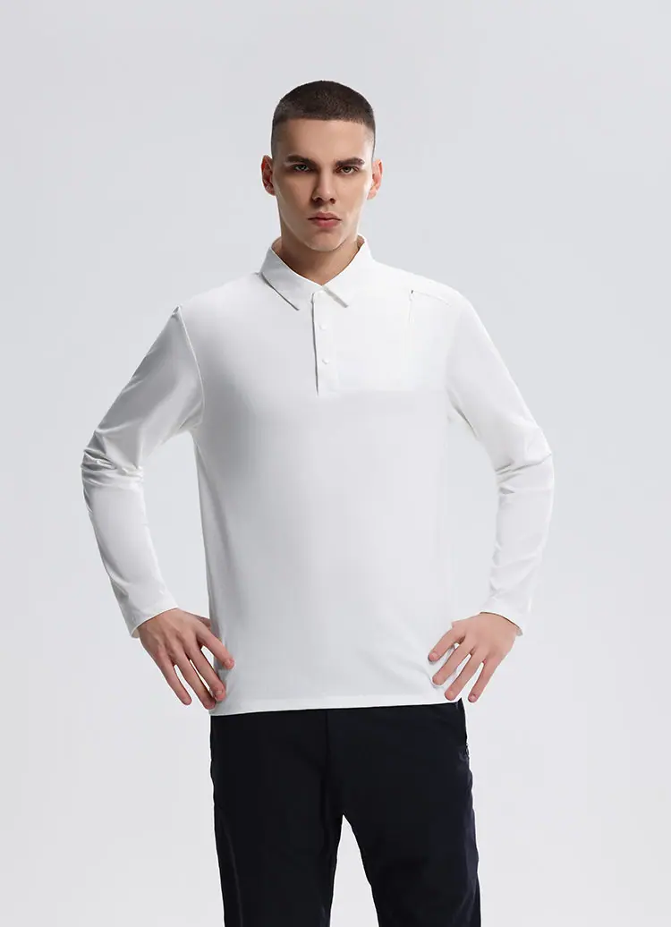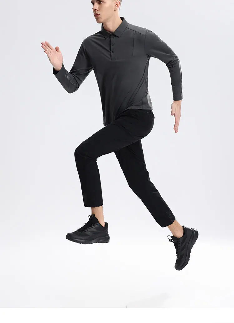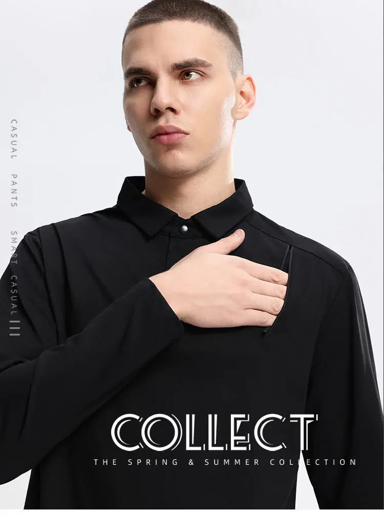 Polo deportivo manga larga top hombres primavera y otoño casual básico moda para el trabajo al aire libre fitness secado rápido camiseta