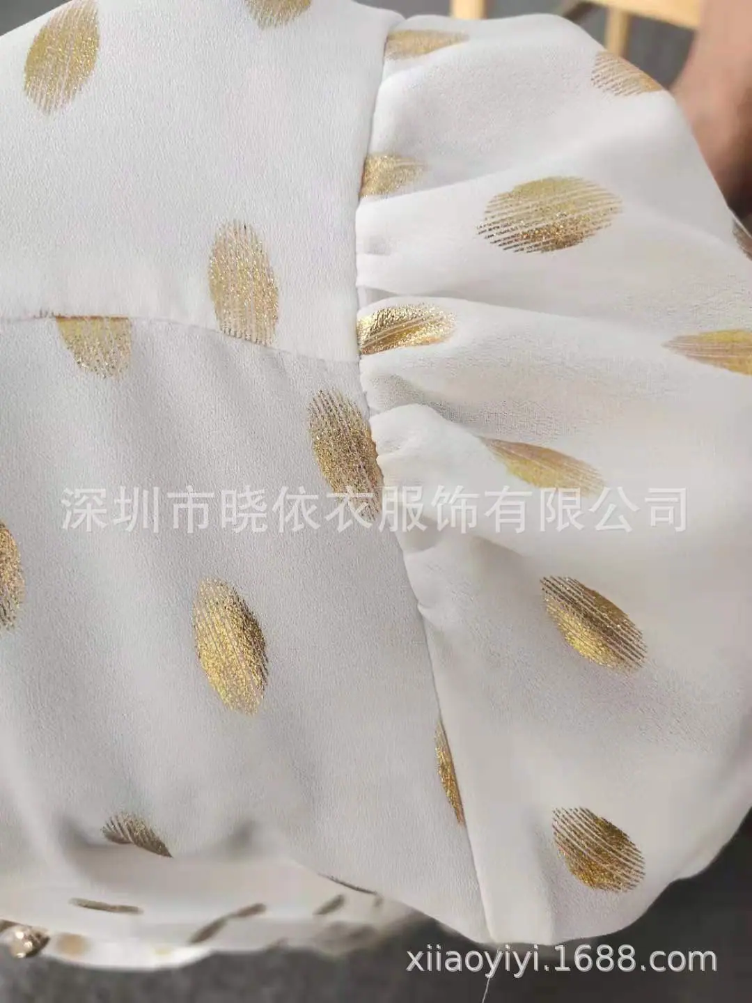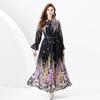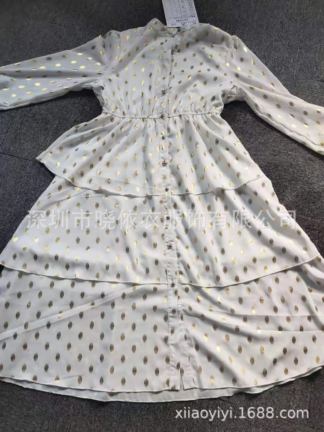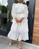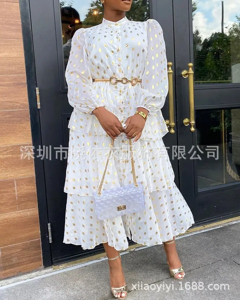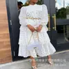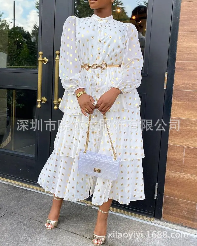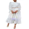 Vestido Elegante de Viaje Europeo y Americano Transfronterizo 2021 de Chifón Largo con Volantes Blanco Estampado de Cintura Suelta