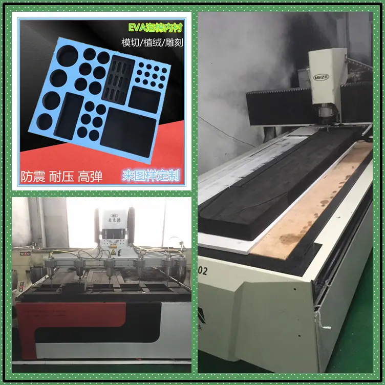 Las principales tecnologías de procesamiento de espuma EVA son: moldeo de espuma EVA, moldeo por inyección de EVA, prensado en frío y prensado en caliente de EVA, troquelado ordinario, grabado CNC, tela compuesta de EVA, flocado de EVA, tela de montaje, laminación, proceso de estampado.