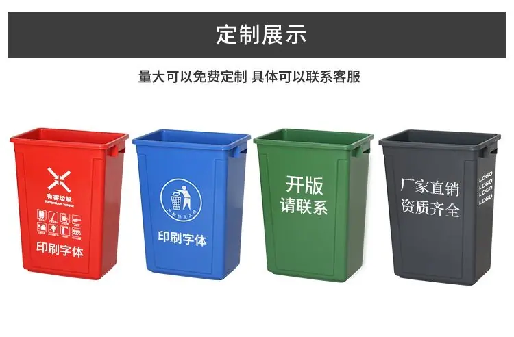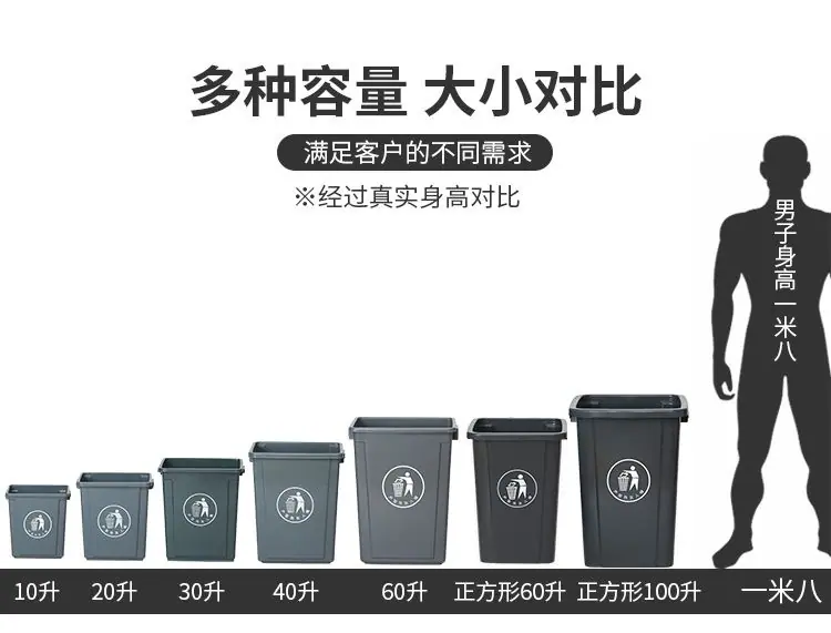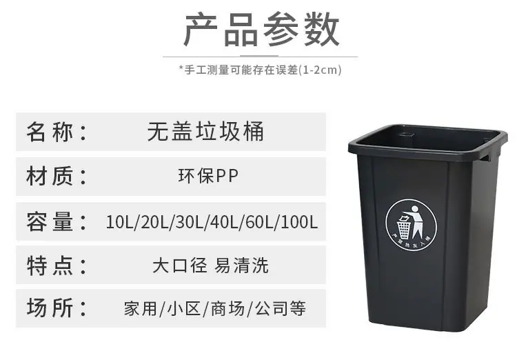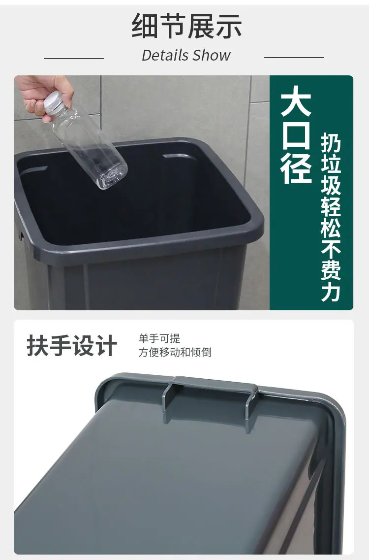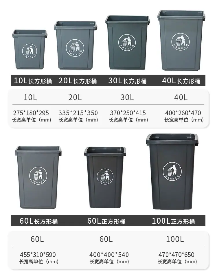 Cesto de Papel Rectangular sin Tapa Cocina Baño Exterior Herramienta de Limpieza Simple Bote de Basura Comercial con Tapa Catering 60L