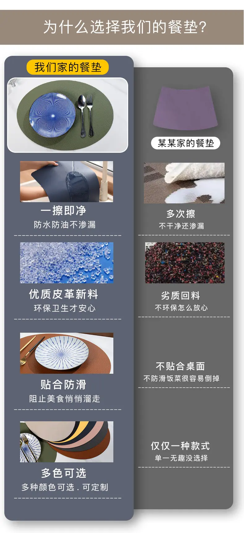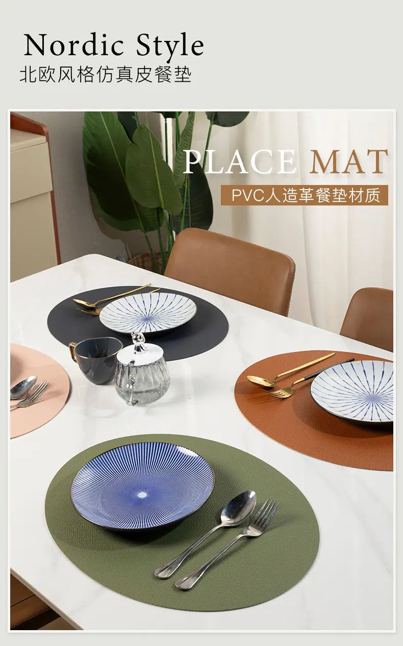 Compra Mantel Individual Simple Colorido Grande Patrón Lichi Cuero Sintético PVC Impermeable y a Prueba de Aceite Mantel de Mesa Aislante Térmico Engrosado Hotel Hogar Occidental al por mayor en Joom.pro