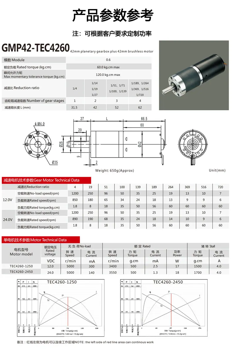El fabricante suministra un motor de reducción planetario sin escobillas de CC de 20 mm, un motor de reducción de 12 V y un micromotor sin escobillas de 24 V.