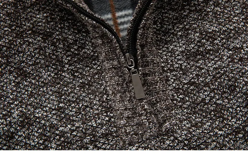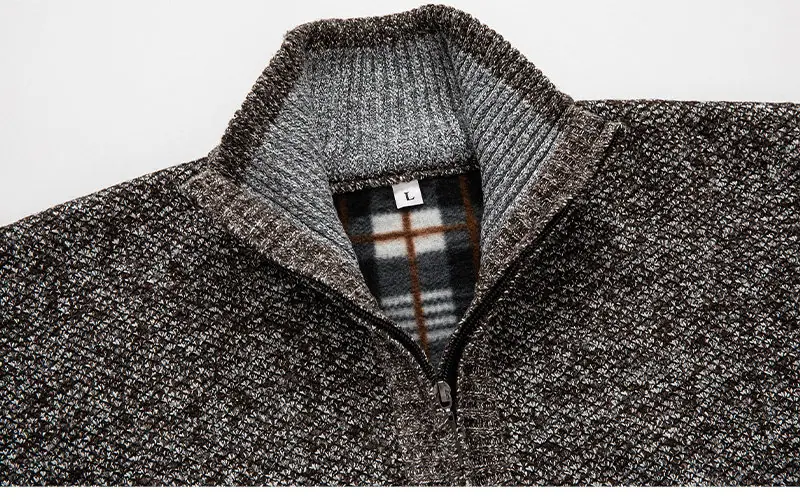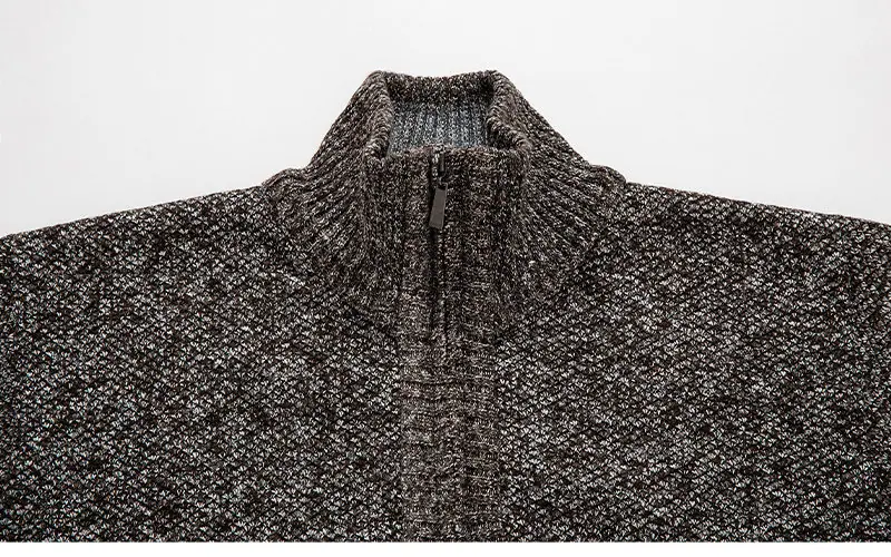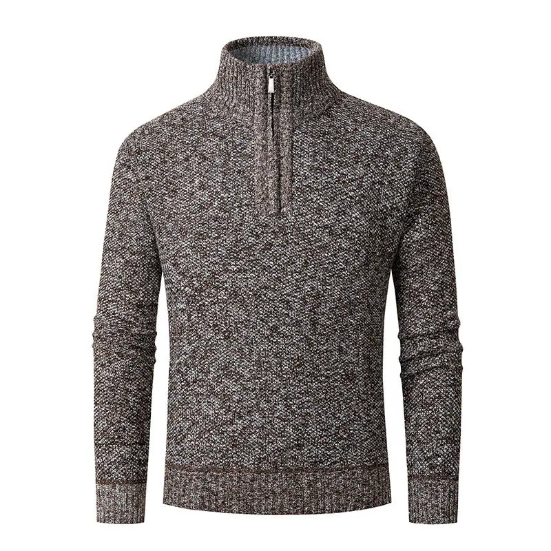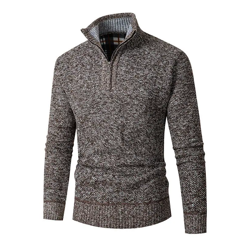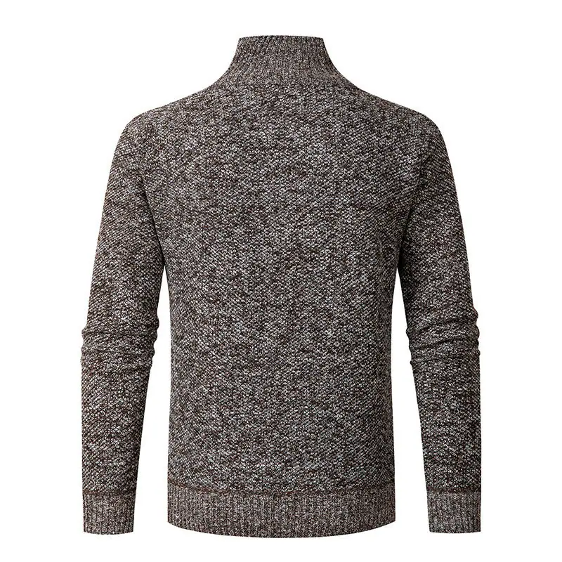 Suéter casual de color sólido transfronterizo con media cremallera, forrado de felpa, grueso, para otoño e invierno, tejido de punto, cárdigan de moda para hombre, ropa de hombre