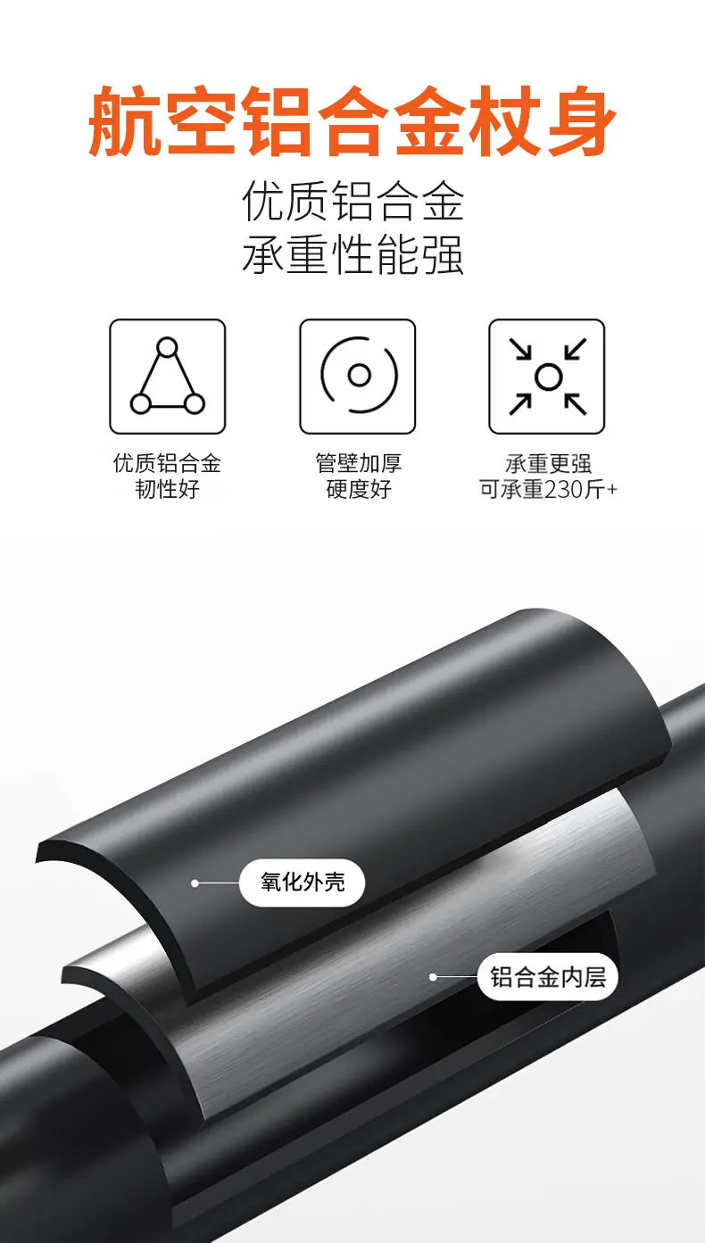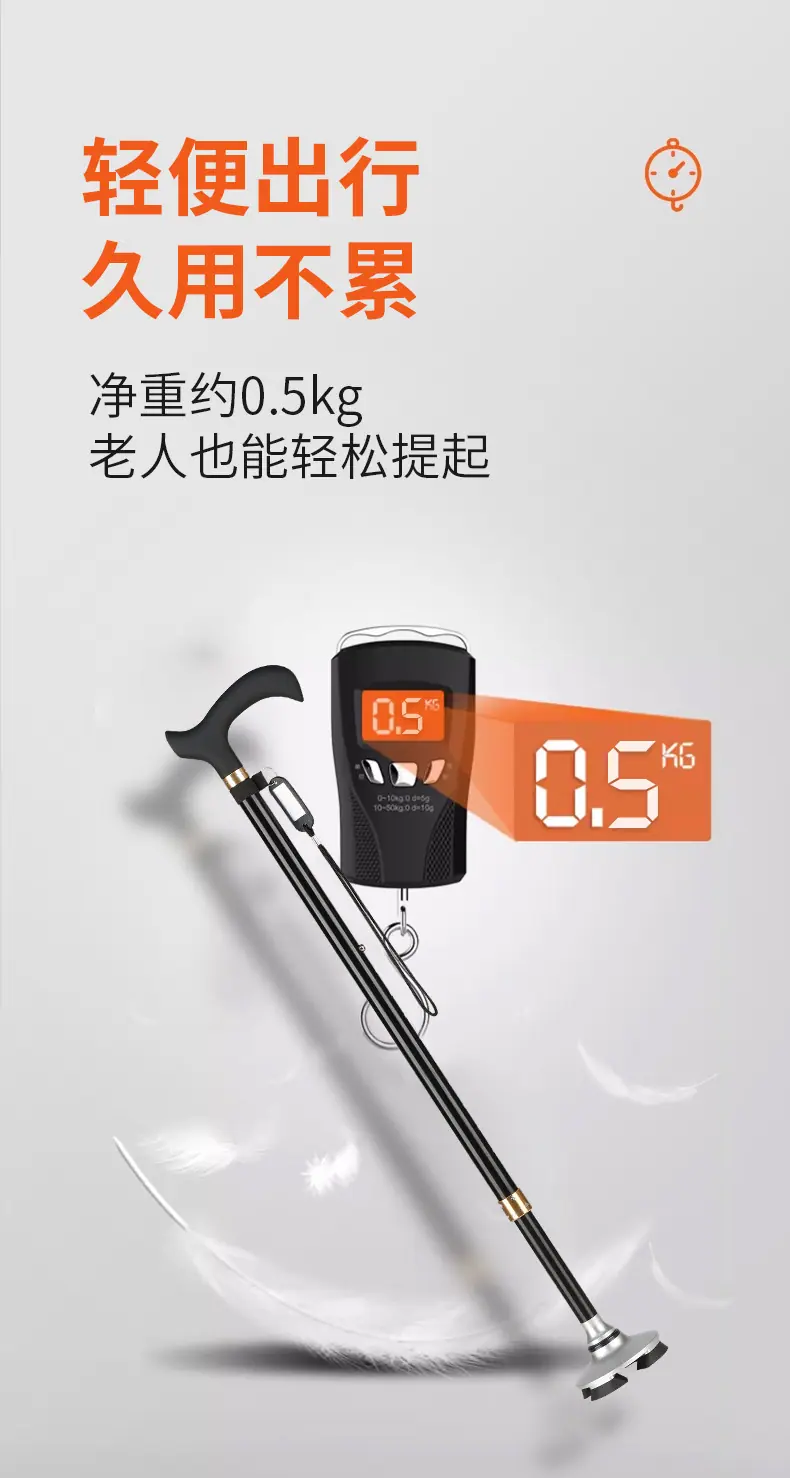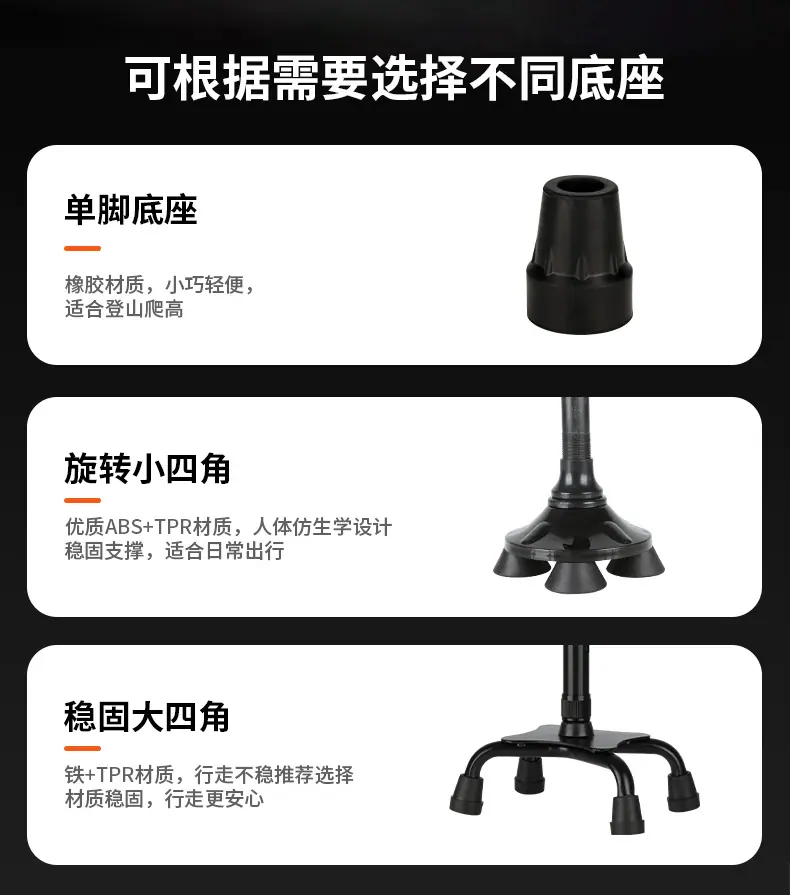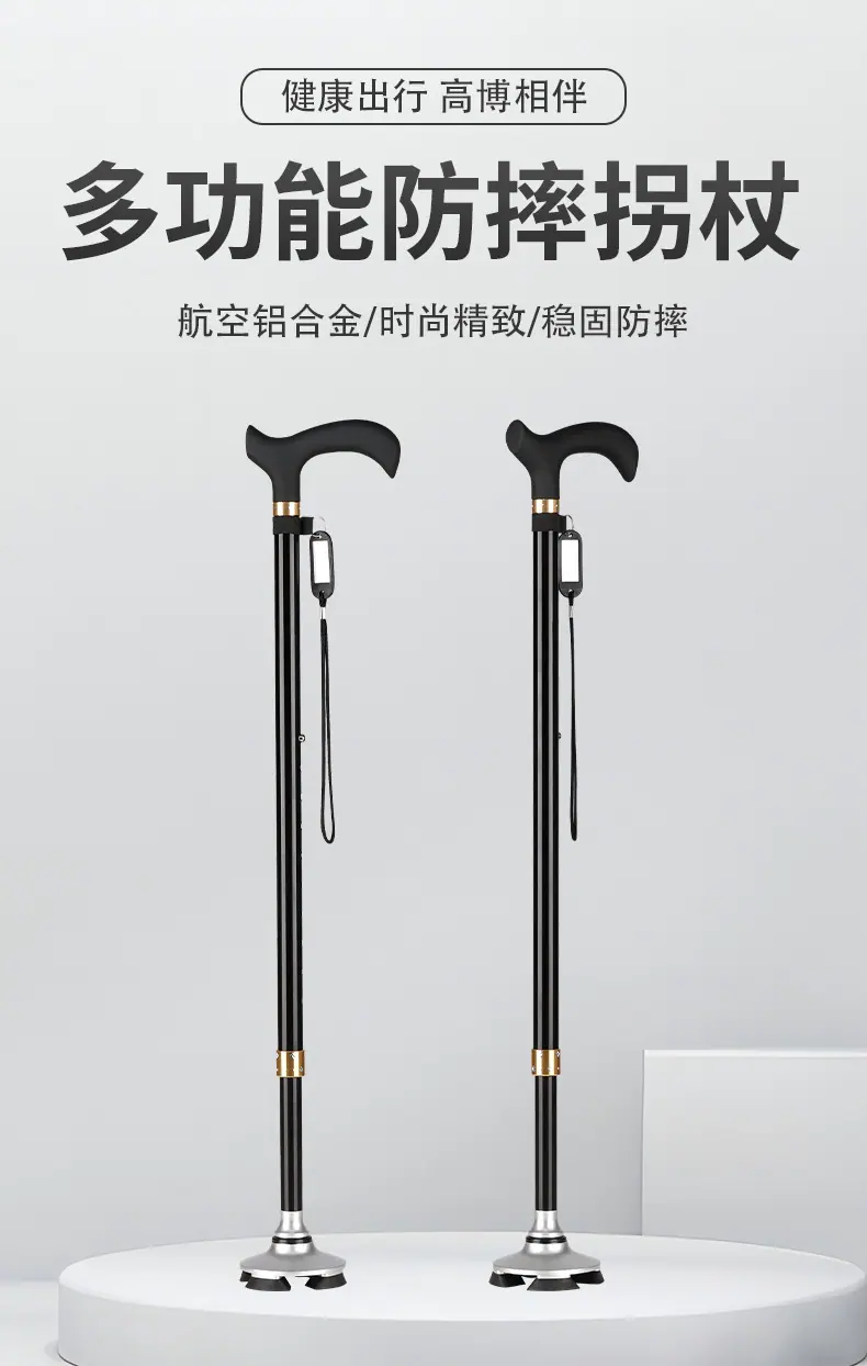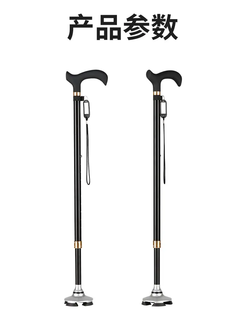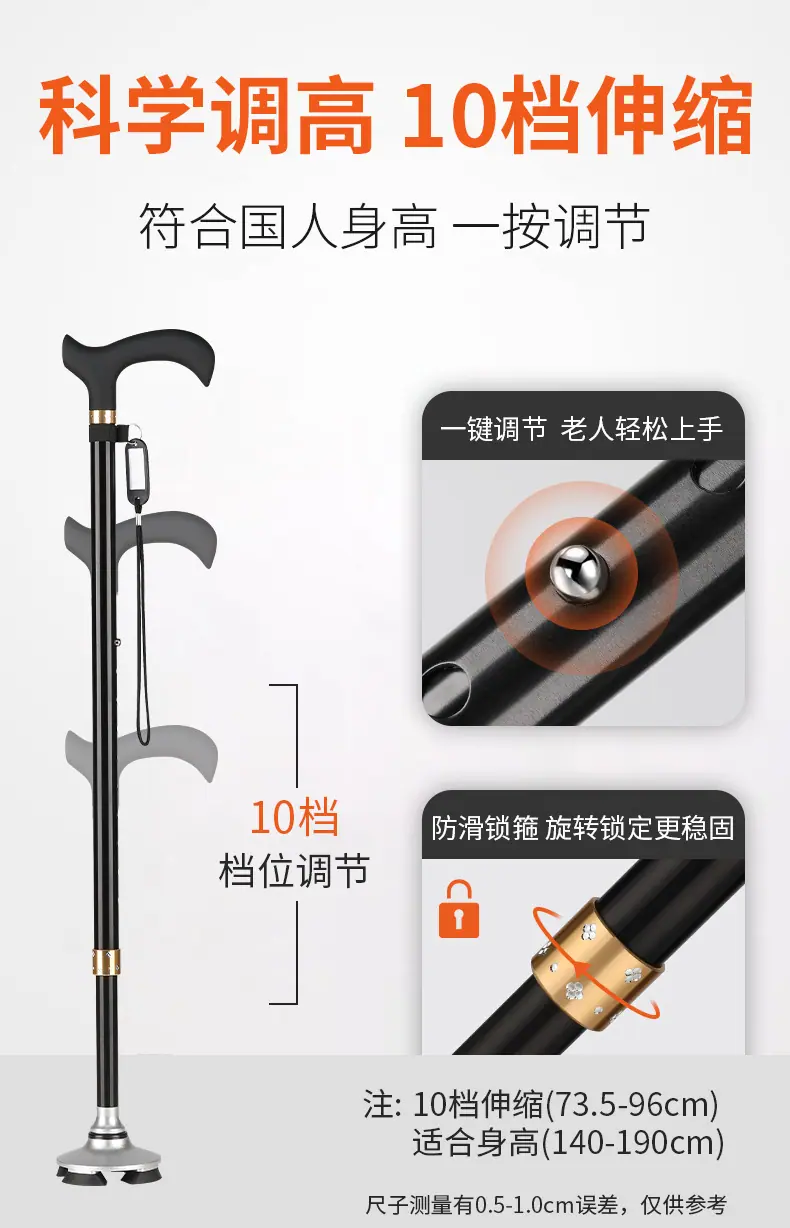 Bastón Antideslizante de Aleación de Aluminio, Base Estable Ajustable de Cuatro Patas, Bastón Telescópico Multifuncional, Bastón para Ancianos