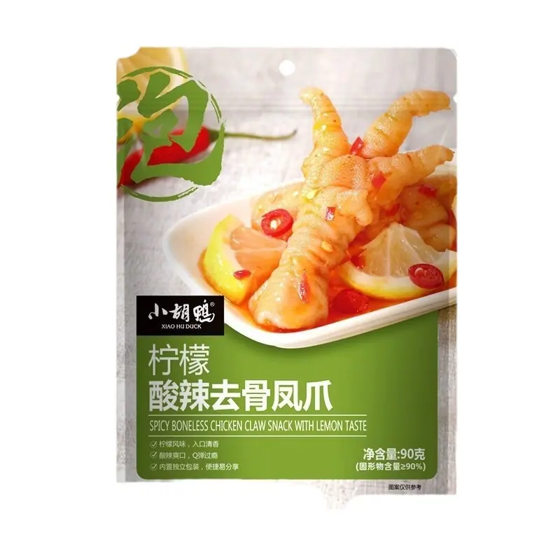 Patitas de Pollo Deshuesadas Little Hu Duck 90g Patitas de Pollo Piel de Tigre Estofadas Aromáticas Picantes Adormecedoras Picantes 4 Sabores Snacks Picantes Comida Cocinada Patitas de Pollo Mayoreo