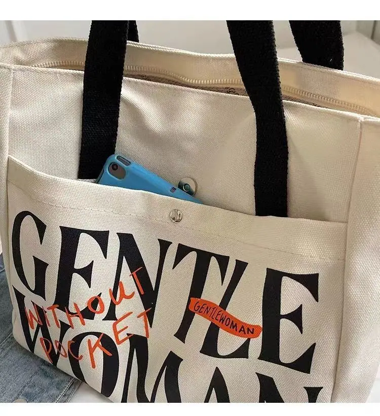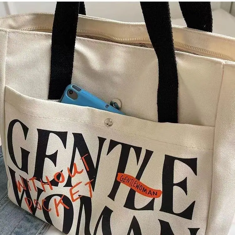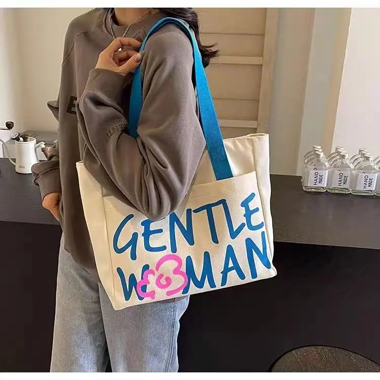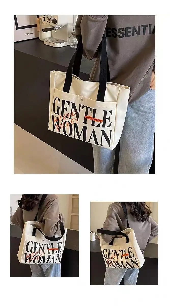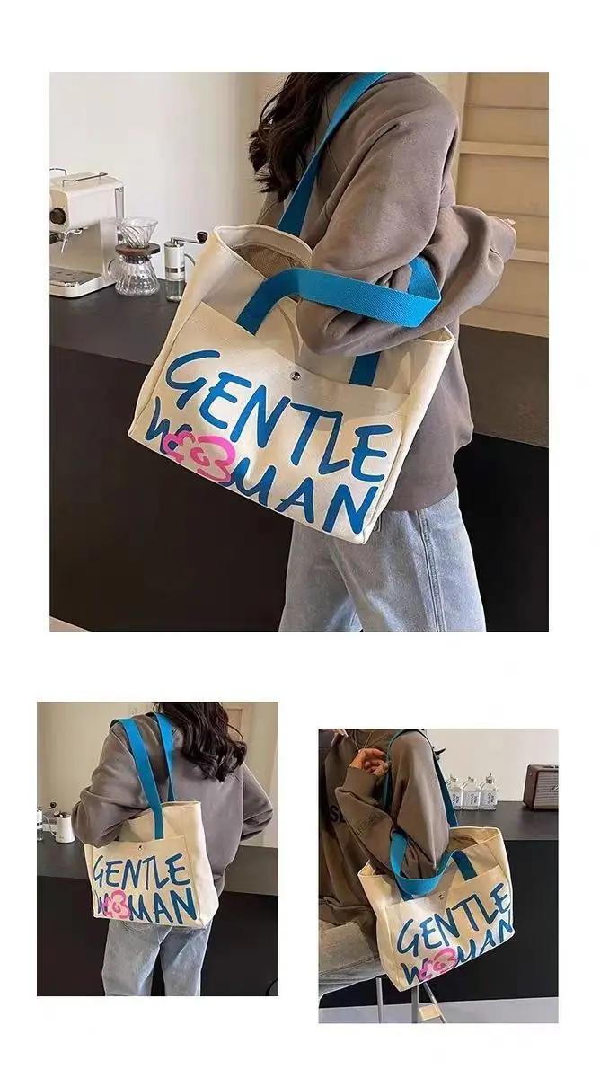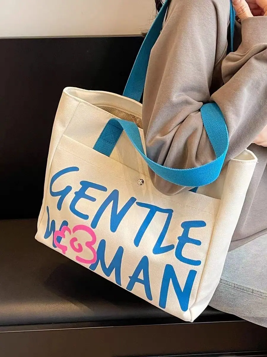 Compra Bolsa de Lona con Letras Mujer Gran Capacidad Bolso de Mano para Clase de Estudiante Nuevo Bolso Tote de Hombro para Desplazamiento DY al por mayor en Joom.pro