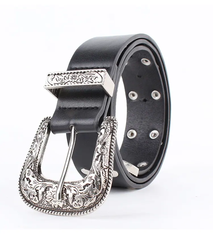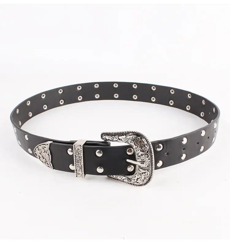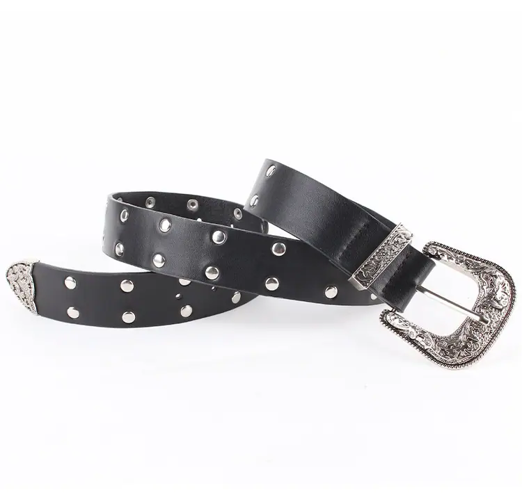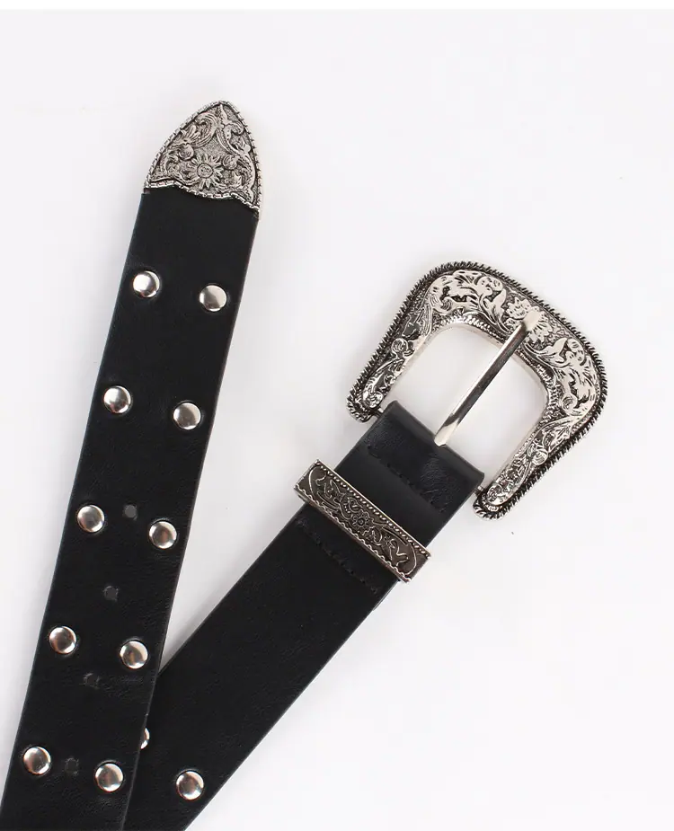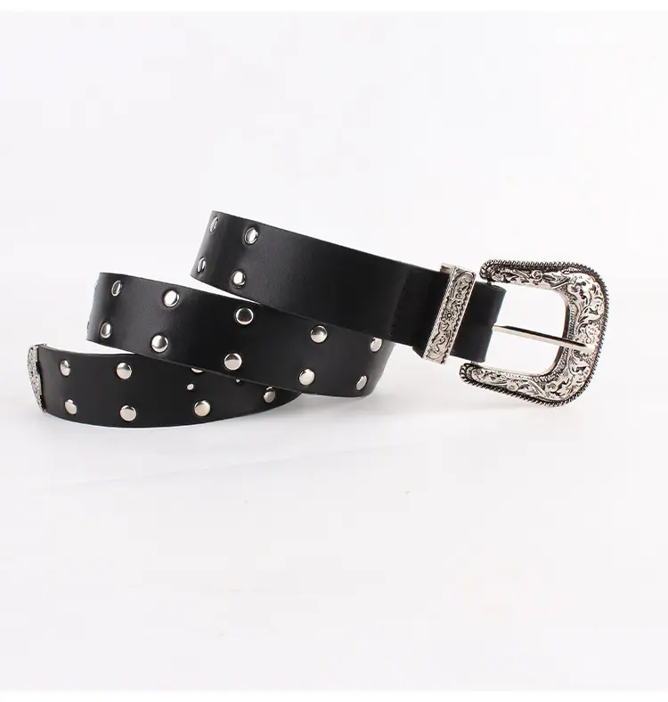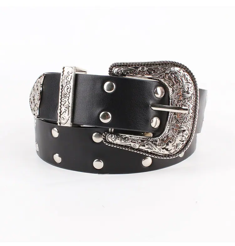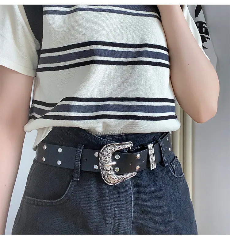 Cinturón Chica Picante para Mujer Remache Hebilla Metálica Cinturón para Pantalones Y2K Americano Retro Industria Pesada Punk Negro Cinturón de Cintura