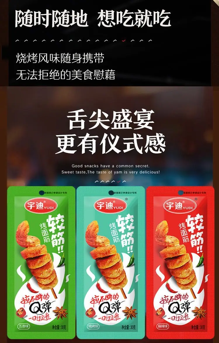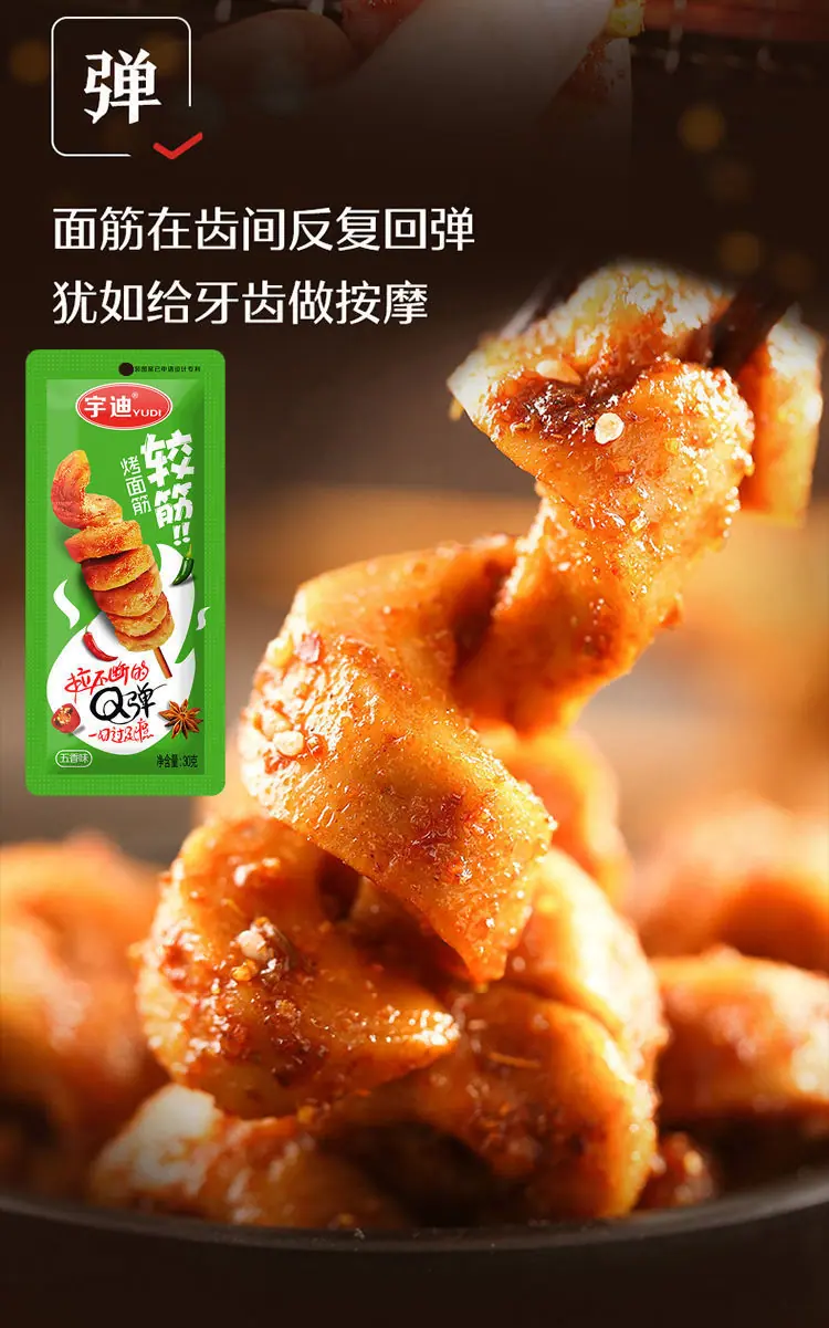 Celebridad de Internet gluten a la parrilla 30g/bolsa listo para comer casual picante pequeños snacks tiras picantes productos de gluten de tofu seco snacks mayoreo