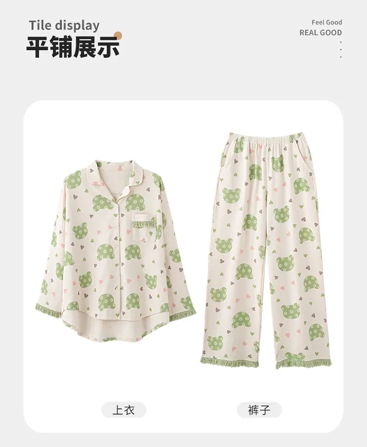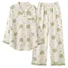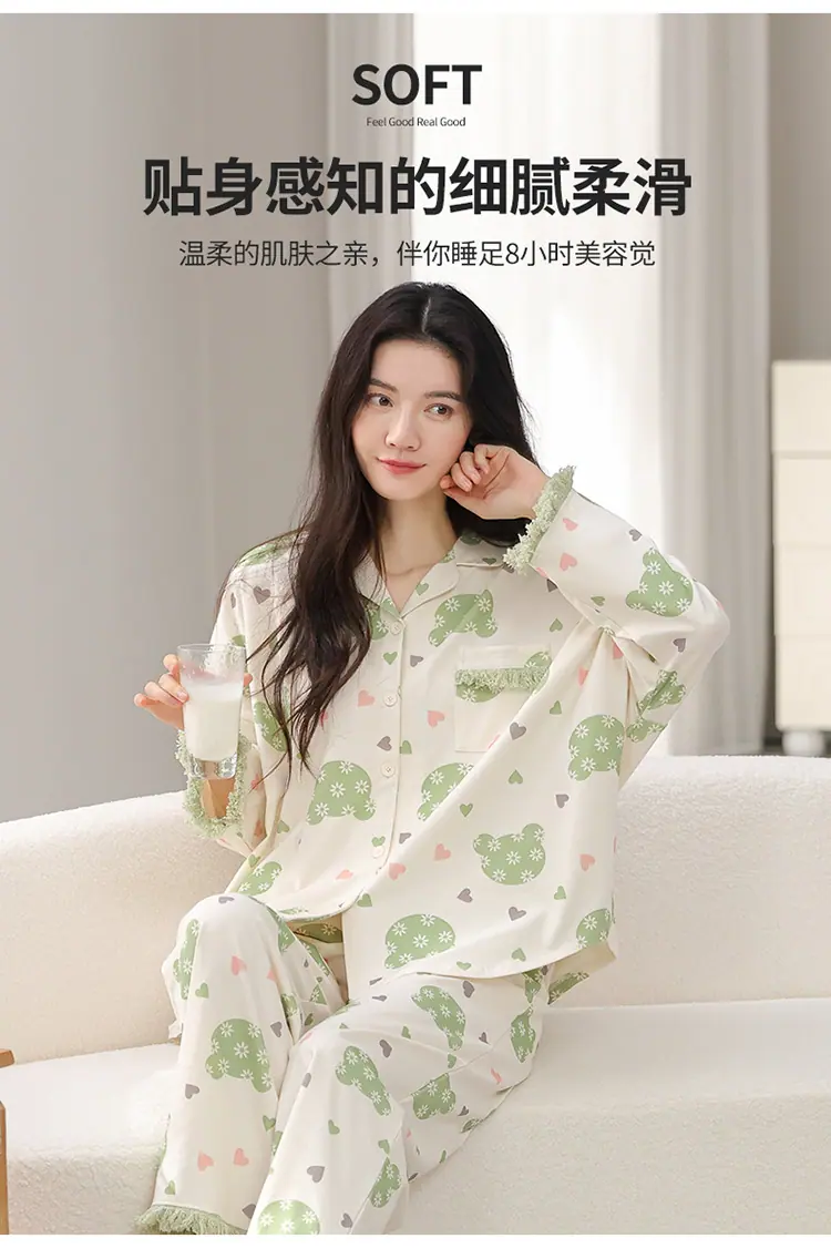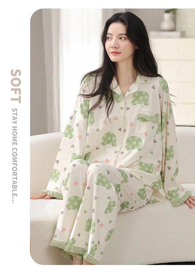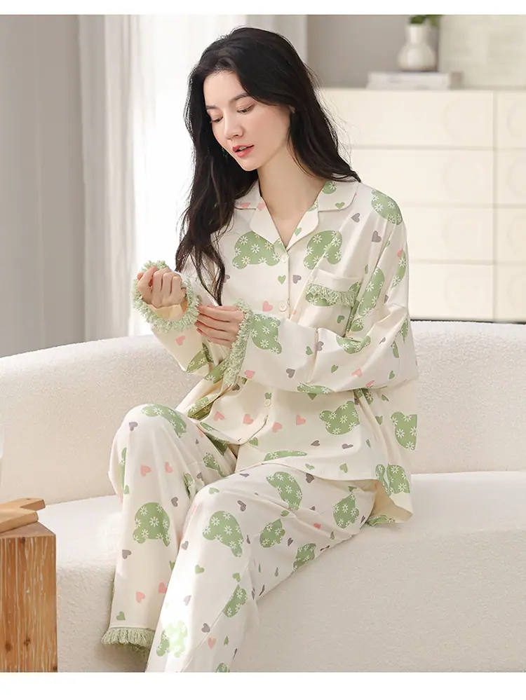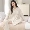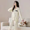 Pijamas de Mujer Primavera y Otoño Algodón Puro Manga Larga para Dama de Alta Gama Se Puede Usar Fuera Ropa de Casa Otoño e Invierno Set Cárdigan Solapa