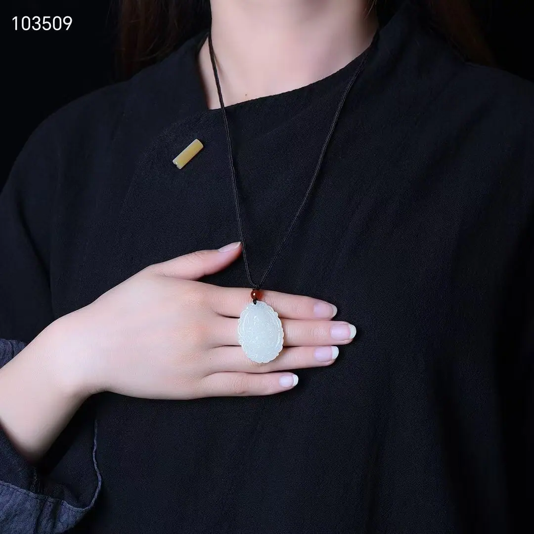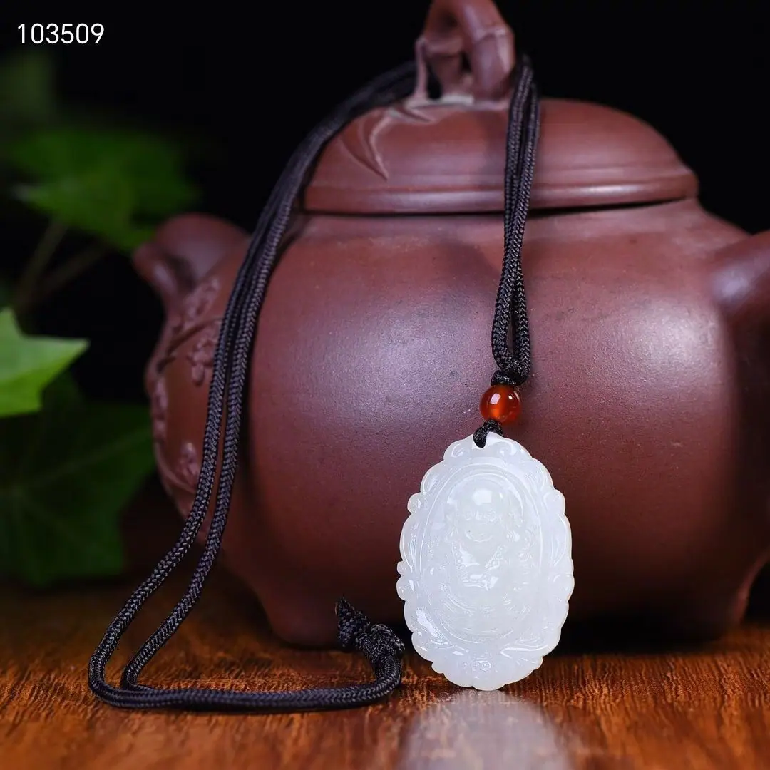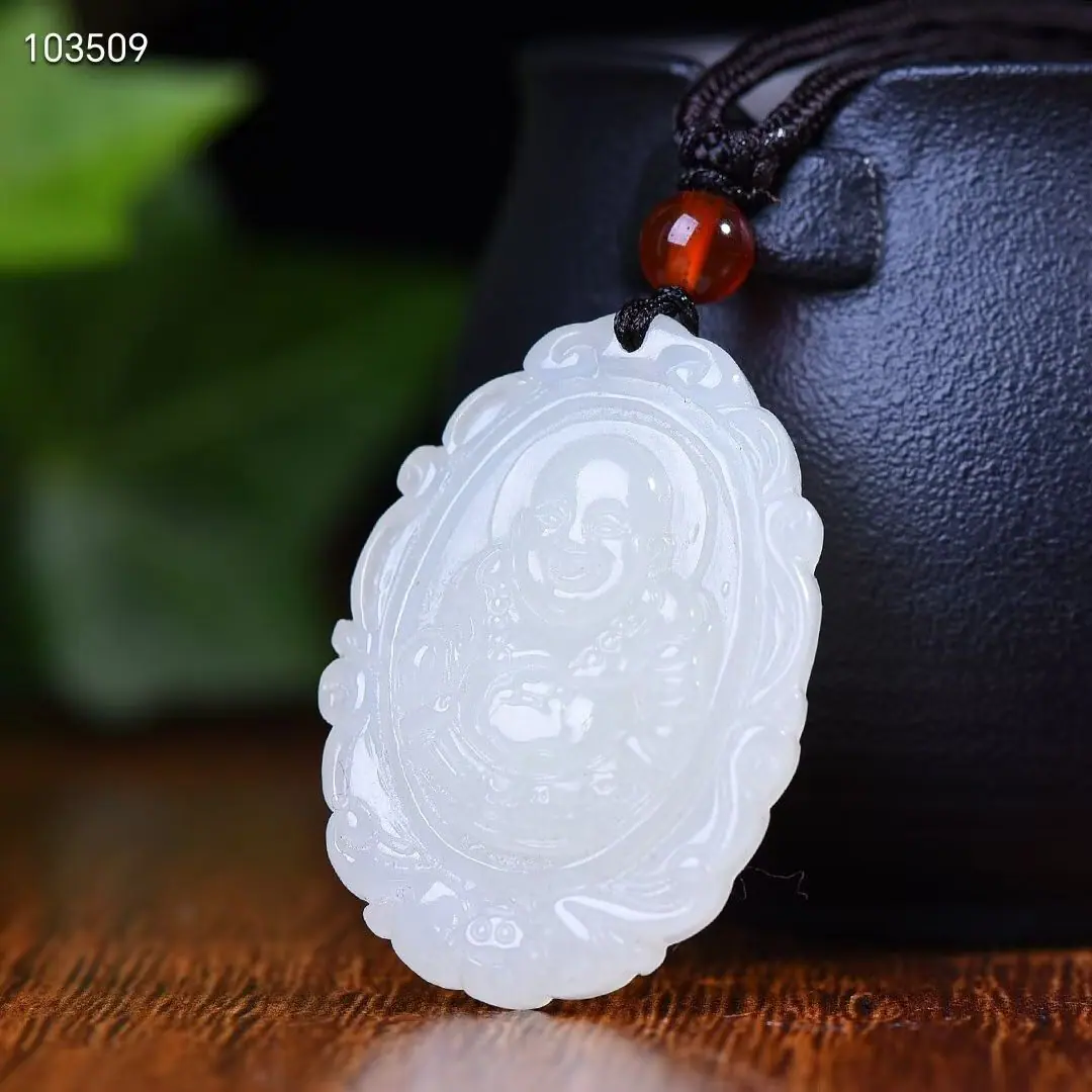 Colgante Buda de la Paz de Jade Hetian Mineral Crudo Natural Estatua de Buda de Encaje Colgante de Jade Colgante Auspicioso