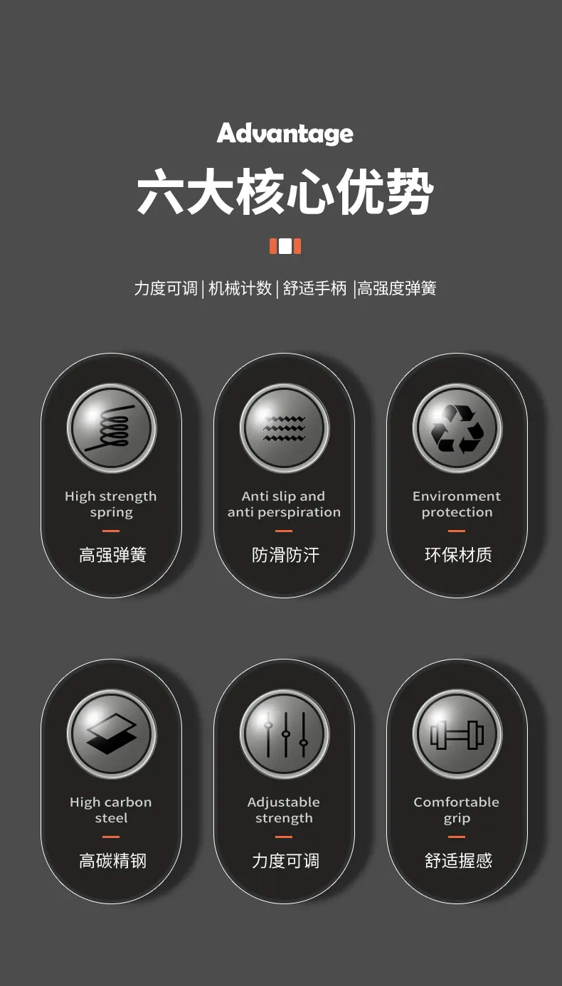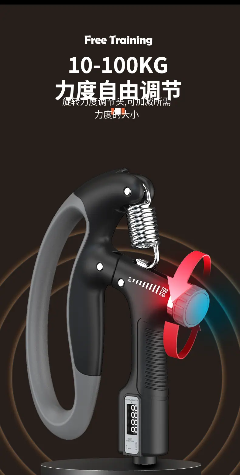 Agarre de Mano Inteligente con Contador 10-100kg Ajuste Libre Profesional Fuerza de Mano Fuerza de Brazo Entrenador Muscular Ejercitador de Muñeca