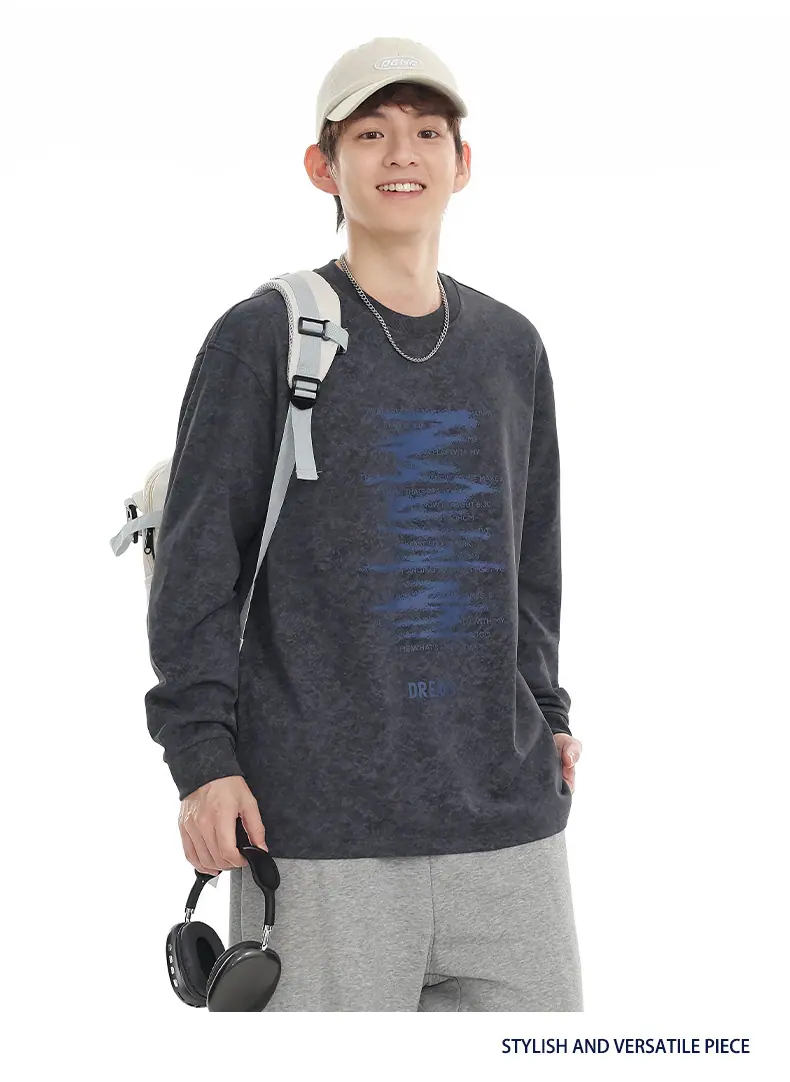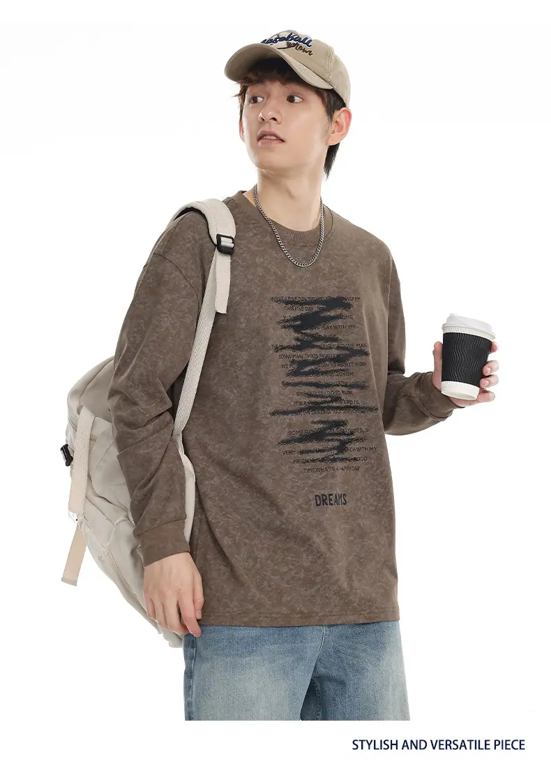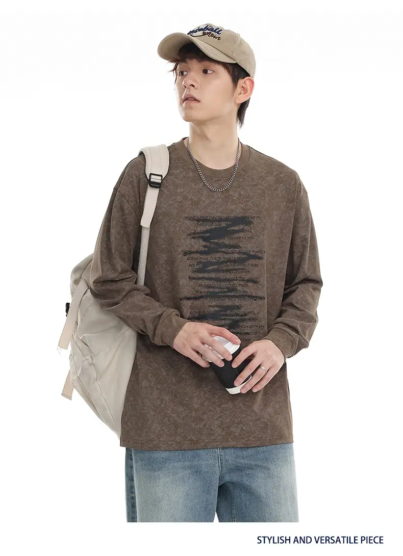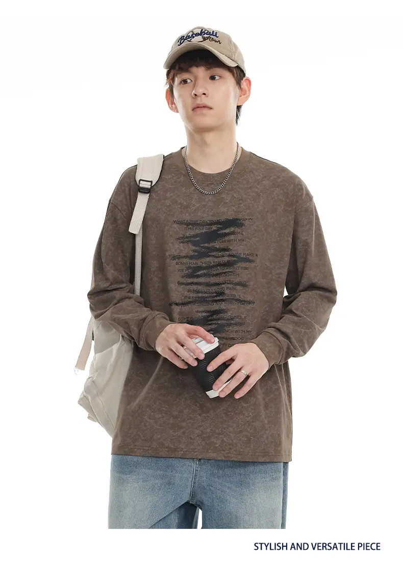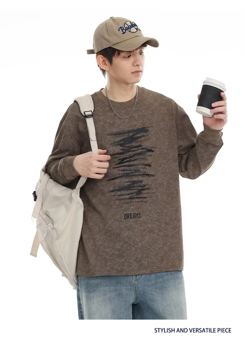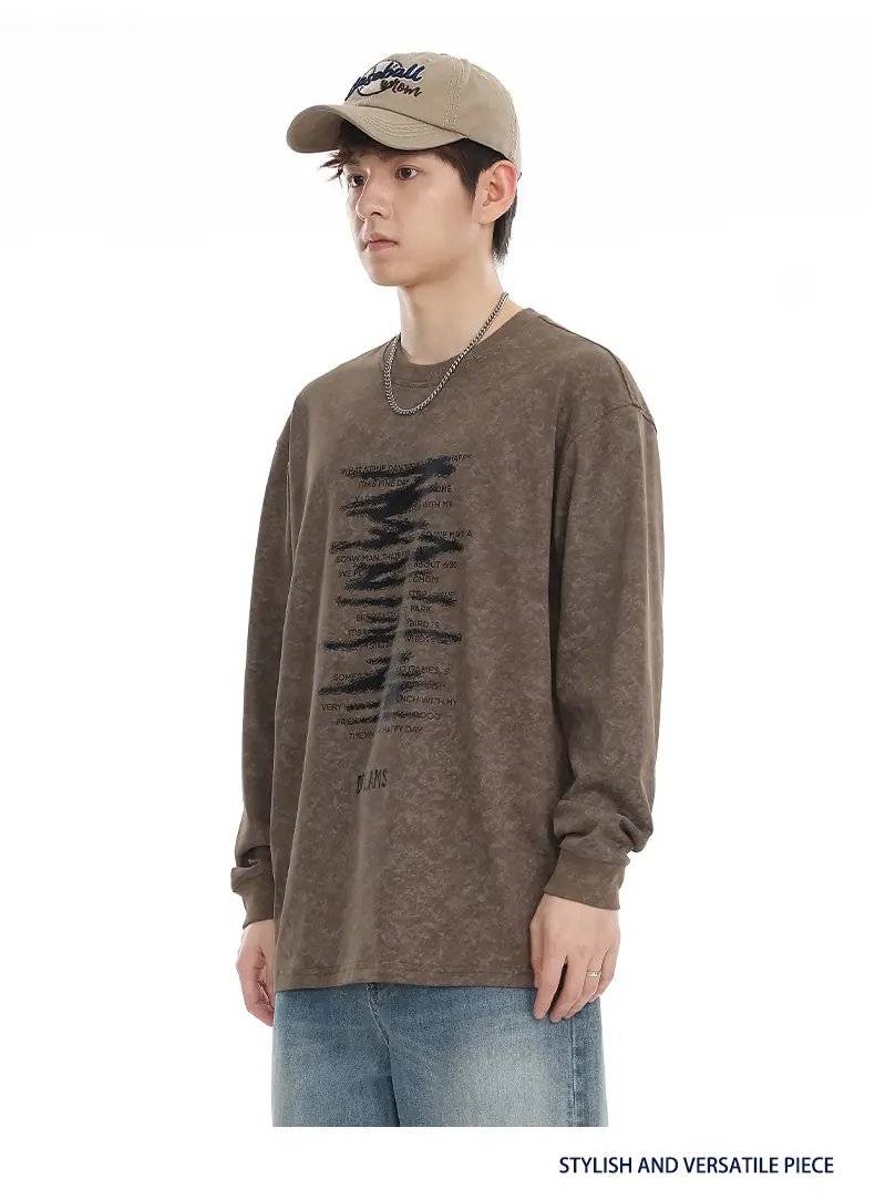 Top Versátil Unisex Casual para Estudiante con Estampado de Letras Tendencia 2025 Nuevo Marca Top de Manga Larga para Primavera y Otoño