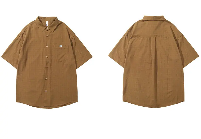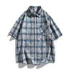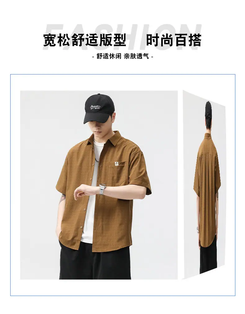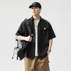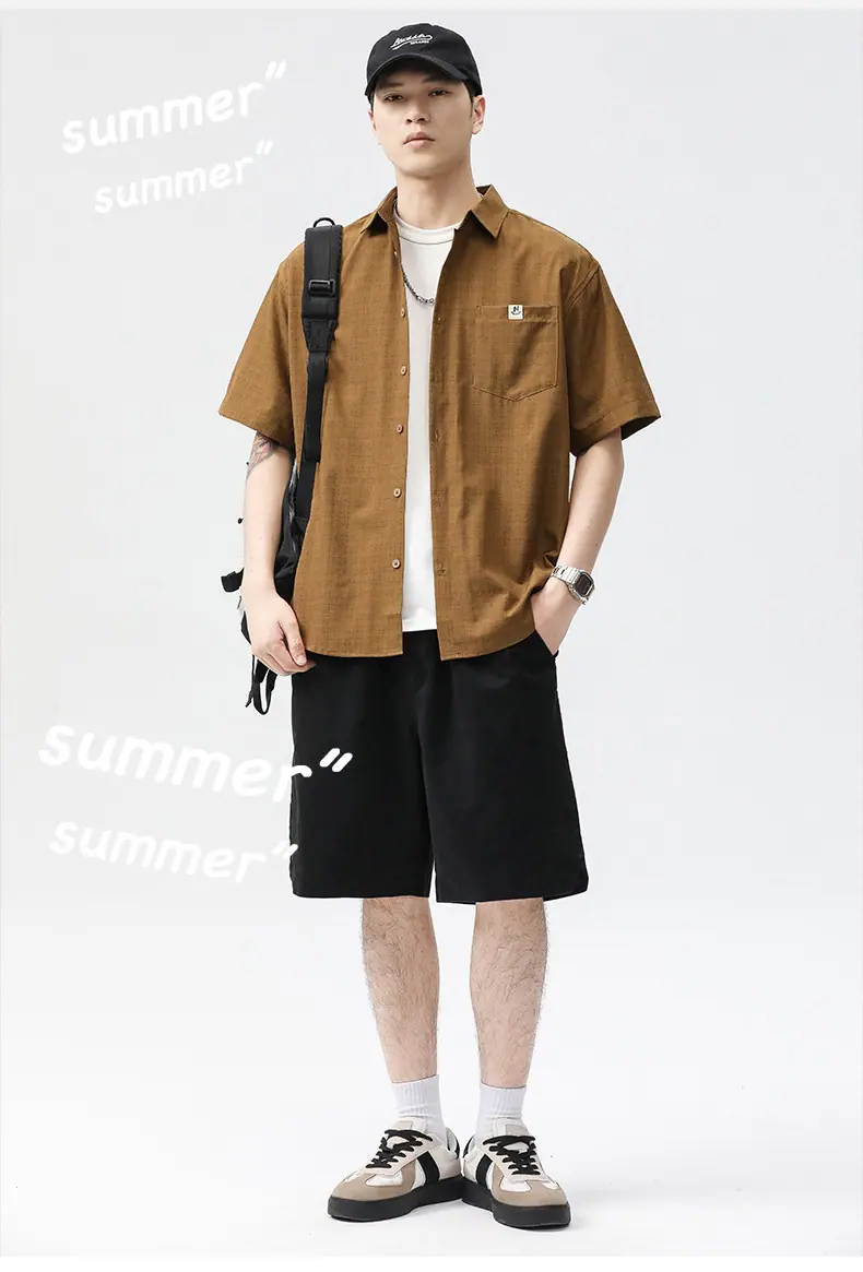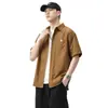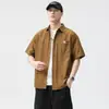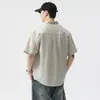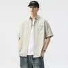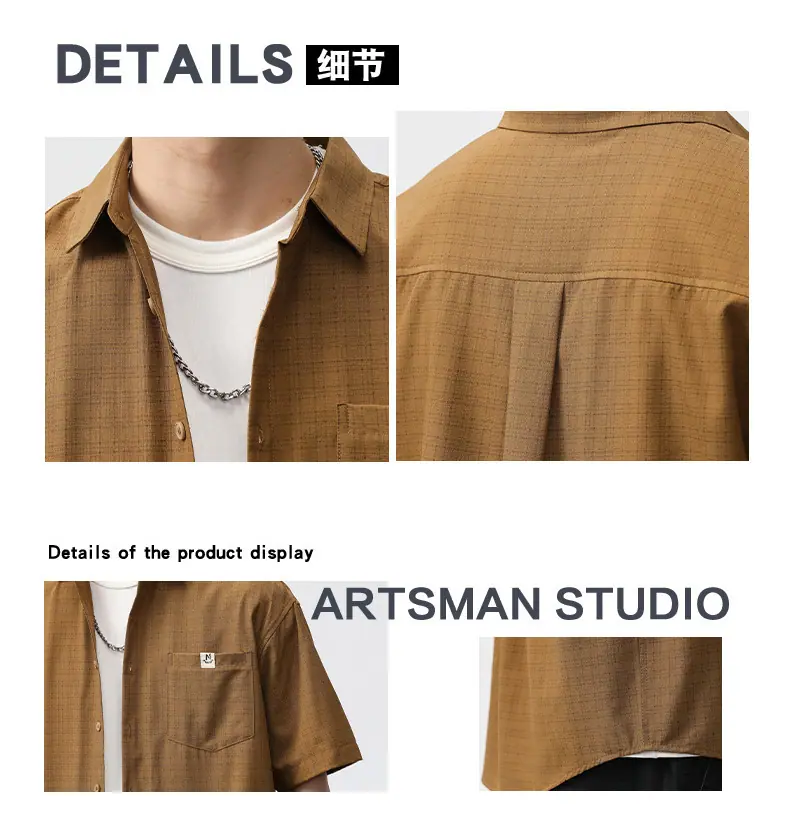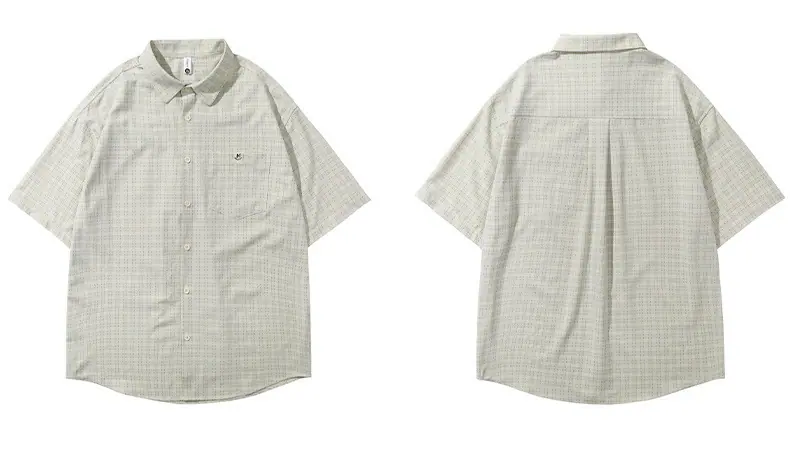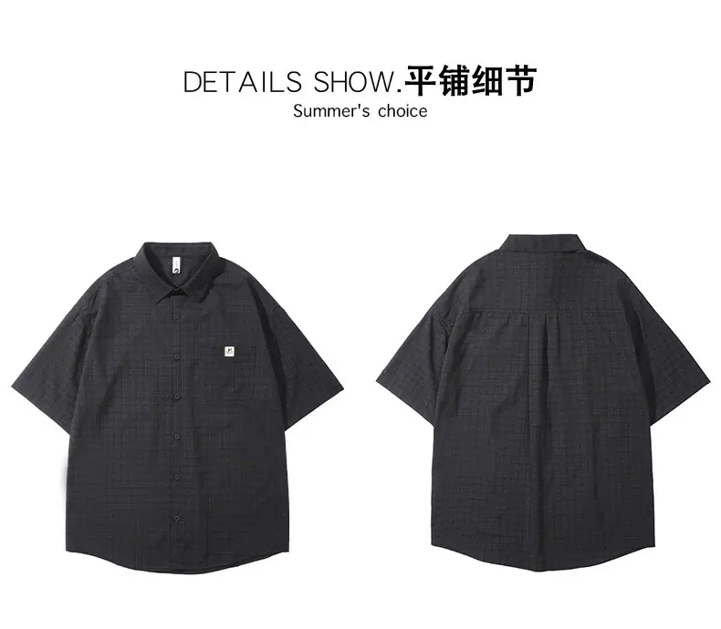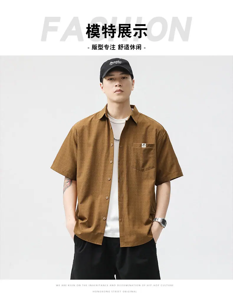 Camisa de Trabajo a Cuadros Jacquard de Verano 2024 para Hombre, Verano, Solapa, Holgada, Casual, Combinable con Todo, Camisa de Manga Corta para Hombre