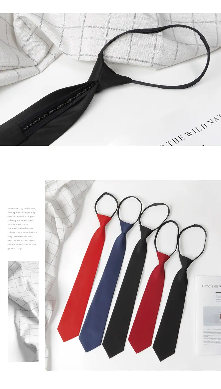Fábrica venta al por mayor corbata formal de negocios para hombre perezosa con cremallera 8cm rojo puro negro azul trabajo carrera boda