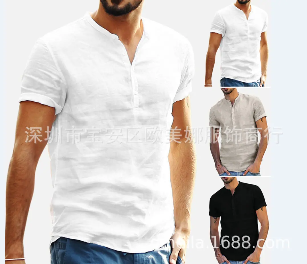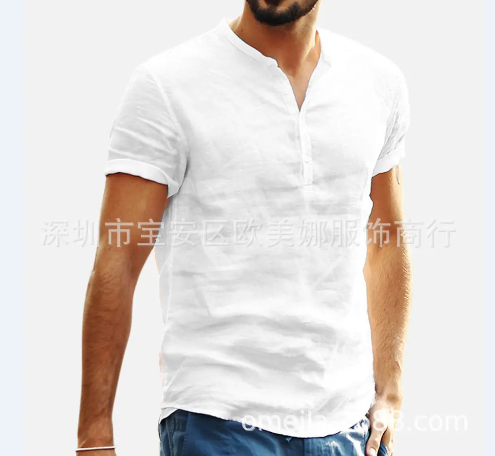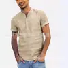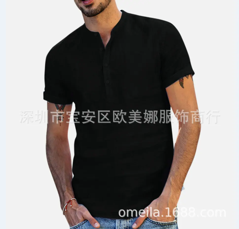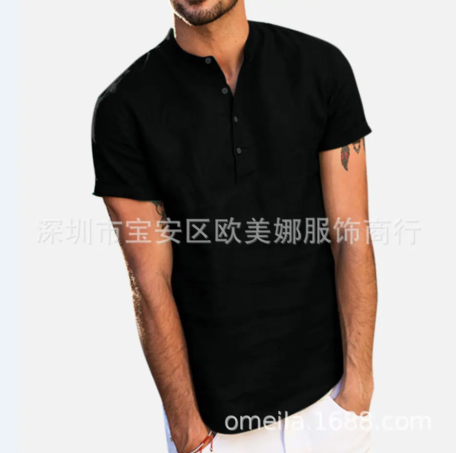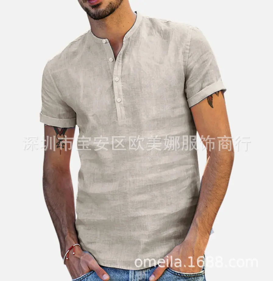 Camisa Casual de Verano Fina Nueva 2025 para Hombre, Jersey de Manga Corta Juvenil a la Moda Cuello Mao Camisa de Hombre