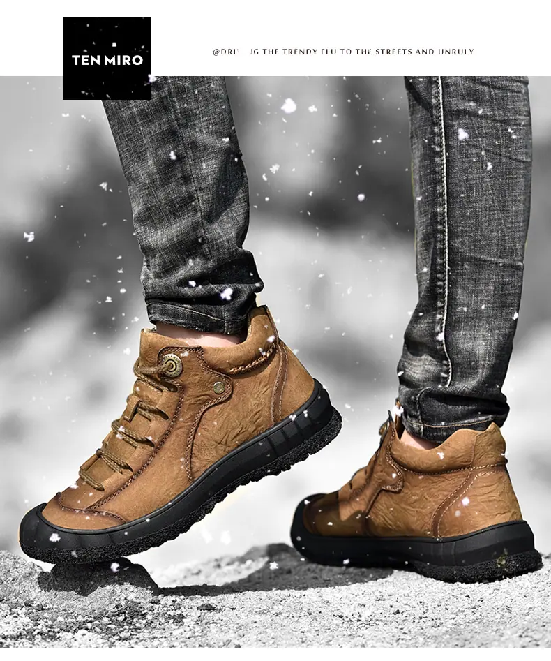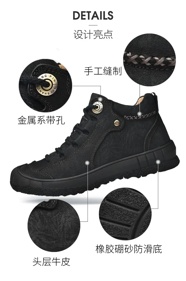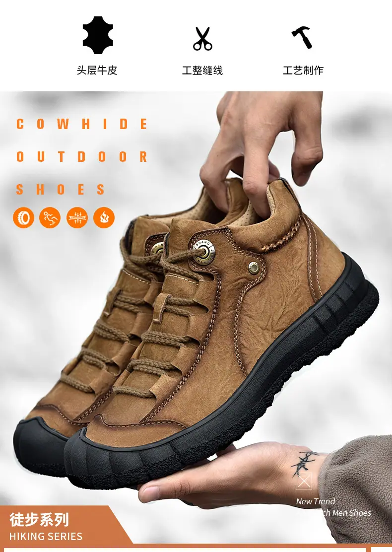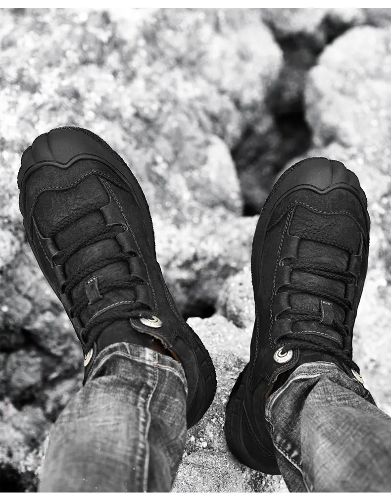 Zapatos Casuales de Exterior para Hombre Primavera/Verano Cuero Genuino Zapatos de Trabajo Hechos a Mano Cuero Vacuno de Grano Superior Suela Suave Cómodos Zapatos para Senderismo