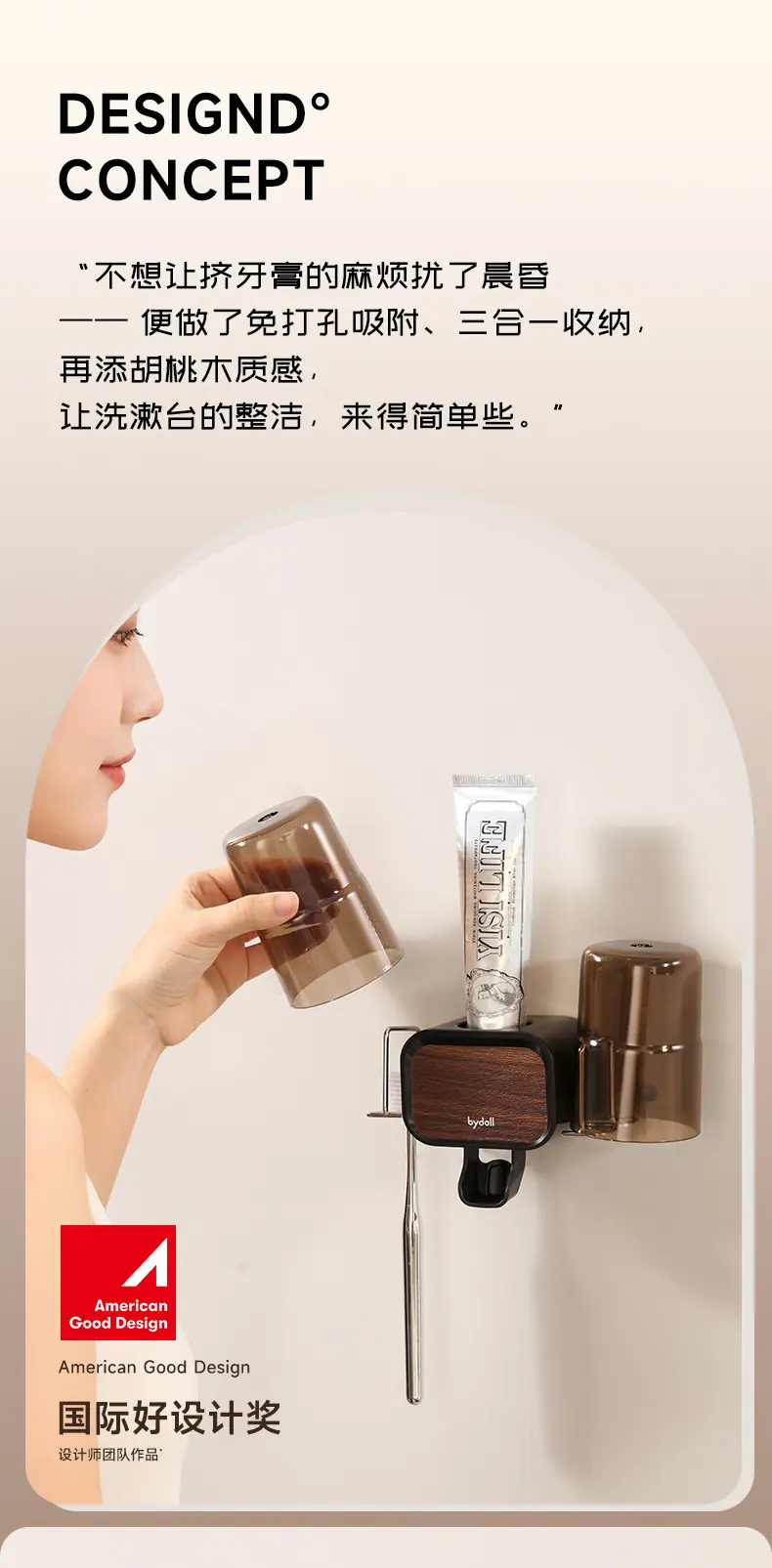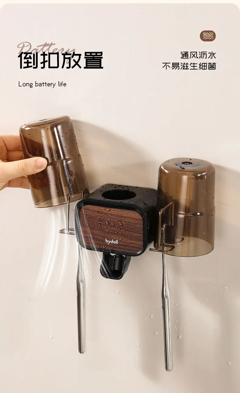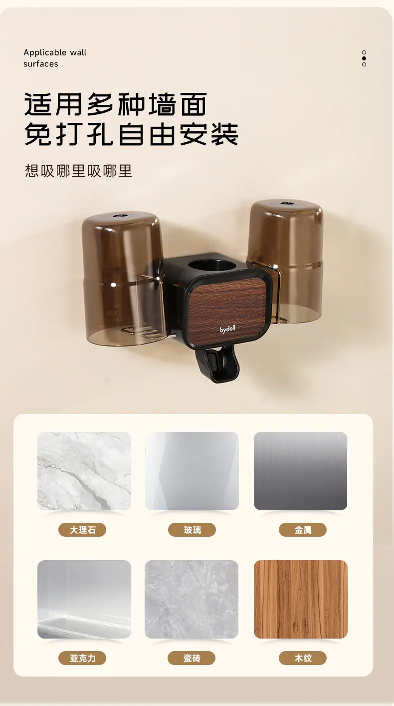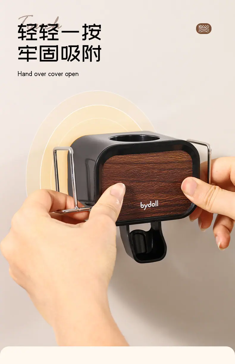 | Estante de almacenamiento para secador de pelo de baño, ligero, de lujo, de madera de nogal, sin perforaciones, soporte para secador de pelo | |