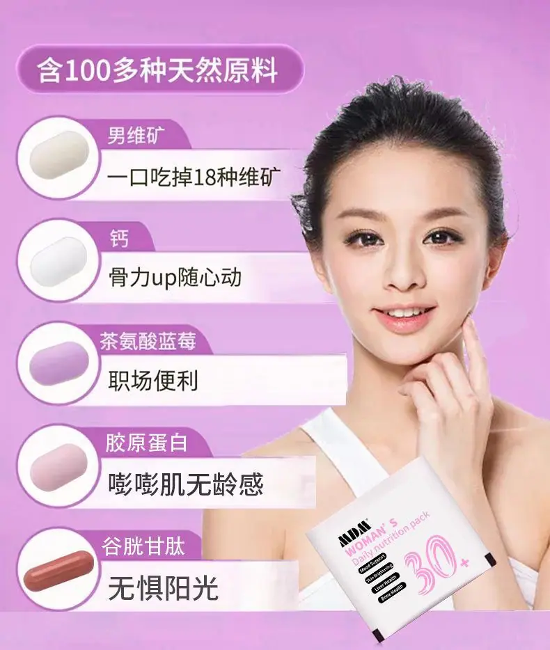 Paquete de Tiempo Net Red Paquete Nutricional Diario 30 + Vitaminas para Mujeres Complejo B Tabletas de Enzimas Acondicionadoras Cápsulas Minerales
