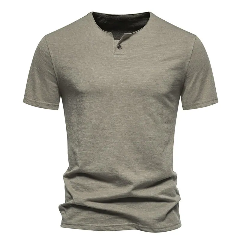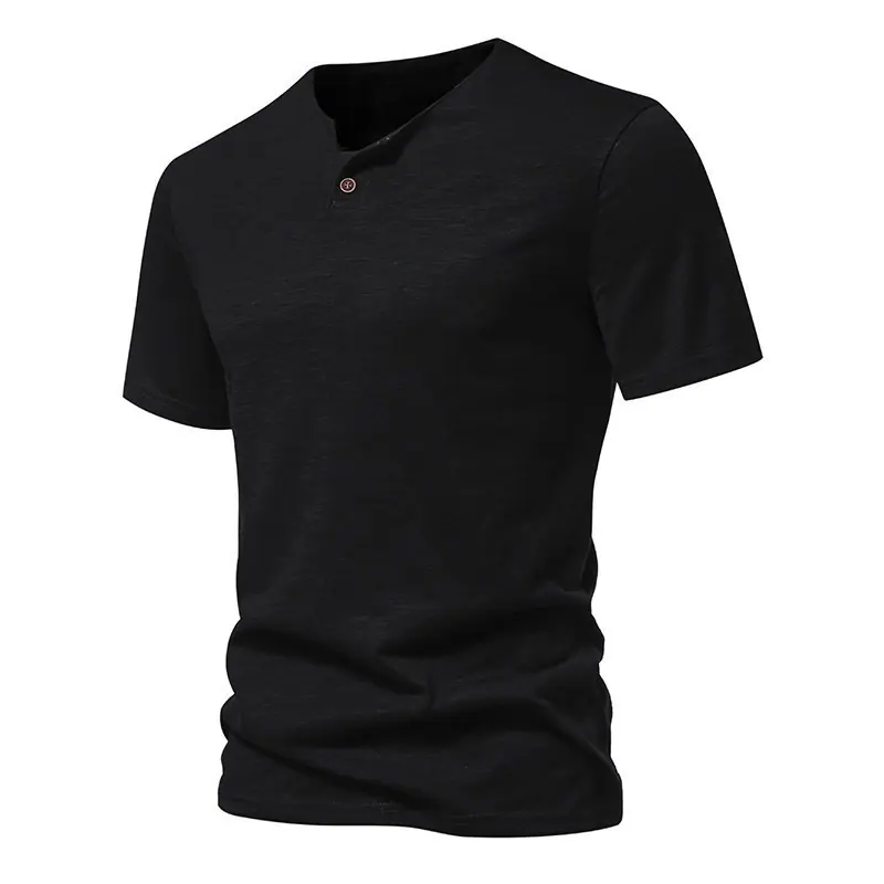 Compra Transfronterizo 2024 Verano Nuevo Camiseta de Un Botón para Hombre Algodón Slub Camiseta de Manga Corta para Hombre Camiseta Deportiva Casual para Hombre Base al por mayor en Joom.pro