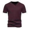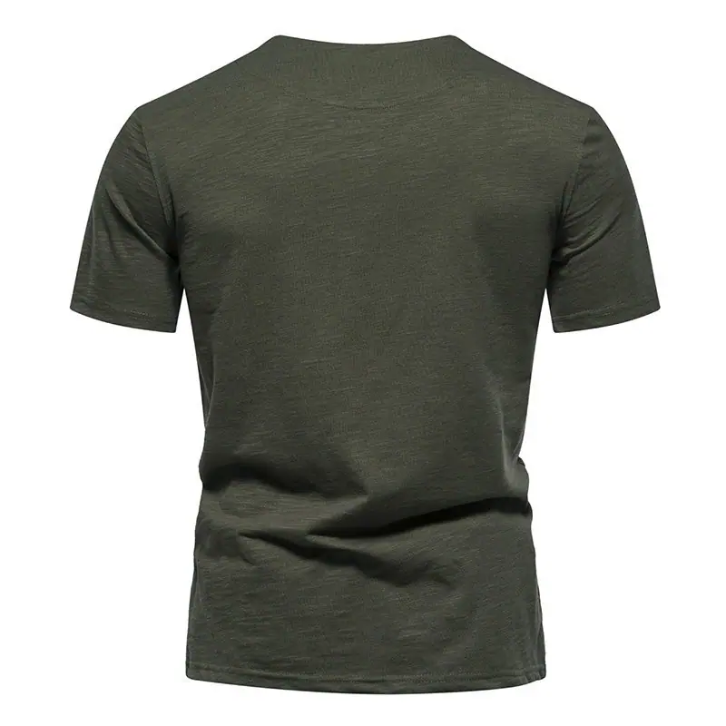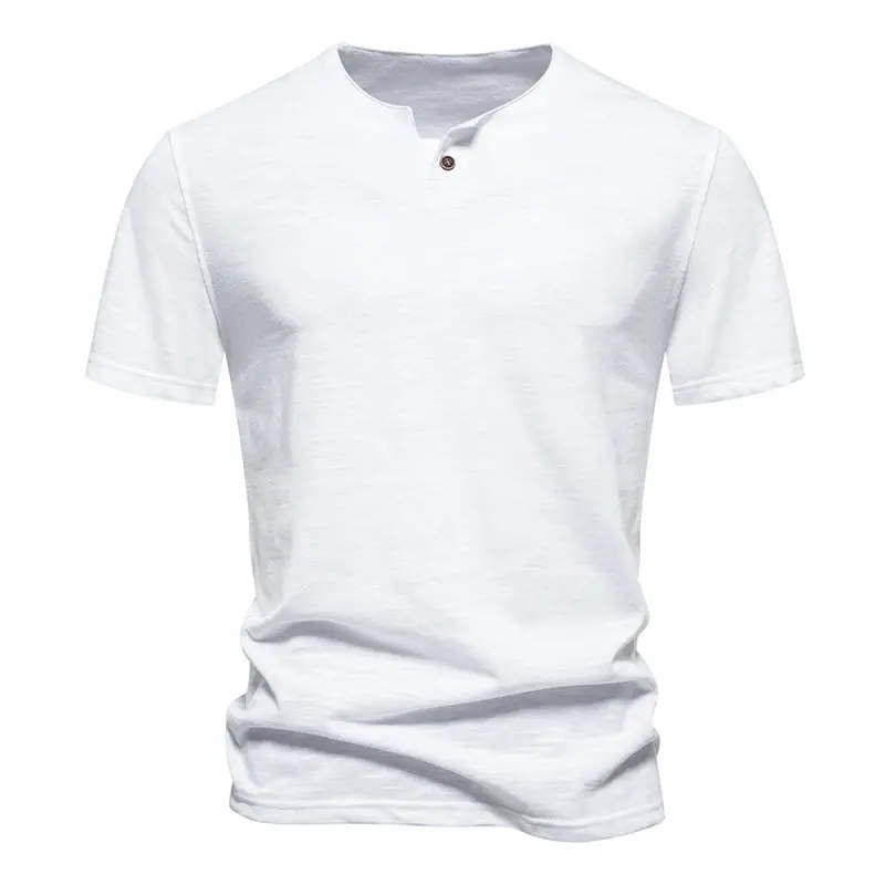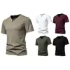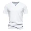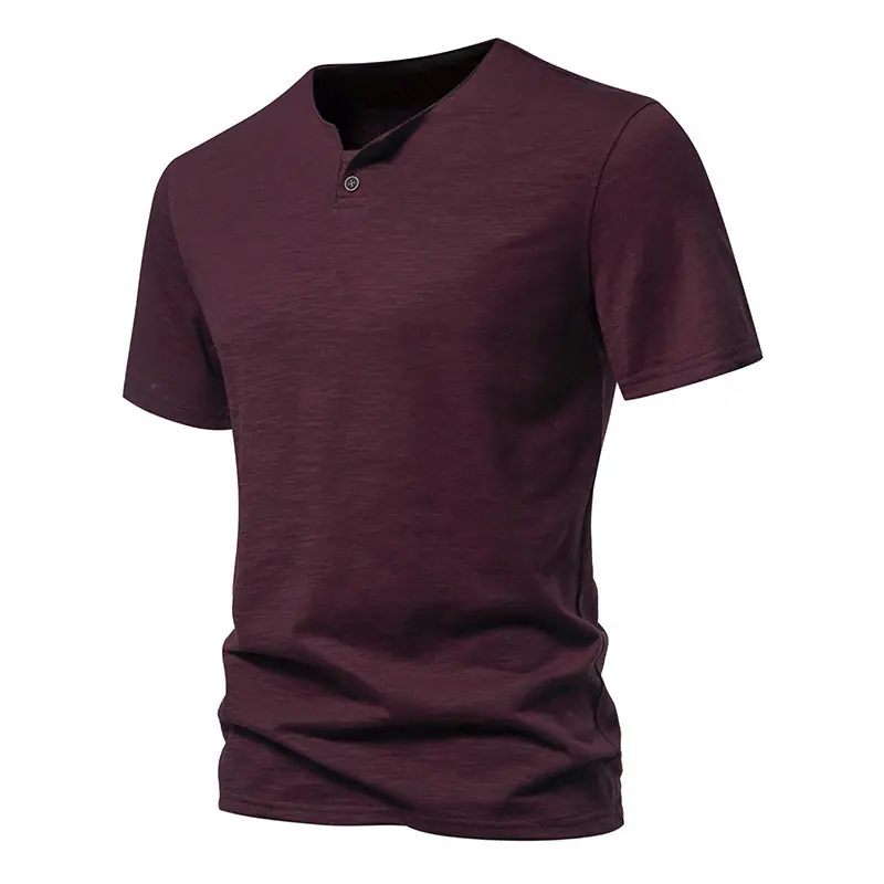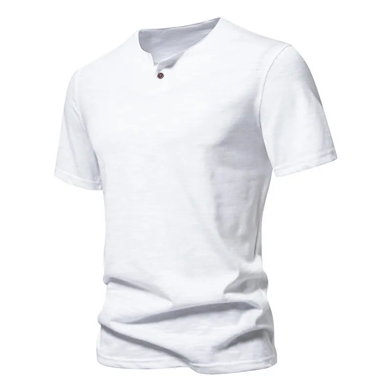 Transfronterizo 2024 Verano Nuevo Camiseta de Un Botón para Hombre Algodón Slub Camiseta de Manga Corta para Hombre Camiseta Deportiva Casual para Hombre Base