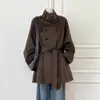Abrigo de Lana Nuevo Otoño/Invierno 2025 Estilo Hepburn es Tendencia Estilo Coreano Petite Abrigo de Lana Gris Temperamento Mujer