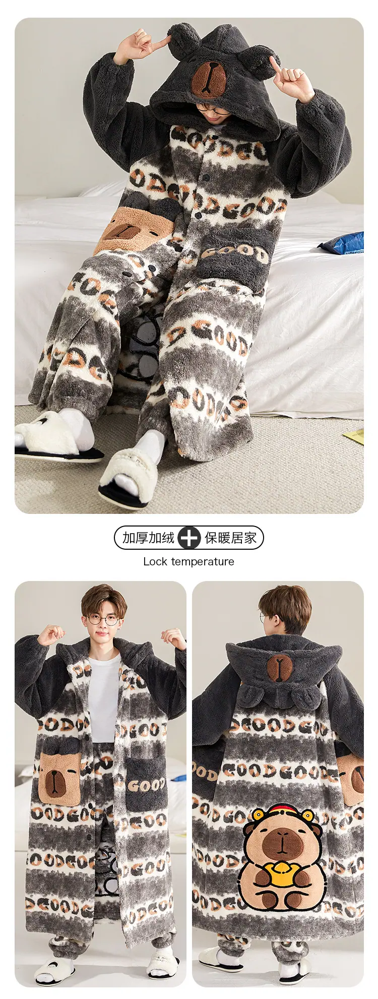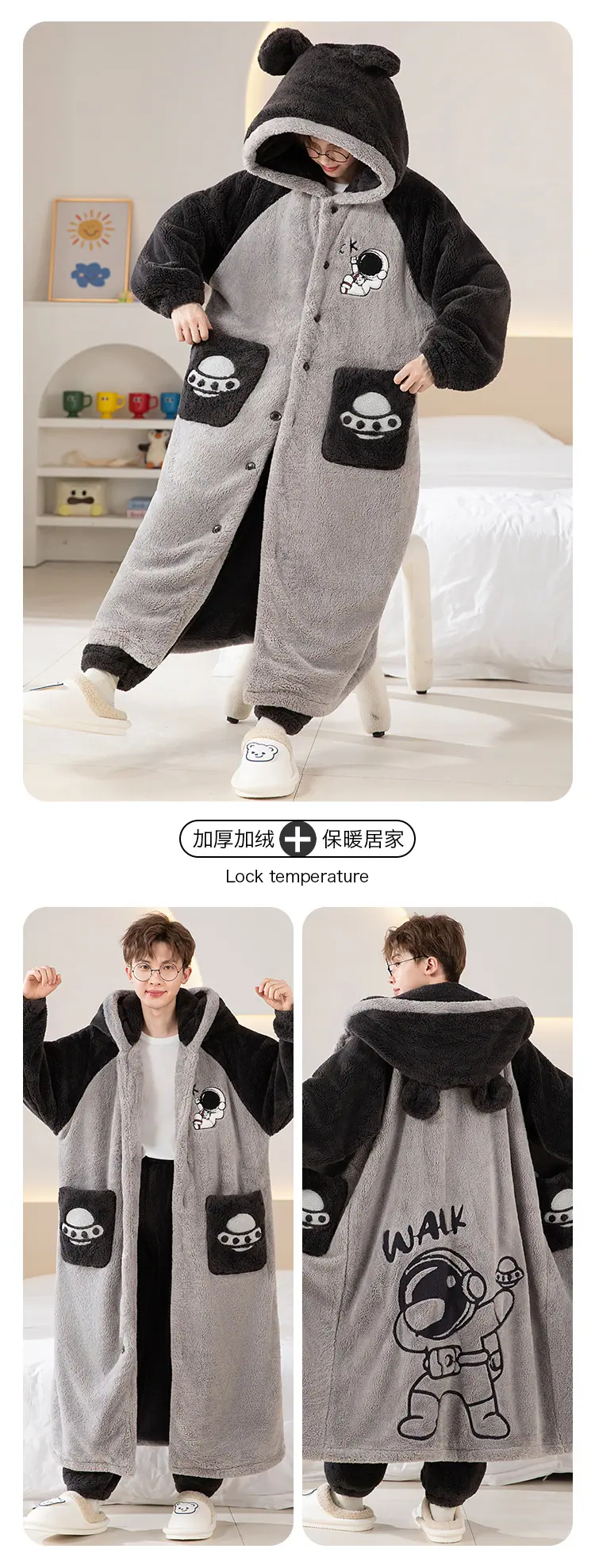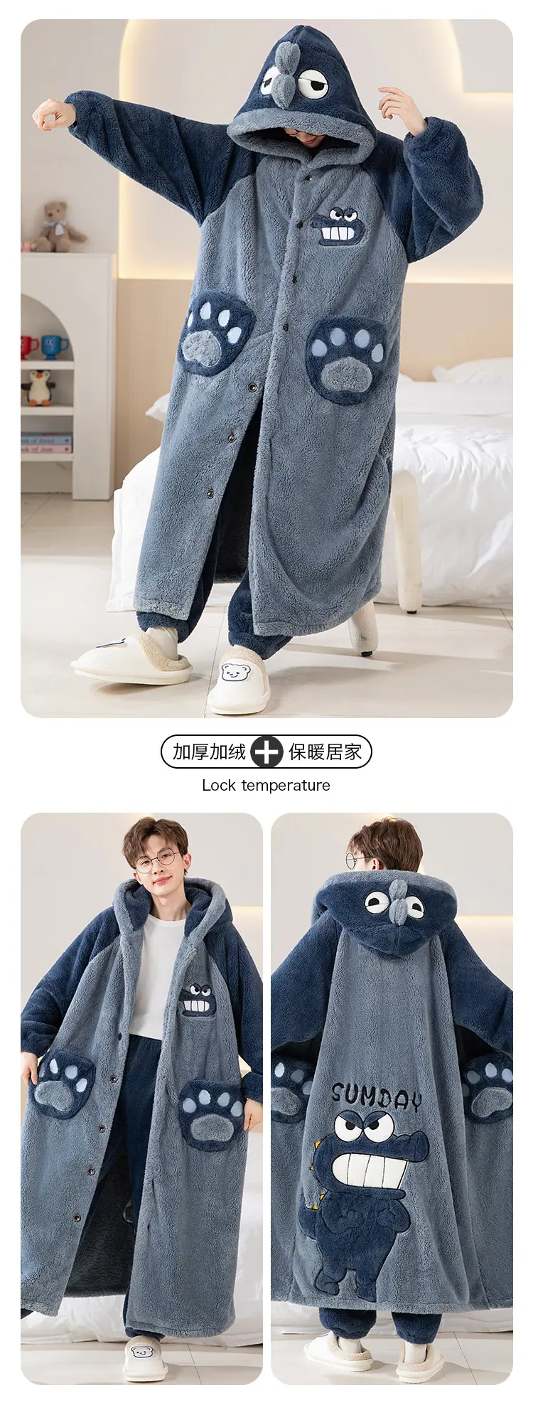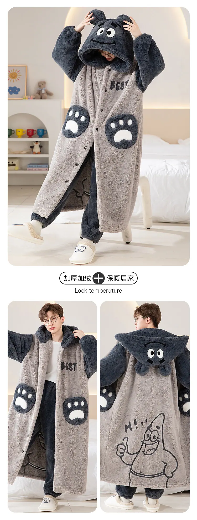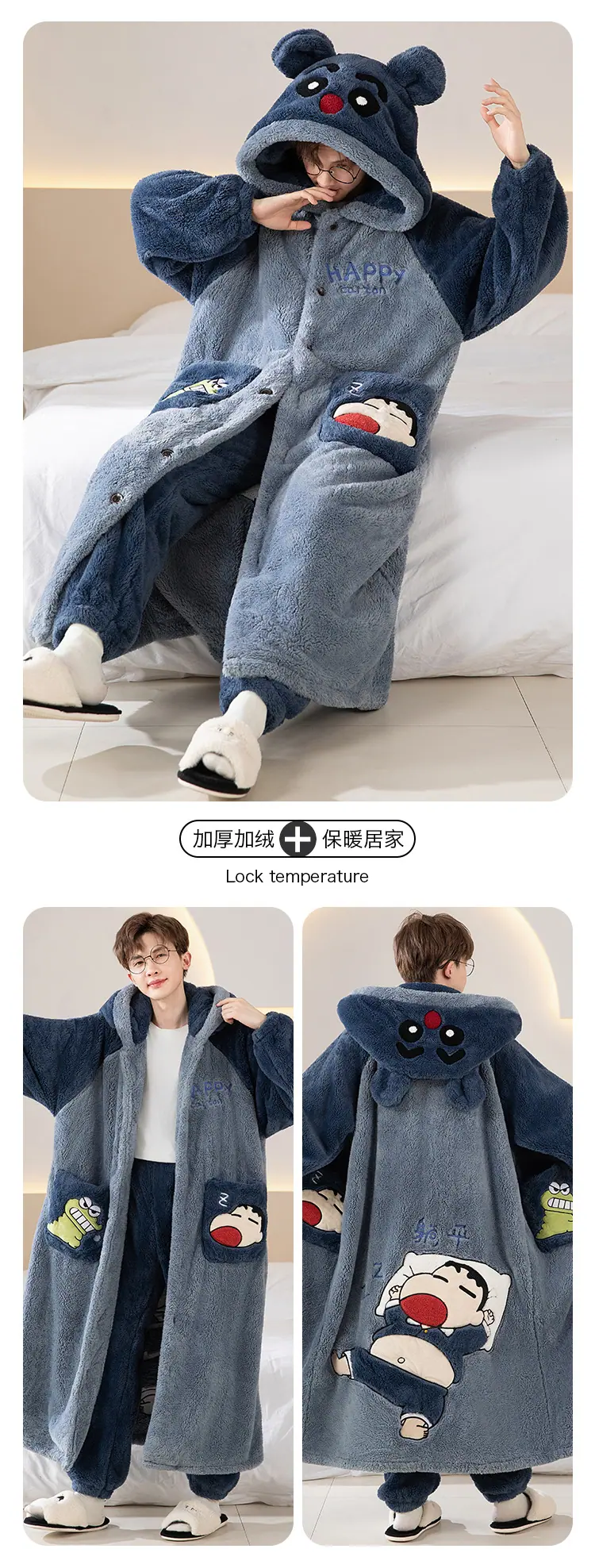 Bata para Hombre Otoño Invierno Gruesa Vellón Coral Talla Grande Estilo 200 Jin Pijama Holgado Set Bata Invierno Cálida