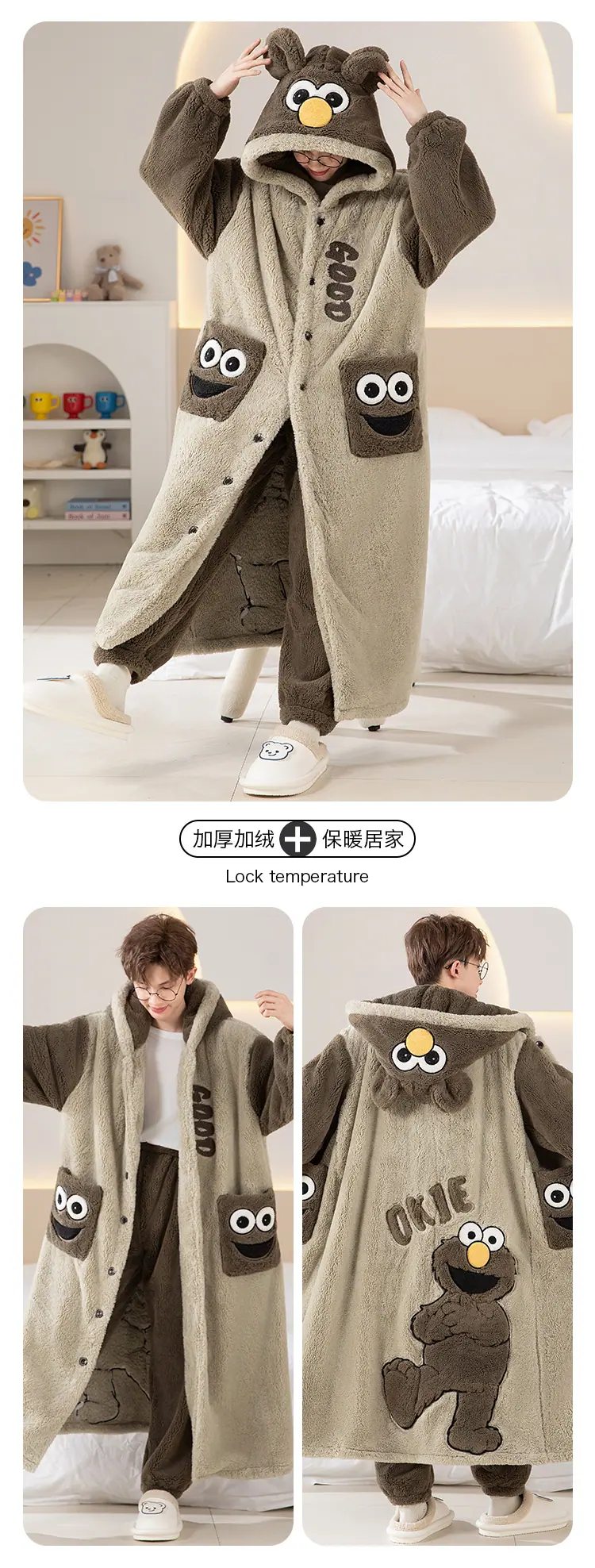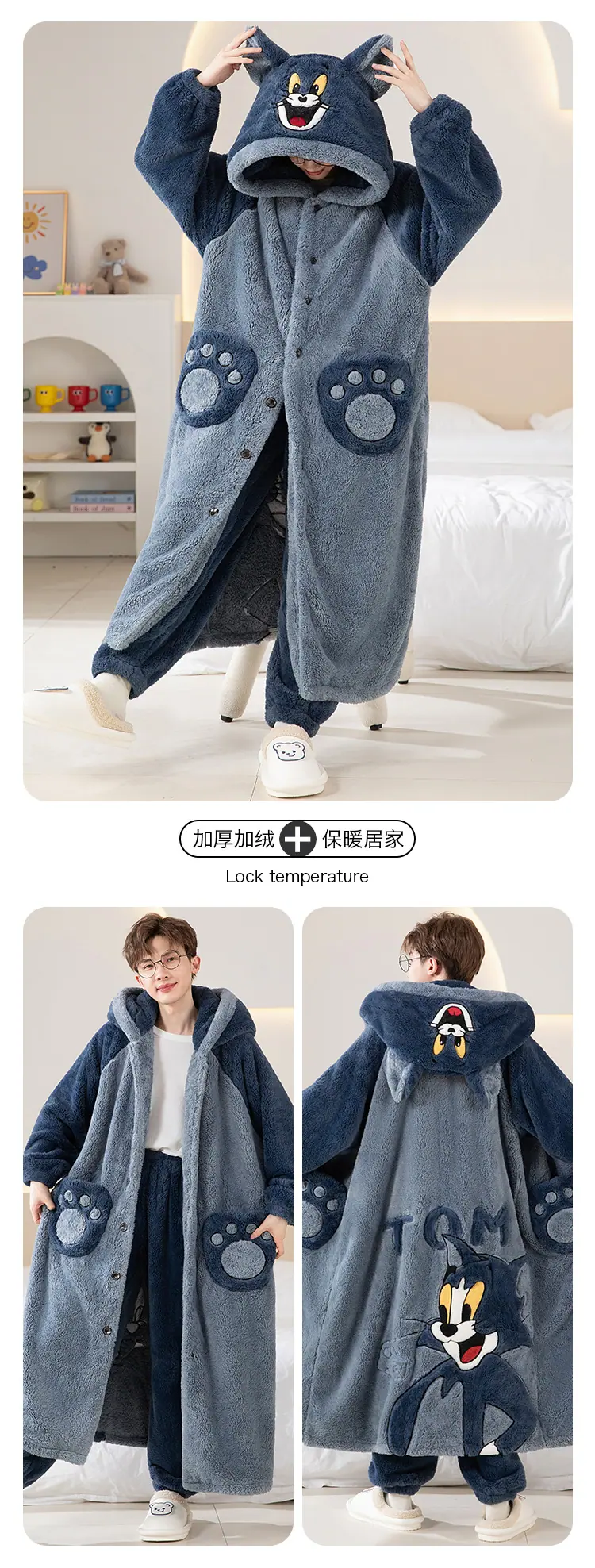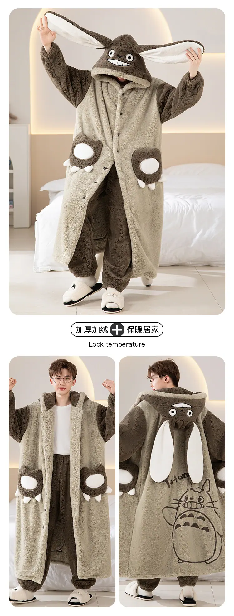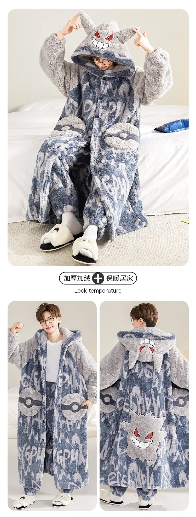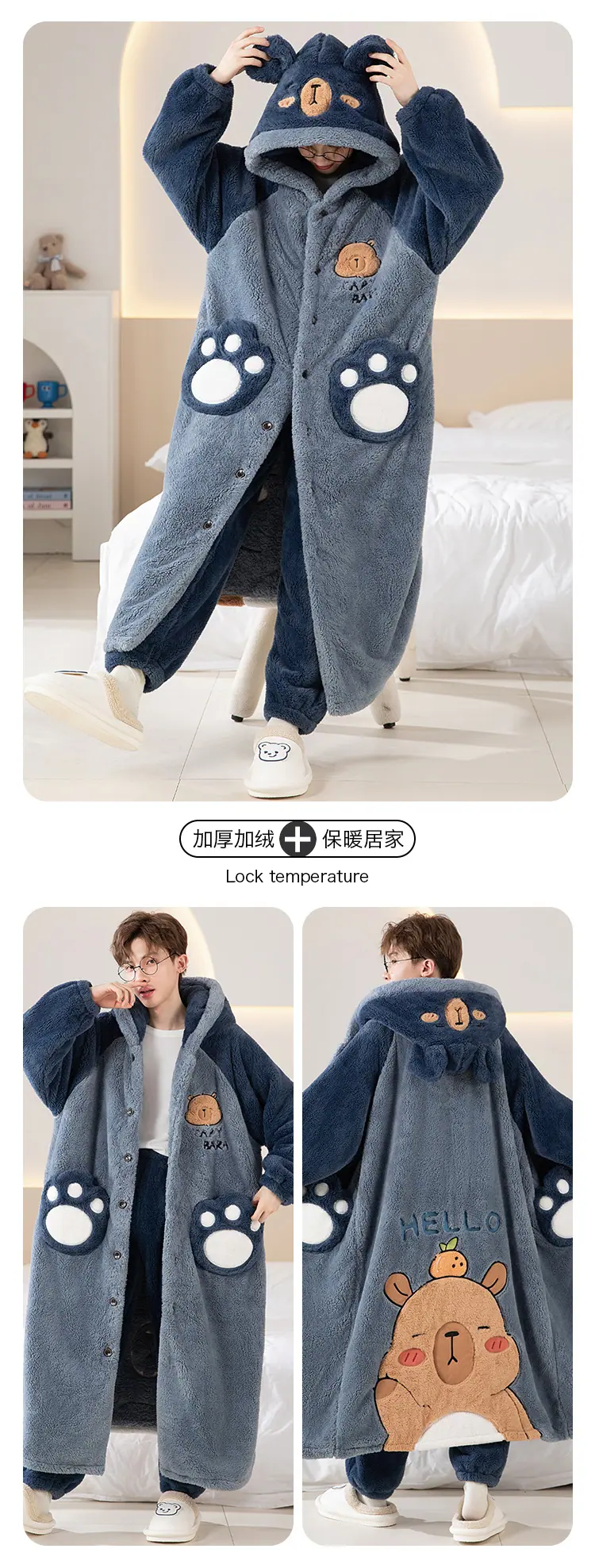 Bata para Hombre Otoño Invierno Gruesa Vellón Coral Talla Grande Estilo 200 Jin Pijama Holgado Set Bata Invierno Cálida