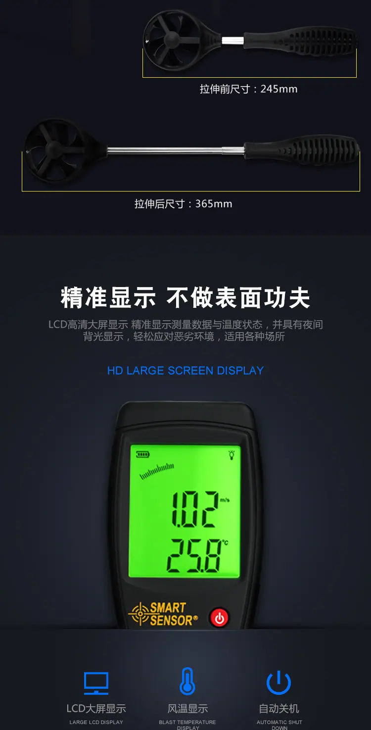 Xima AR836+ Anemómetro Detector de Velocidad del Viento Portátil Dividido Grado Industrial Detector de Velocidad del Viento Volumen de Aire
