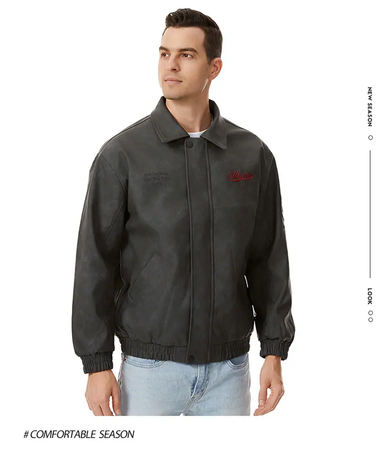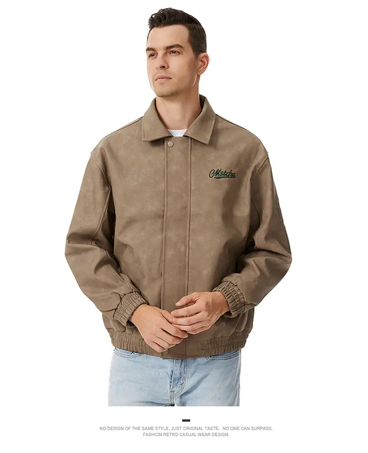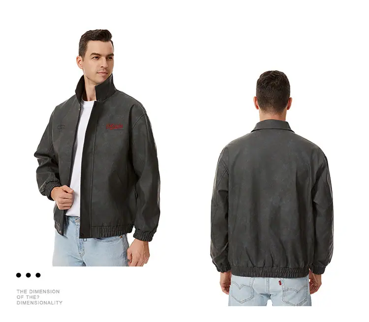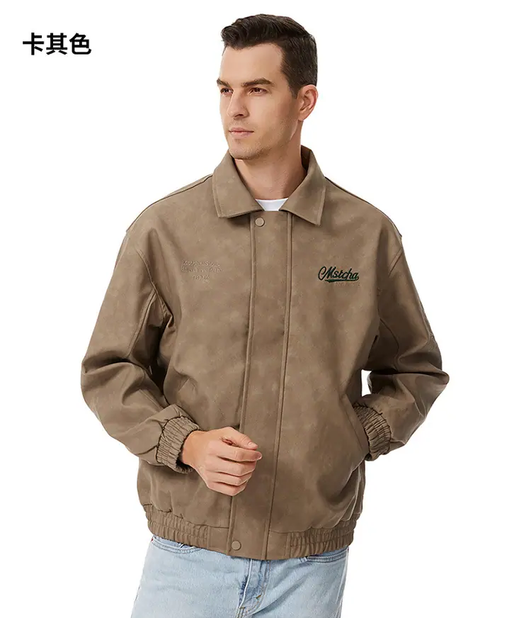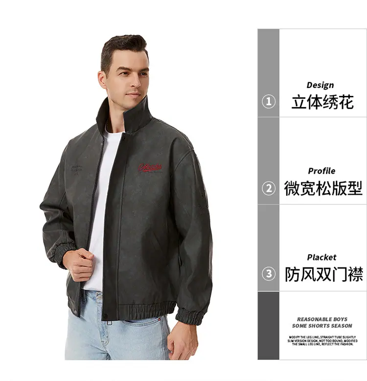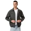 Otoño 2025 Nueva Chaqueta de Motociclista Streetwear Americana para Hombre Sencilla Versátil Cuello Alto Chaqueta de Cuero Suelta Moda Chaqueta de Cuero