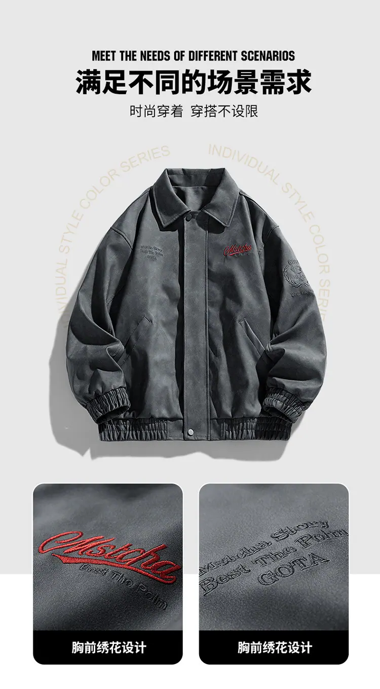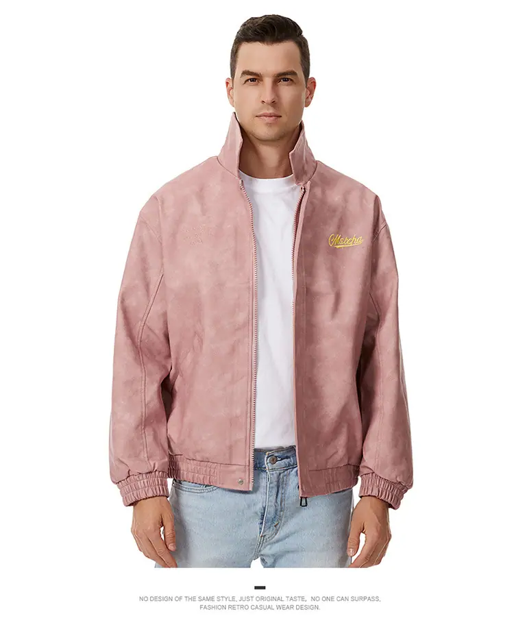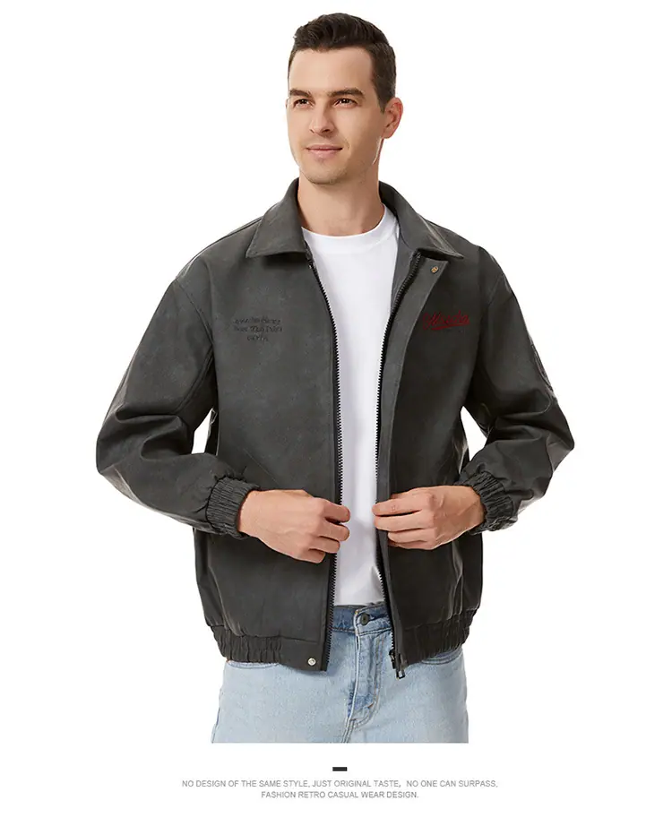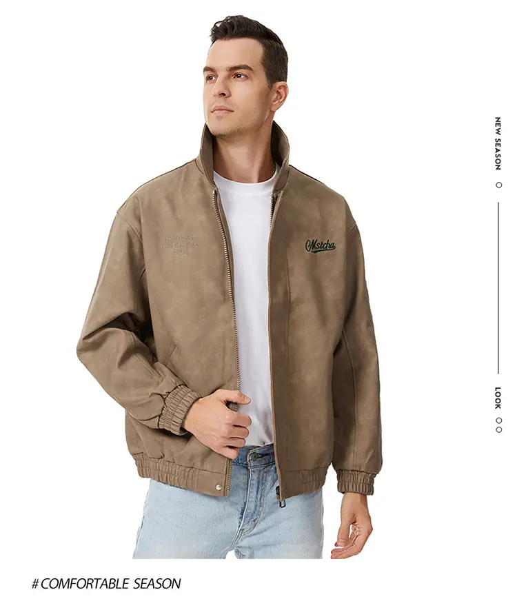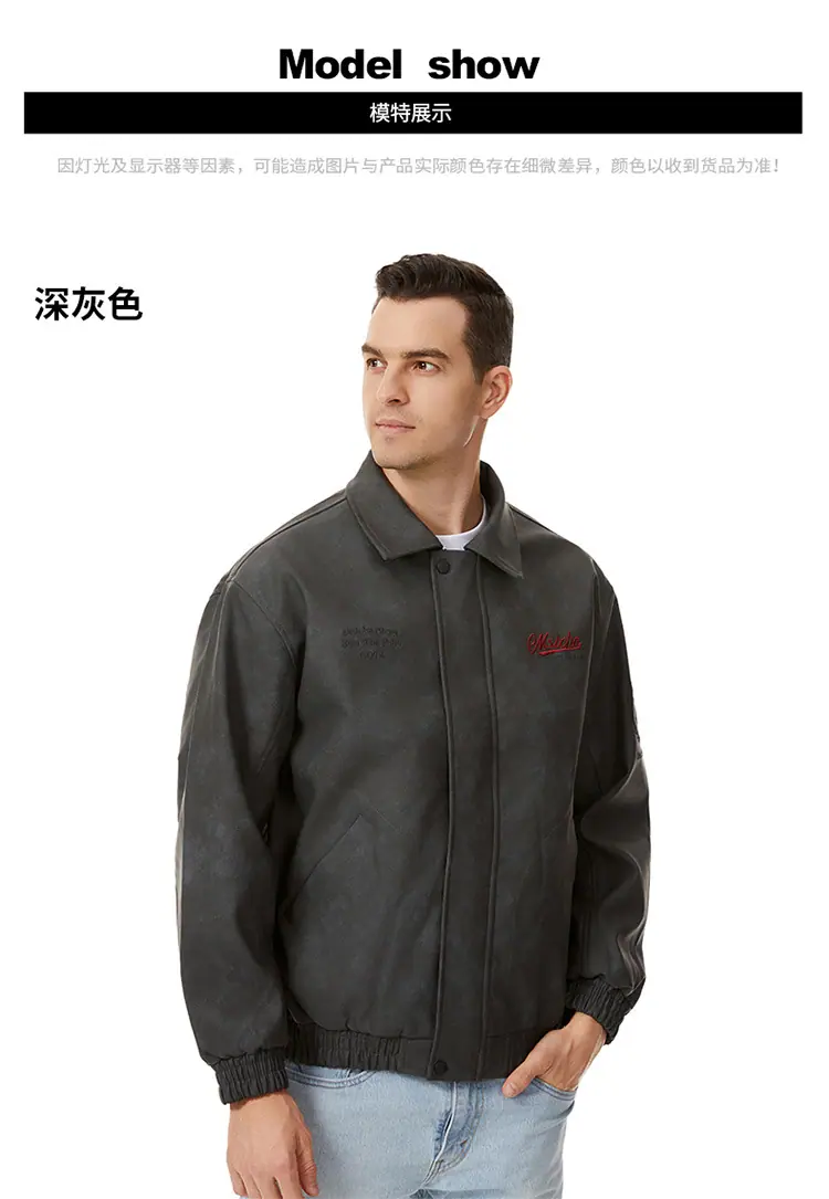 Otoño 2025 Nueva Chaqueta de Motociclista Streetwear Americana para Hombre Sencilla Versátil Cuello Alto Chaqueta de Cuero Suelta Moda Chaqueta de Cuero