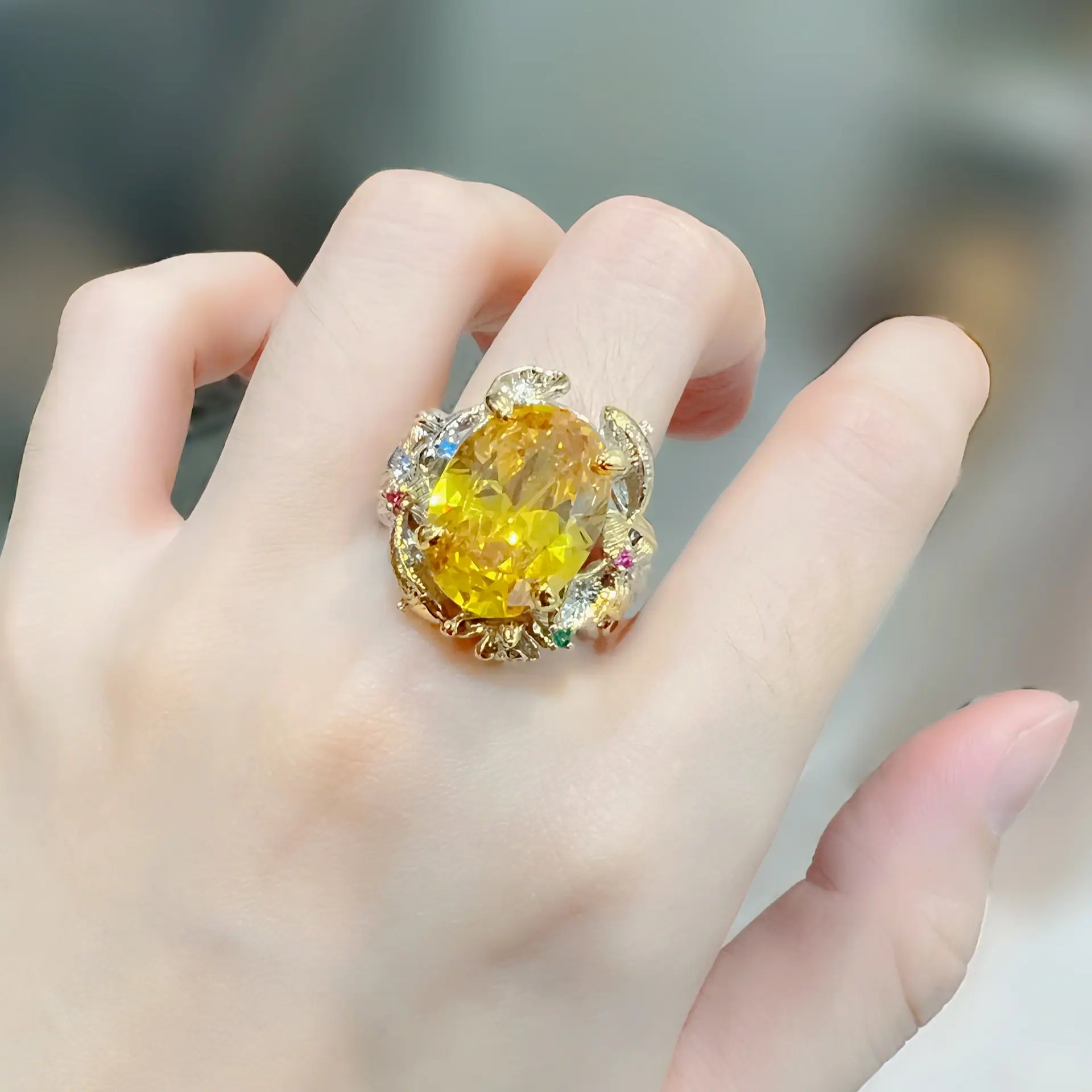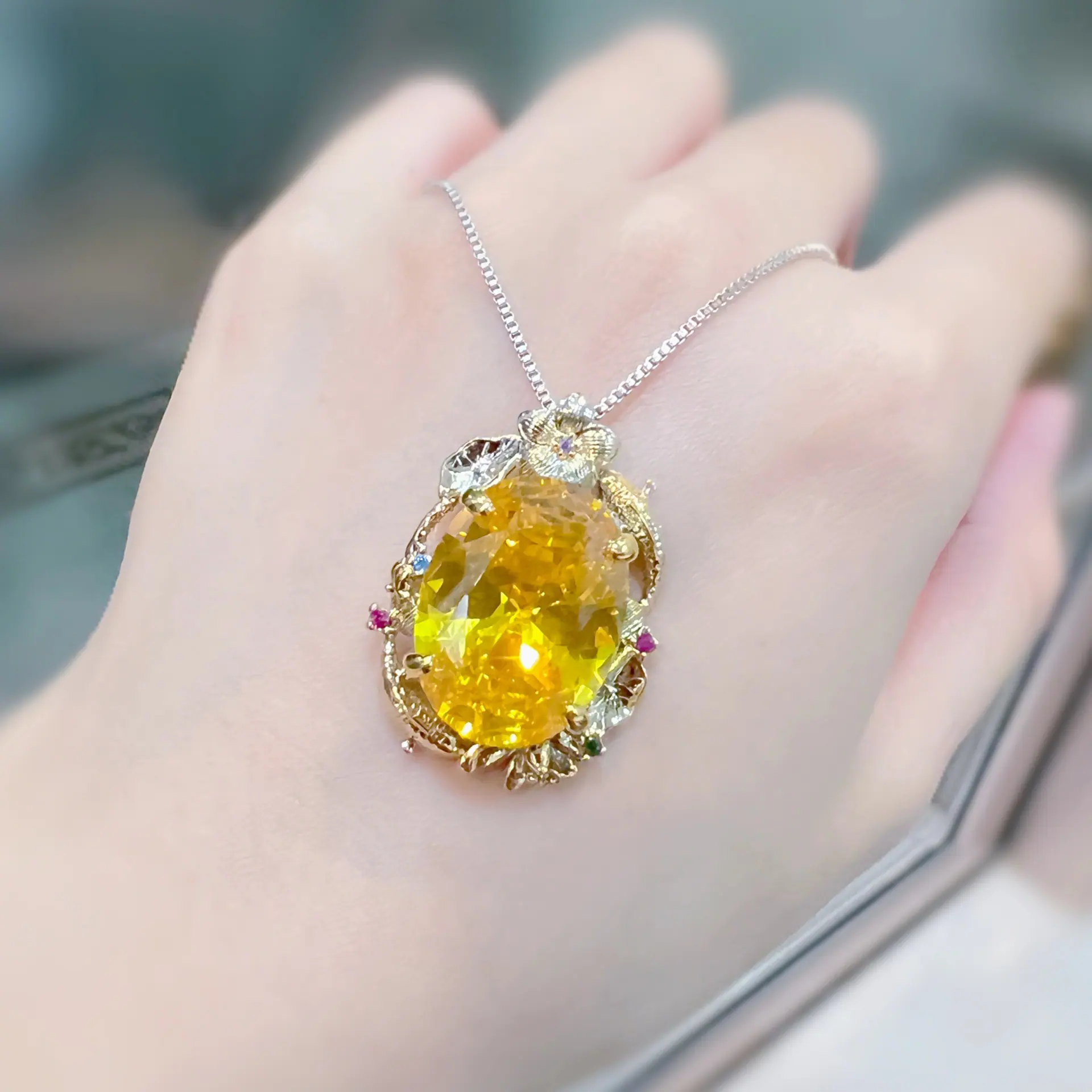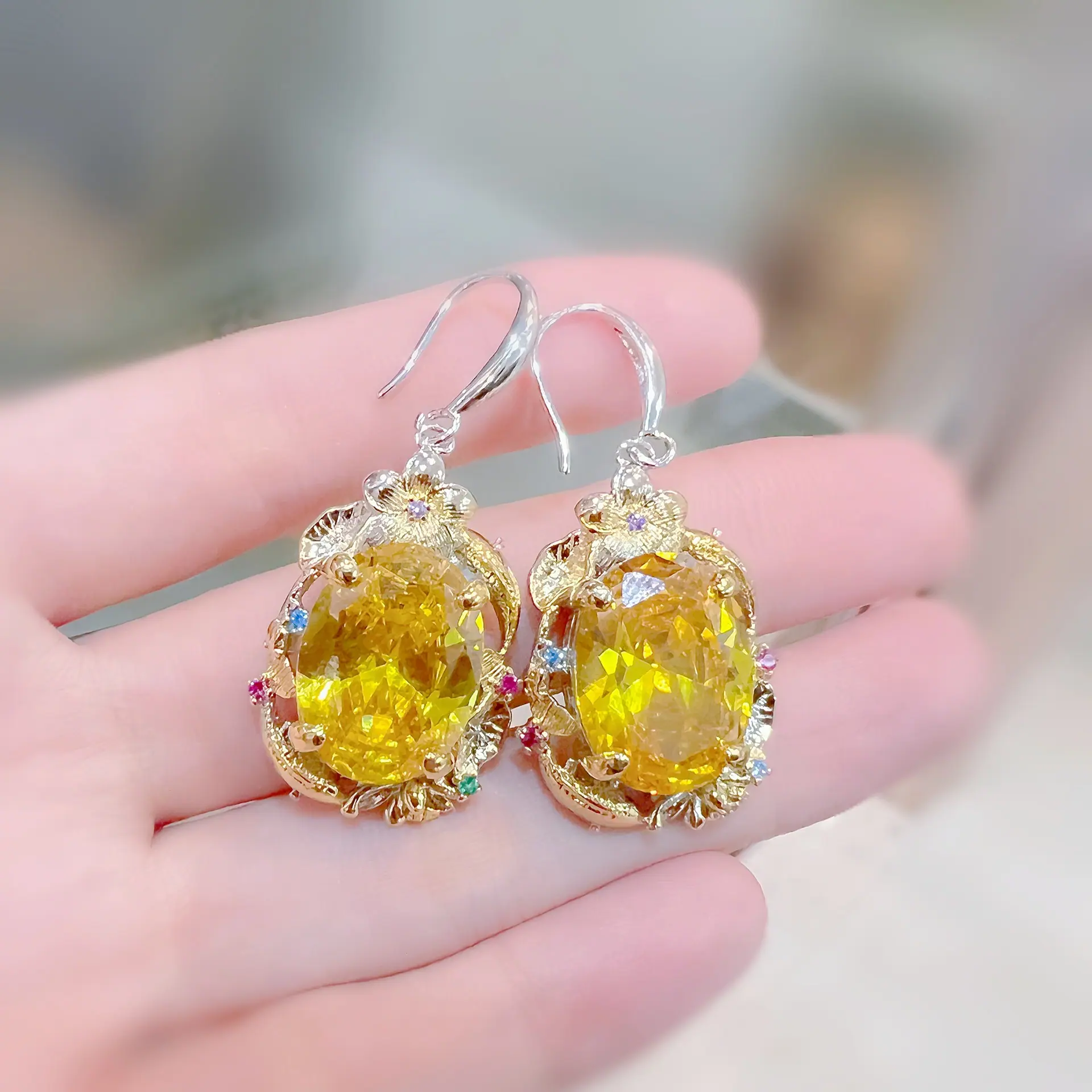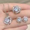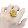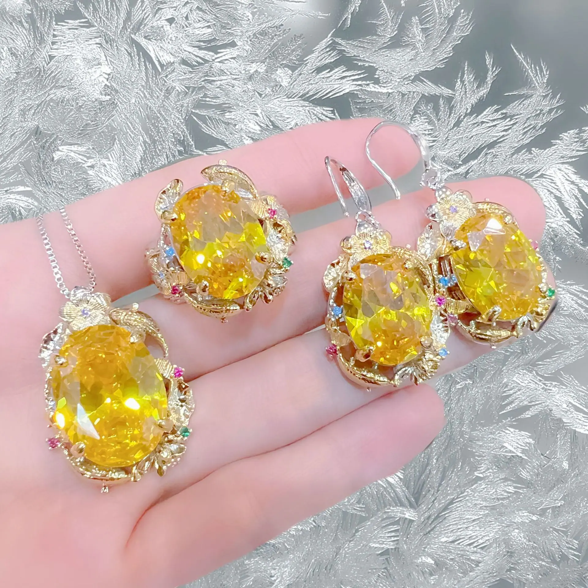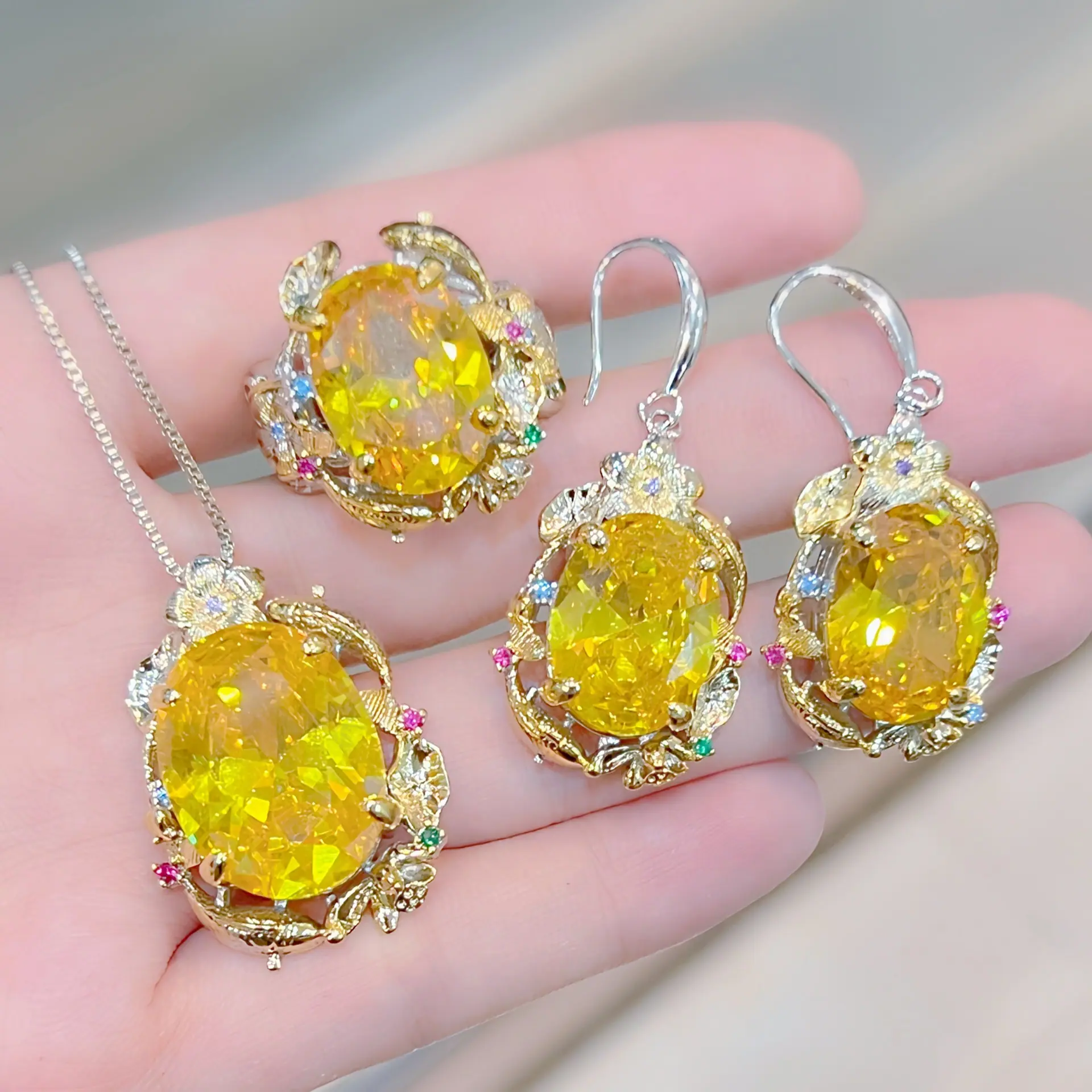 Tiktok live con incrustaciones Super flash circonita amarilla traje de 3 piezas Piscis flor anillo colgante collar pendientes pendientes