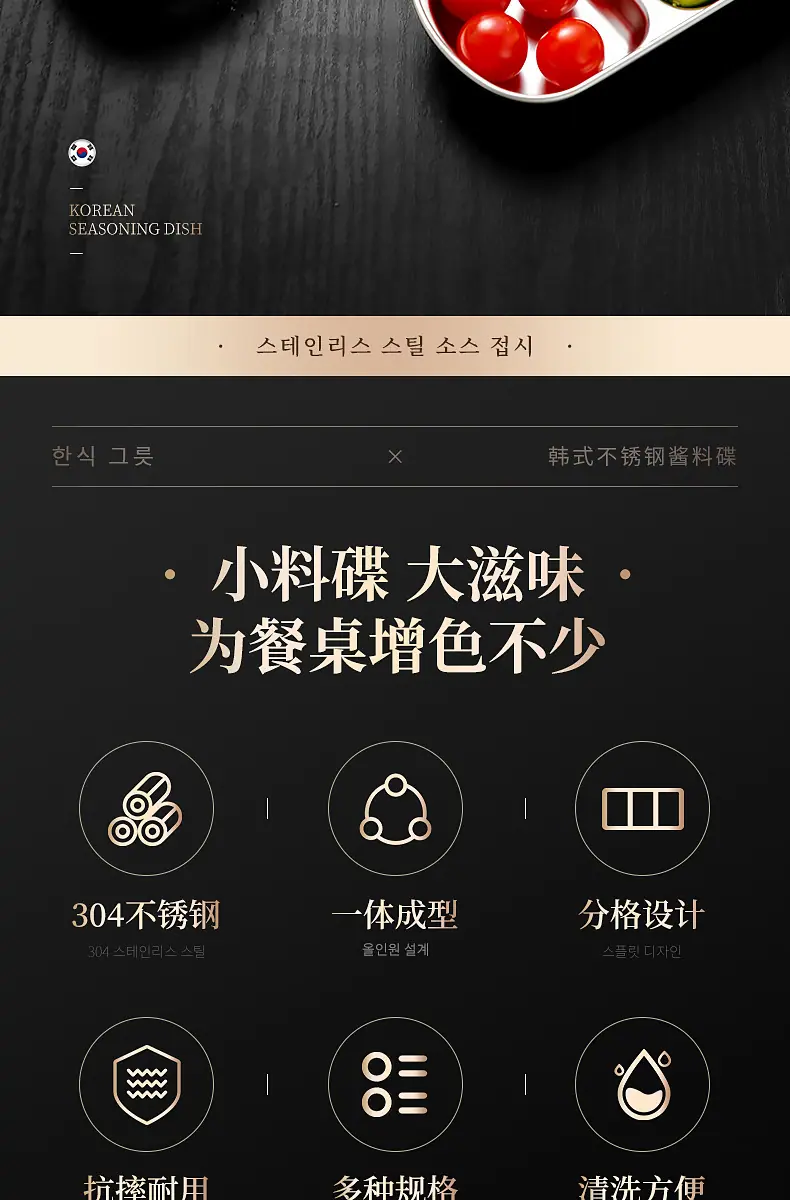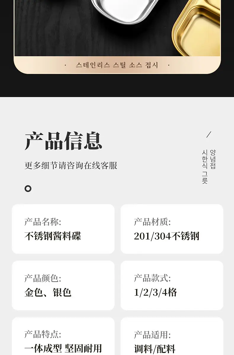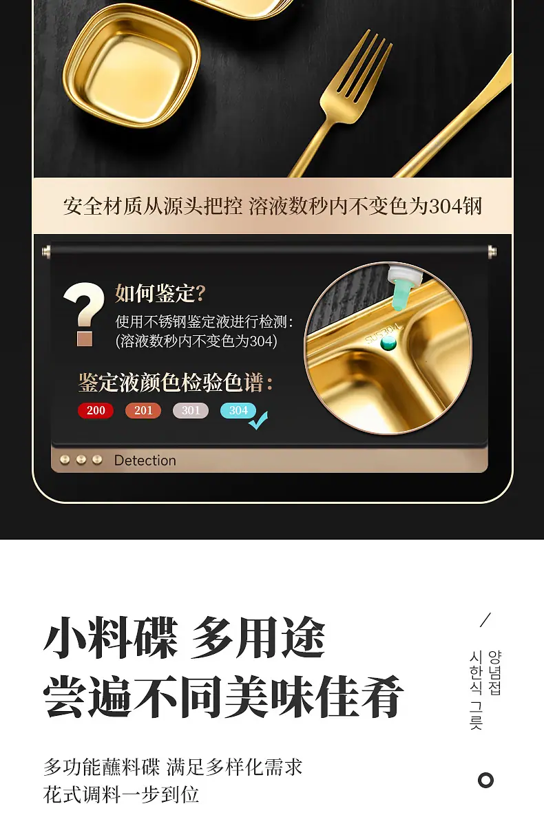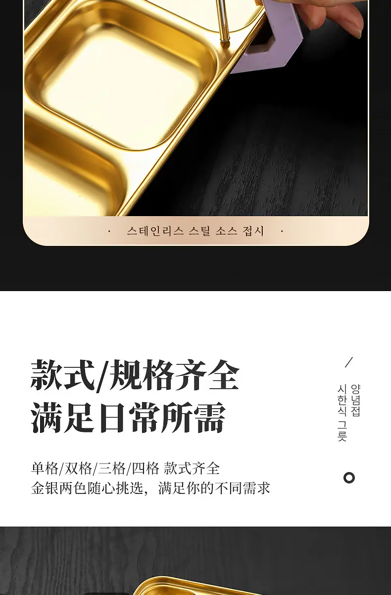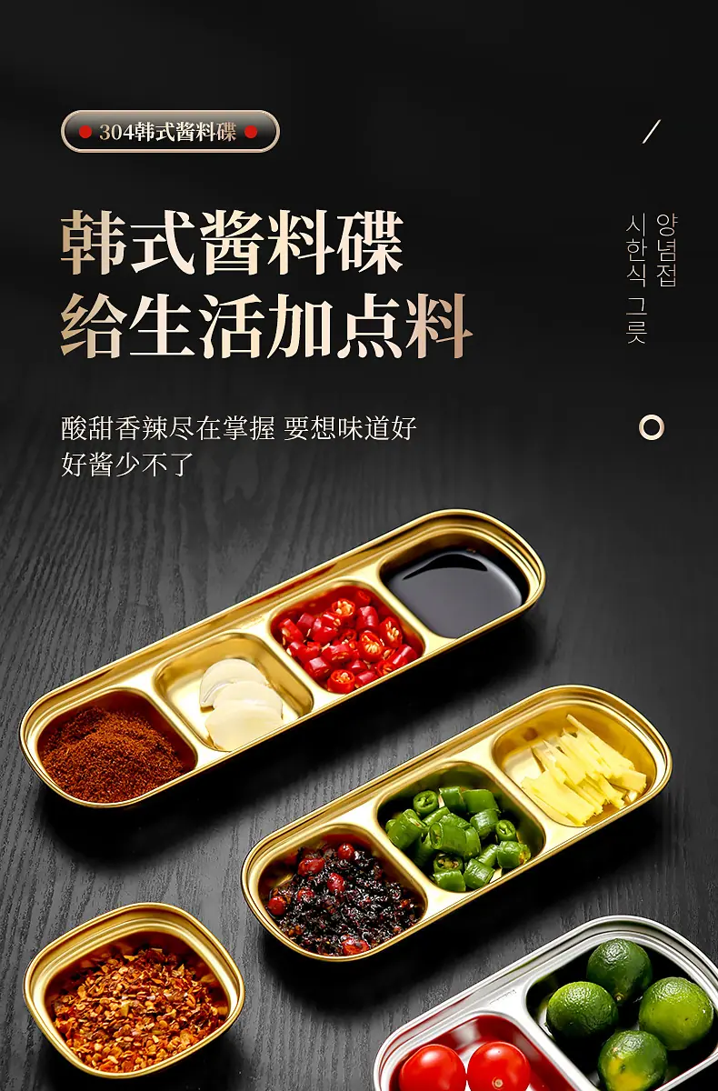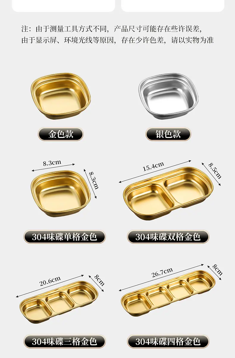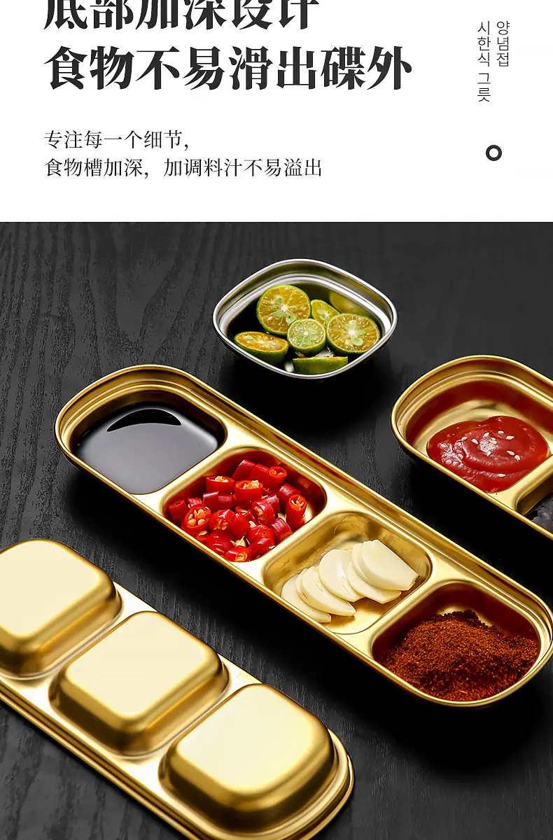 Compra Plato para mojar de acero inoxidable 304, rejilla para mojar platos, plato para saborizar platos, plato grueso para condimentos dorados para barbacoa, dos compartimentos, tres compartimentos, plato para salsa, estilo coreano al por mayor en Joom.pro