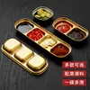 Plato para mojar de acero inoxidable 304, rejilla para mojar platos, plato para saborizar platos, plato grueso para condimentos dorados para barbacoa, dos compartimentos, tres compartimentos, plato para salsa, estilo coreano