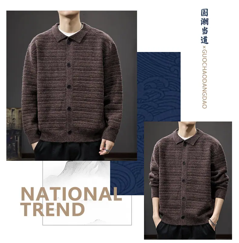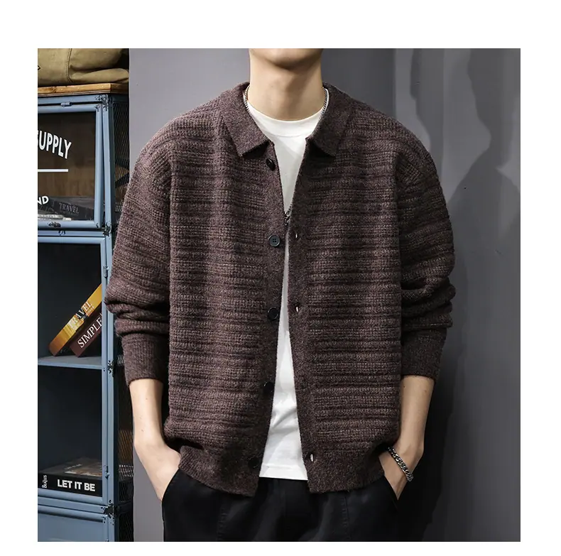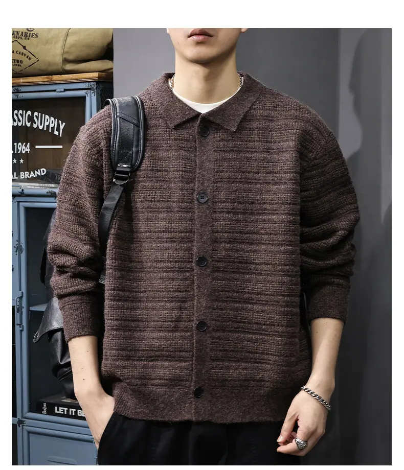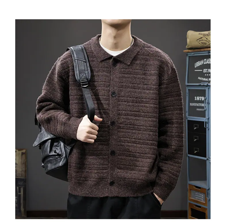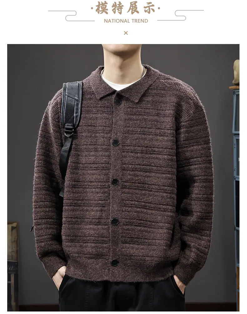 Invierno Nuevo Cárdigan de Solapa Suéter de Hombre Tendencia Estilo Retro Relajado Ropa Exterior Casual Suéter Tejido Holgado Versátil