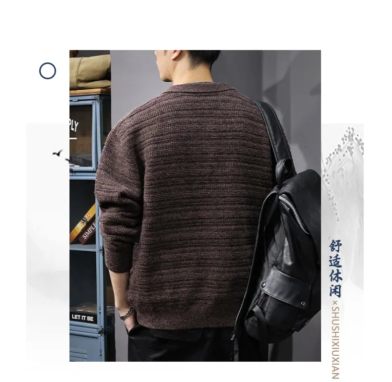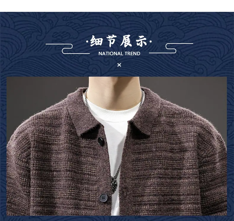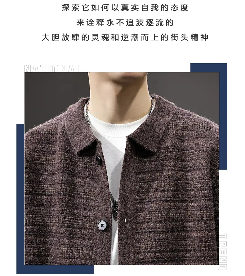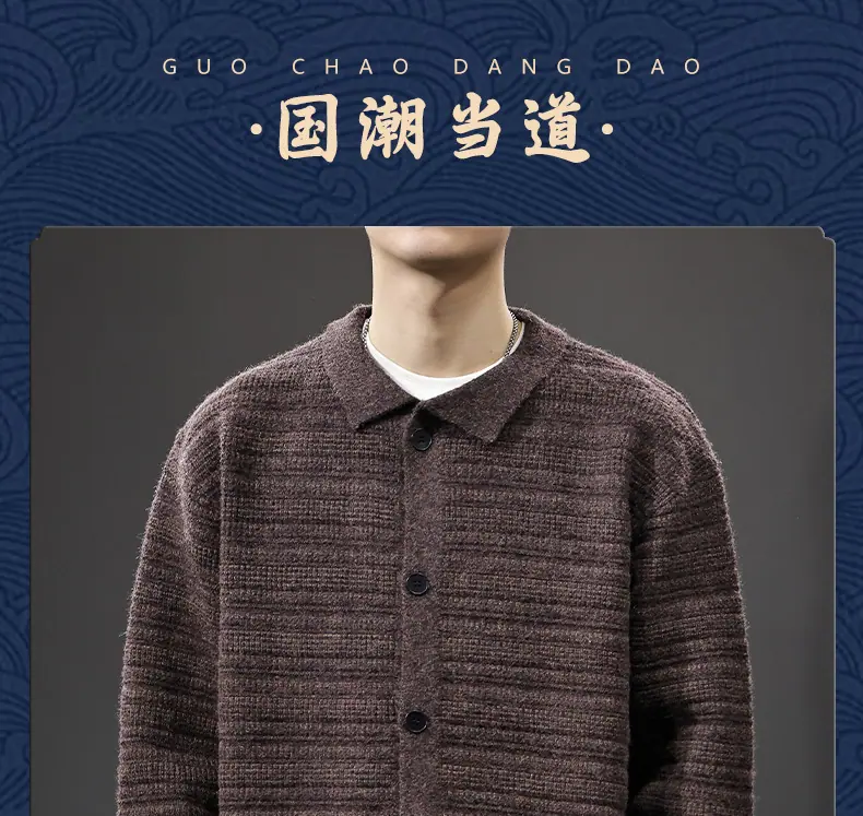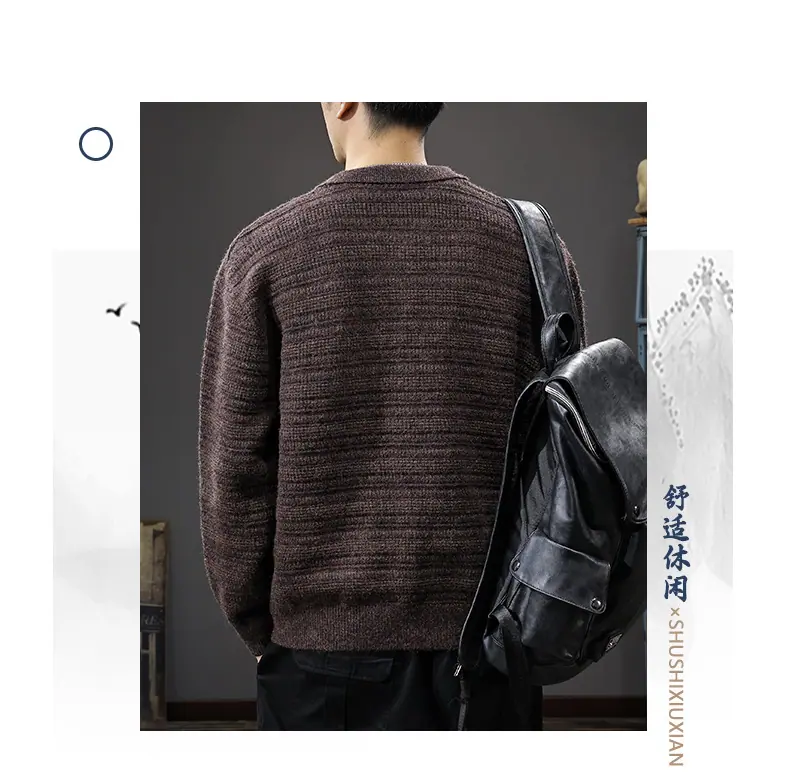 Invierno Nuevo Cárdigan de Solapa Suéter de Hombre Tendencia Estilo Retro Relajado Ropa Exterior Casual Suéter Tejido Holgado Versátil