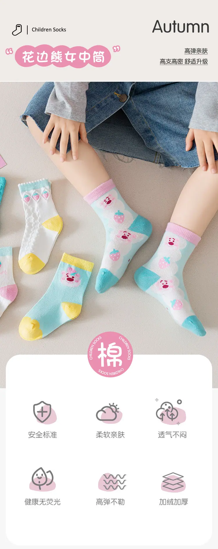 Calcetines de algodón Clase A para niñas hasta media pantorrilla primavera y otoño calcetines para niños calcetines de estudiante estilo princesa para niñas calcetines lindos para bebés al por mayor