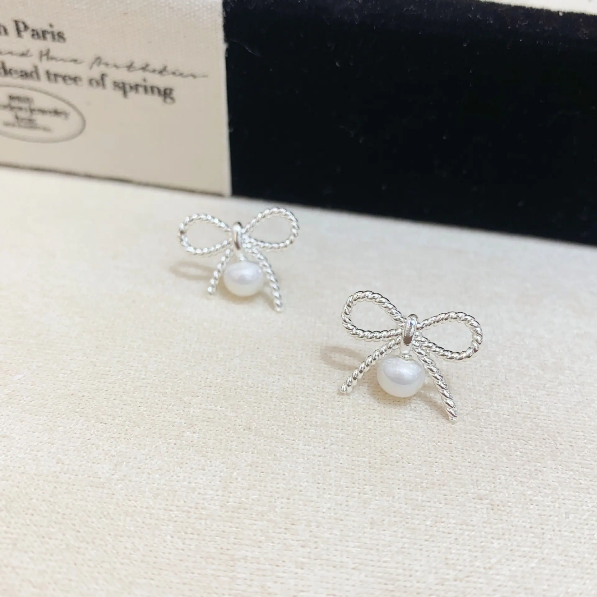 Aretes Elegantes de Lazo Torcido de Aguja de Plata Estilo Coreano, Diseño de Nicho Moderno y de Alta Gama, Aretes Versátiles Elegantes de Celebridad de Internet