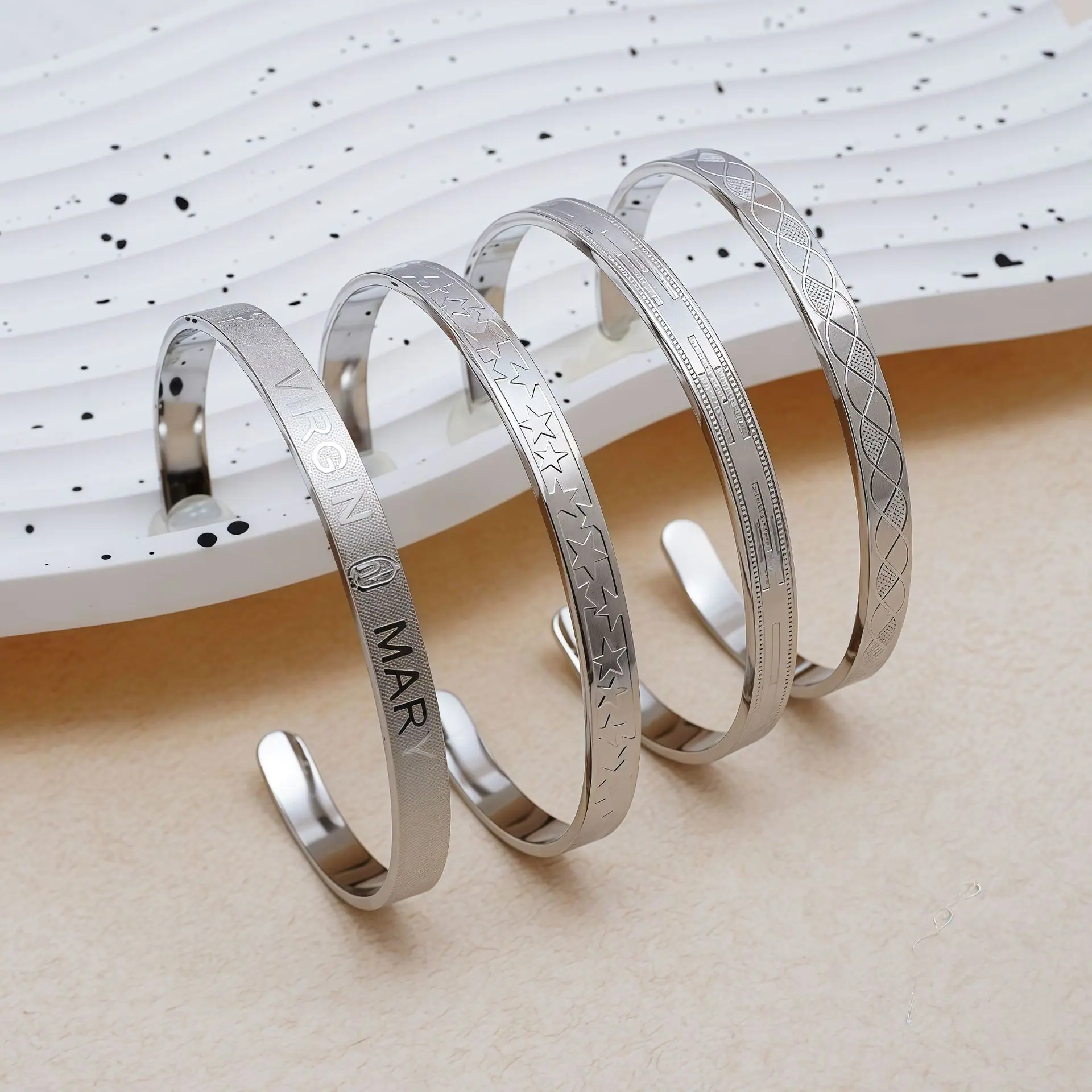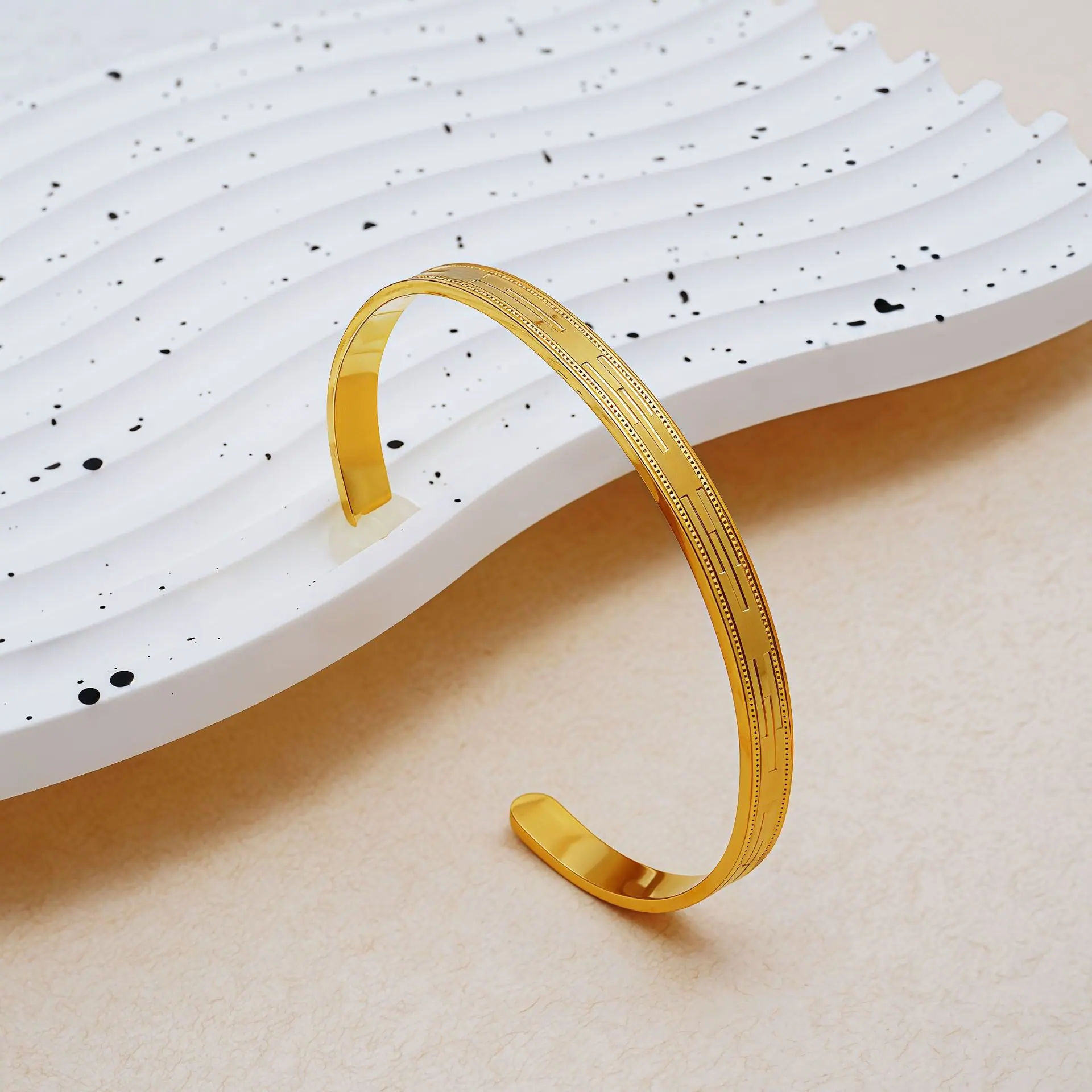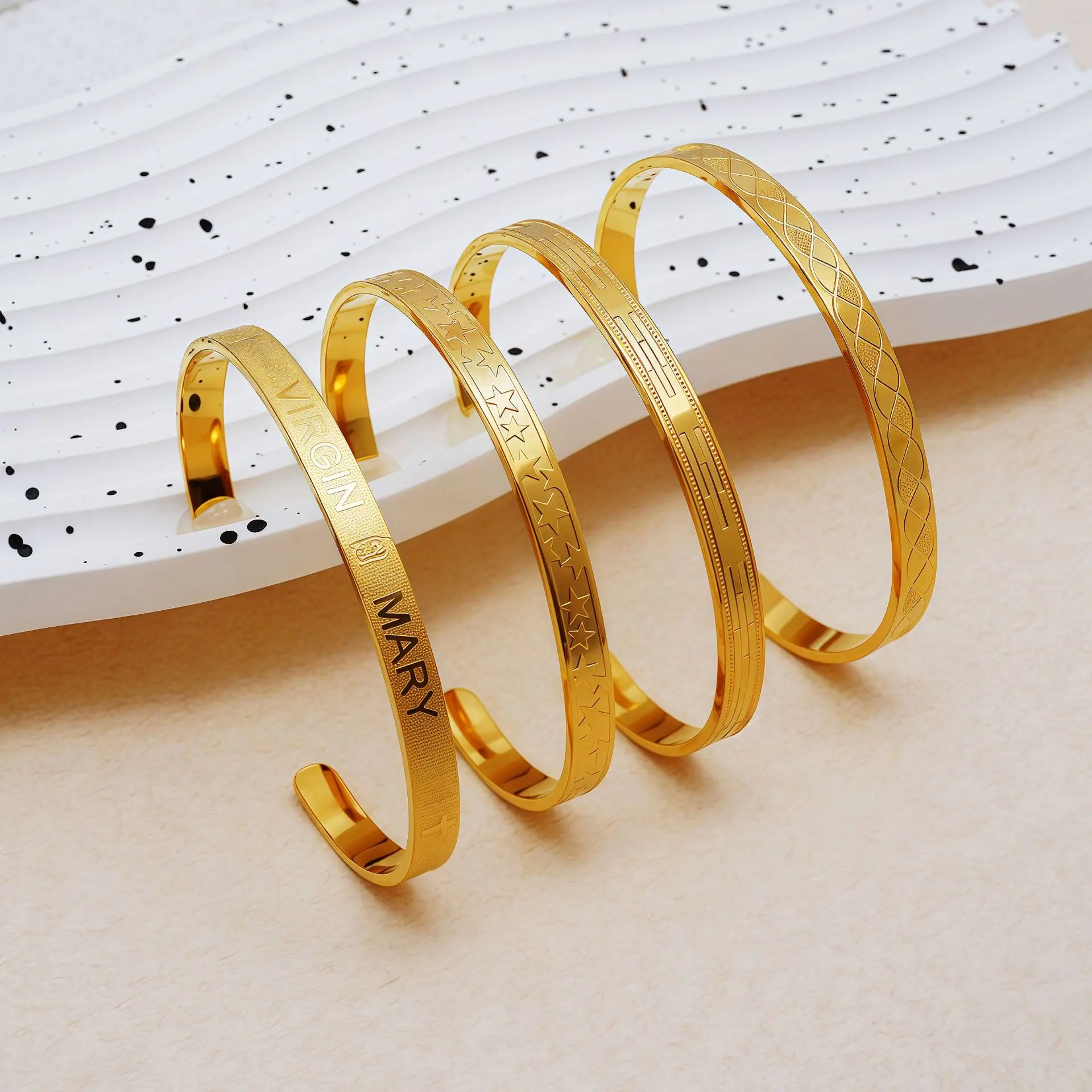 Pulsera Europea y Americana de Acero de Titanio Pulsera con Letra Grabada en Inglés Brazalete Chapado en Oro al Vacío Abierto Joyería Versátil para Parejas para Mujer
