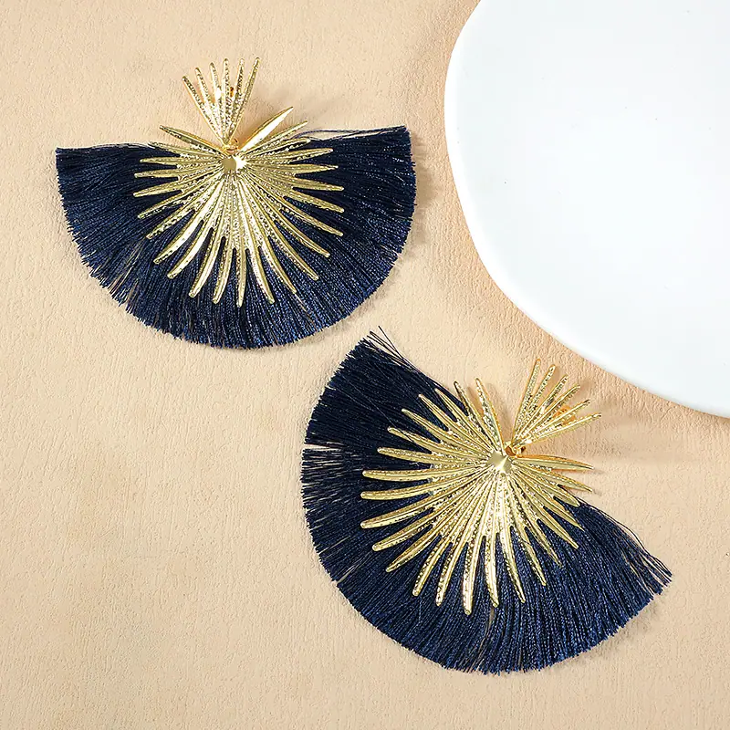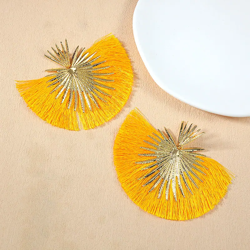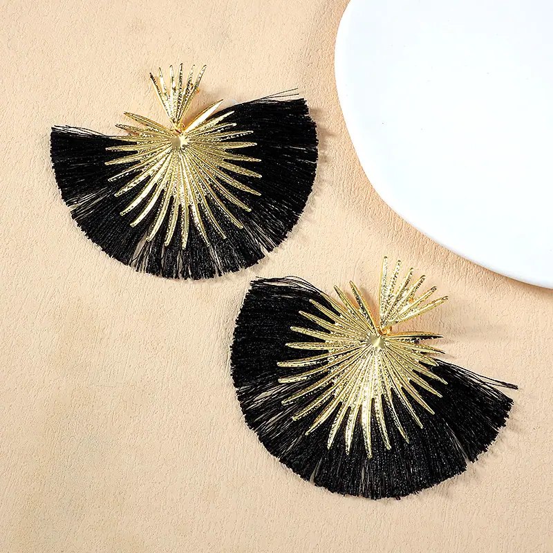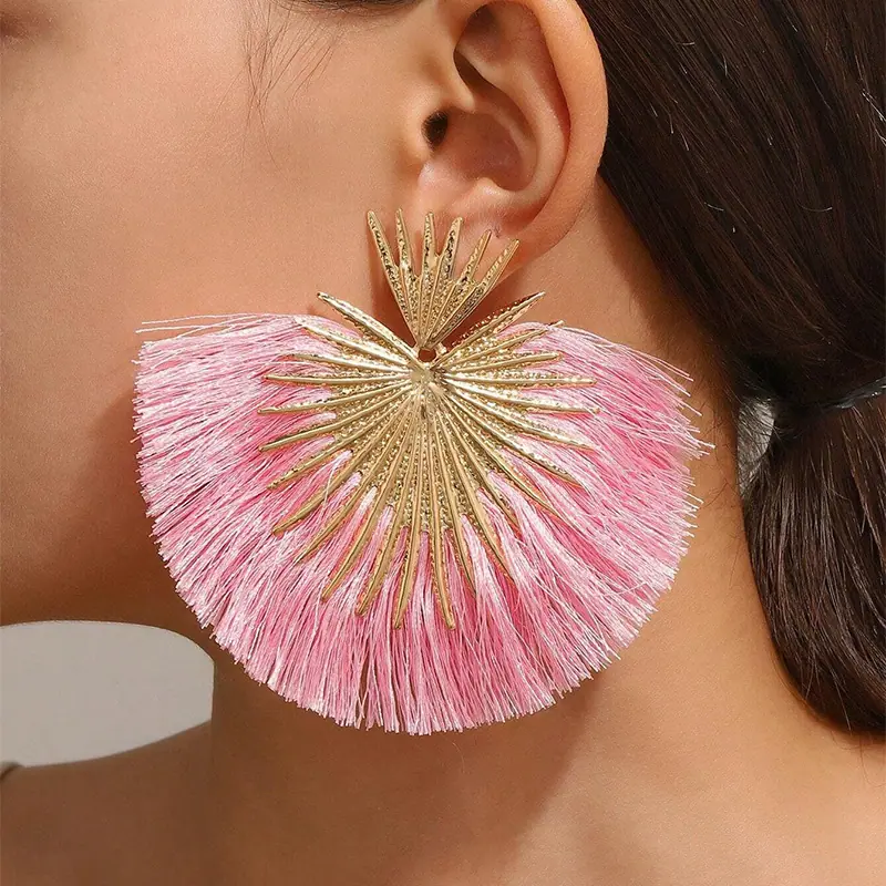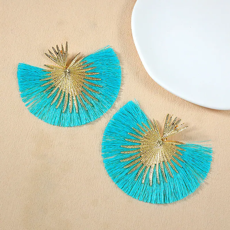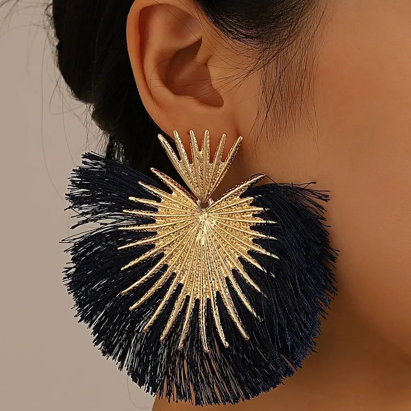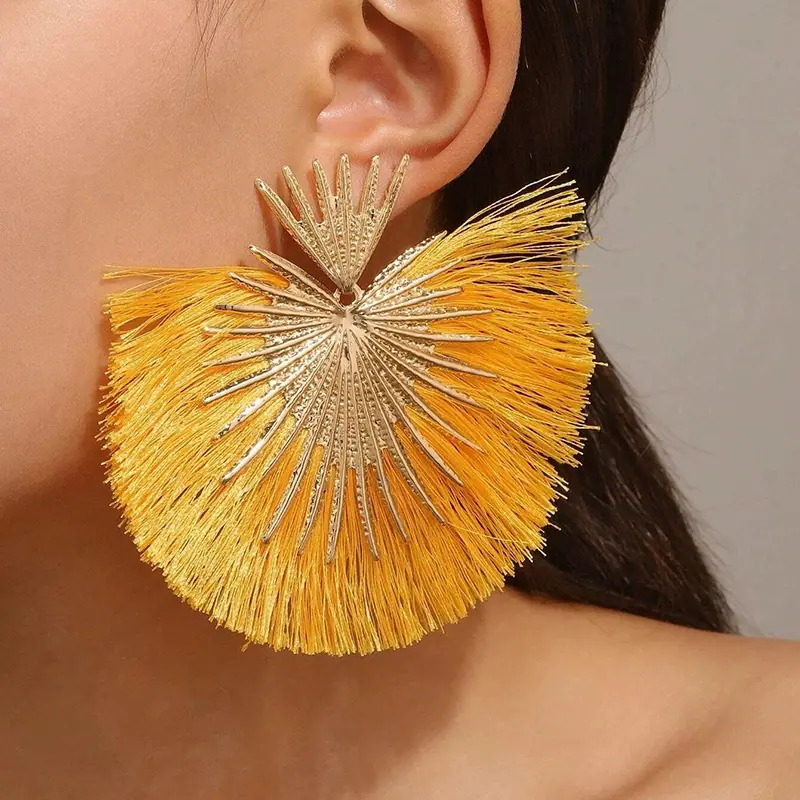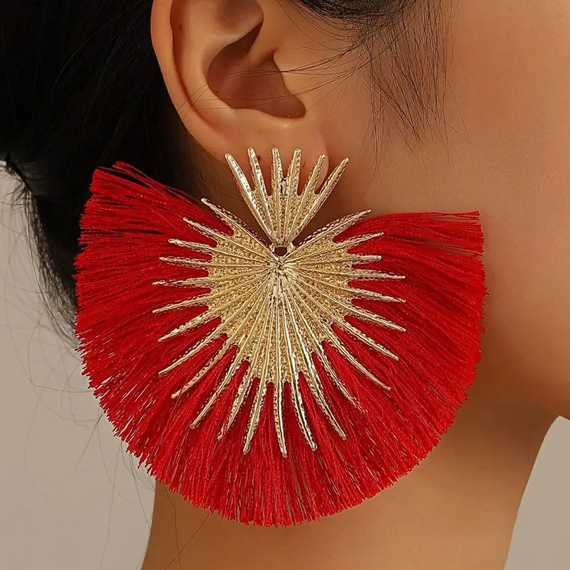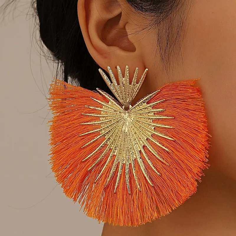 Aretes Europeos y Americanos Transfronterizos Retro Moda Elegantes con Borlas en Forma de Abanico Estilo Vacacional Elegantes Simples Exagerados Geométricos
